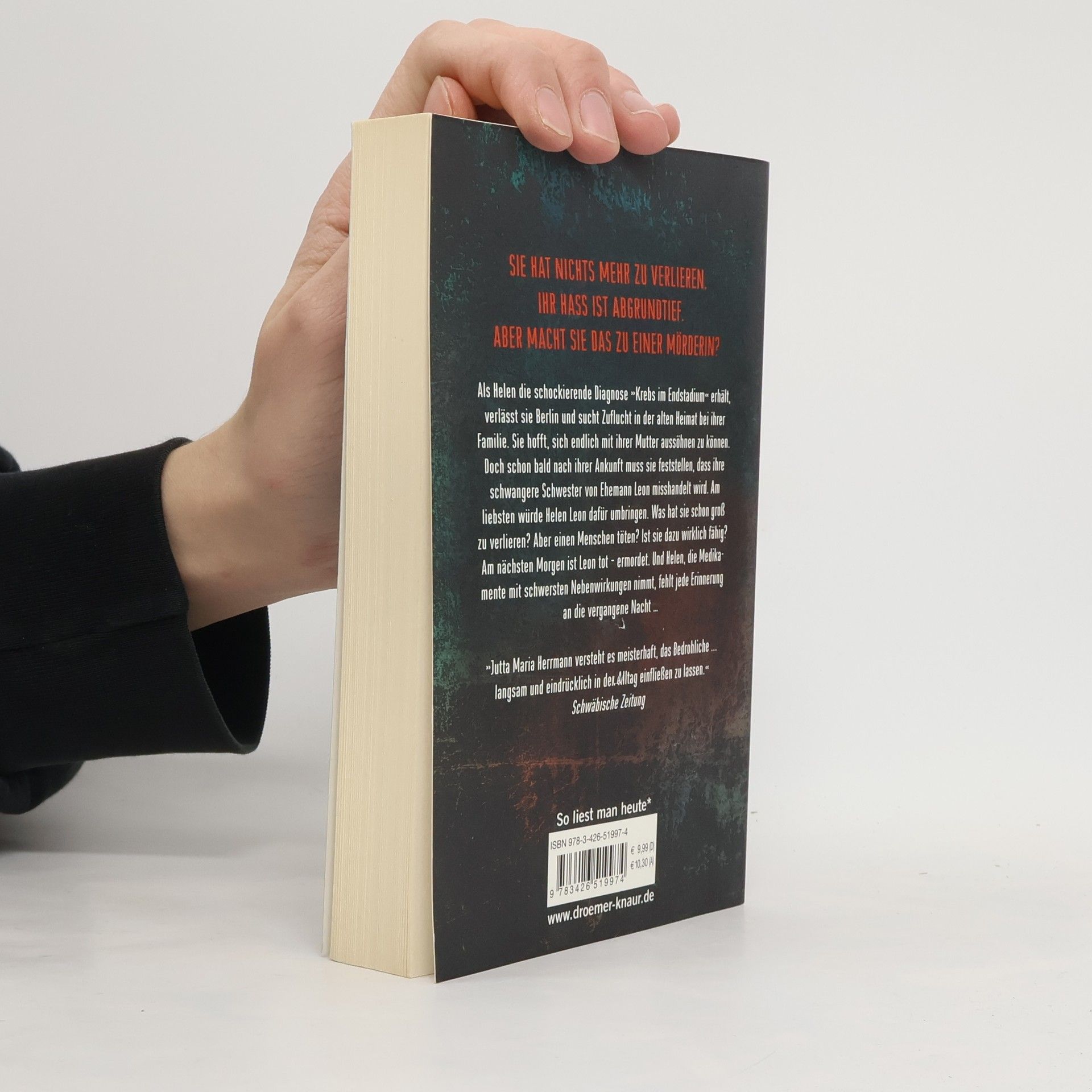 Du hast nichts zu verlieren. Du hast eine mörderische Wut. Und du kannst dich an nichts erinnern … Als die Berlinerin Helen die Diagnose Krebs im Endstadium erhält, ist es ihr einziger Wunsch, sich vor ihrem Tod endlich mit ihrer Mutter auszusöhnen, zu der sie ein schwieriges und distanziertes Verhältnis hat. Bei ihrer Familie in der südwestdeutschen Heimat angekommen, muss sie dann schockiert erfahren, dass ihre schwangere Schwester Kristin von ihrem Ehemann Leon misshandelt wird. Am liebsten würde Helen Leon dafür umbringen, zu verlieren hat sie ja nichts mehr. Aber einen Menschen töten? Helen glaubt nicht, dass sie dazu wirklich fähig ist. Am nächsten Morgen allerdings ist Leon tot – und Helen, die Medikamente mit schwersten Nebenwirkungen nimmt, hat keinerlei Erinnerung an die vergangene Nacht. Amnesie …