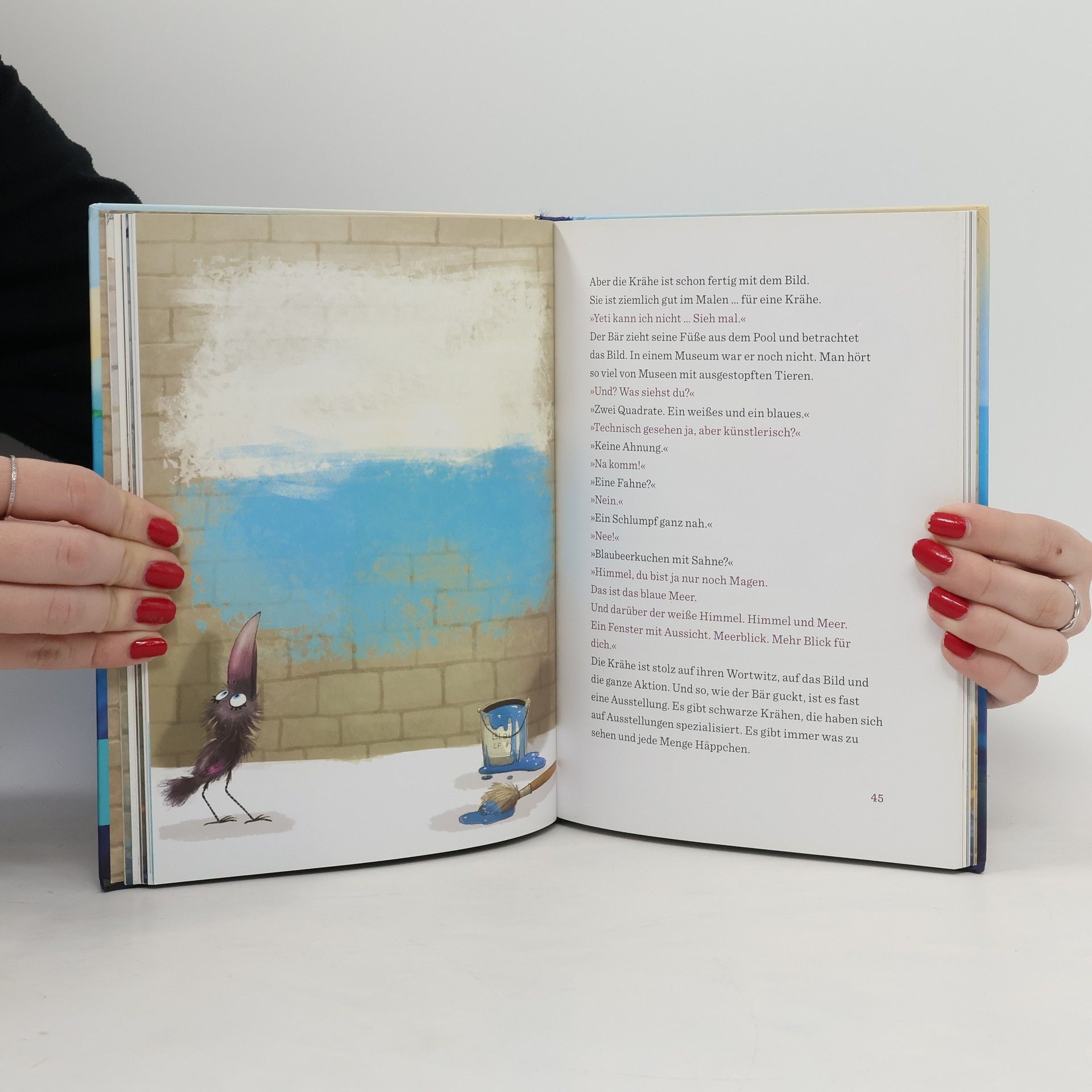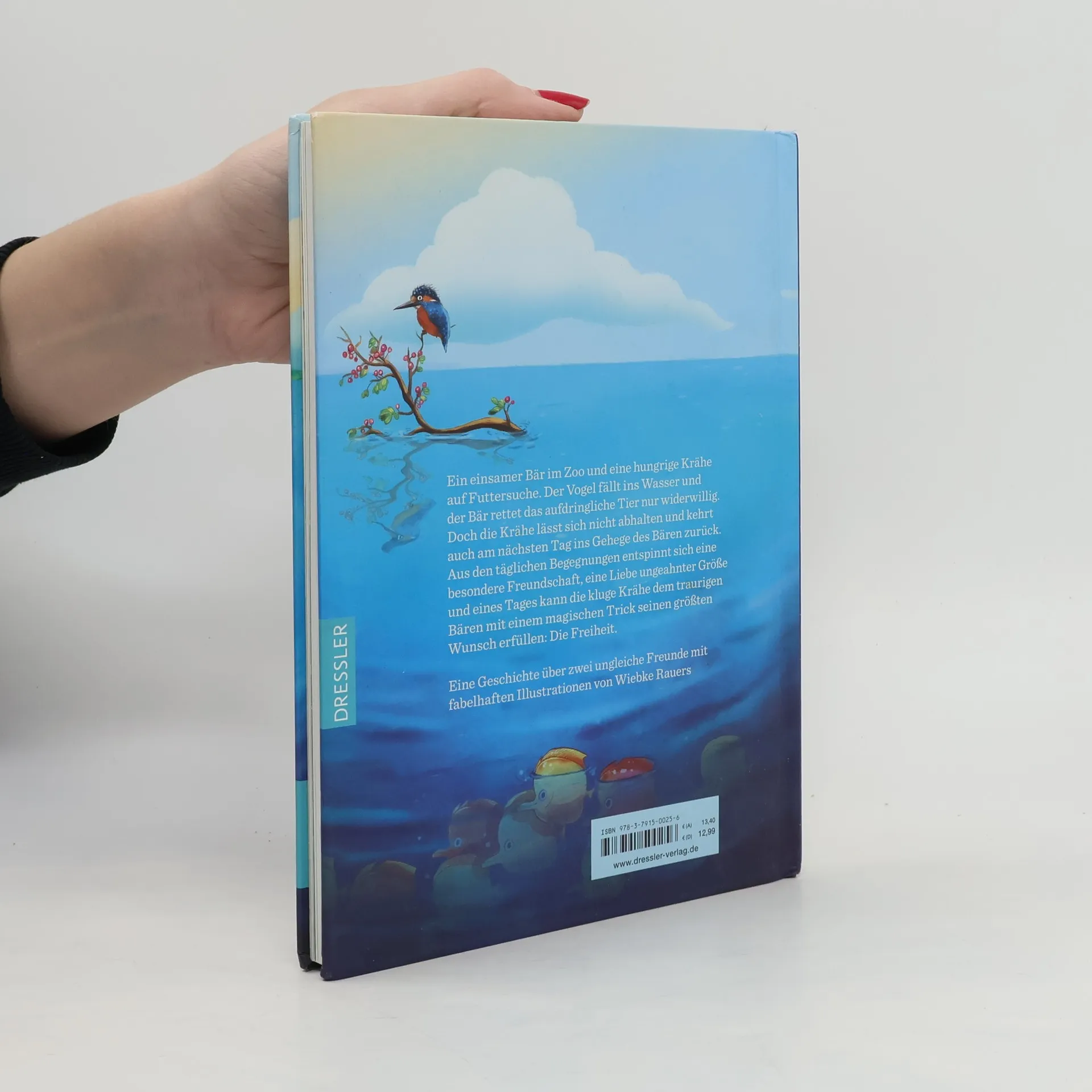In „Krähe und Bär“ sehnt sich der Bär, der ein behagliches, aber monoton geprägtes Leben im Zoo führt, nach der Freiheit der lebenslustigen Krähe. Eine unerwartete Gelegenheit ermöglicht es den beiden, ihre Körper zu tauschen, was sie auf eine Reise der Selbstentdeckung und unvorhergesehenen Herausforderungen führt. Der Bär, nun im Körper der Krähe, erlebt die Schwierigkeiten eines Lebens in Freiheit, während die Krähe im Bärenkörper die Einschränkungen eines Lebens ohne Freiheit spürt. Durch ihre Abenteuer erkennen beide, dass wahres Glück nicht allein in Freiheit oder Sicherheit zu finden ist, sondern in der Akzeptanz und Wertschätzung der eigenen Situation. Am Ende wählen Krähe und Bär bewusst ein Leben im Zoo, nicht aus Resignation, sondern aus einem tieferen Verständnis ihrer selbst und dem Wunsch, gemeinsam zu sein. Die humorvolle und tiefgründige Erzählung behandelt kindgerecht philosophische Fragen über Freiheit, Zufriedenheit und Freundschaft. Wiebke Rauers' kunstvolle Bilder verleihen der Geschichte Farbe und Tiefe, während Wortwitz und schlagfertige Dialoge zum Nachdenken anregen. Durch ihren Körpertausch lernen Krähe und Bär, die Welt aus einer neuen Perspektive zu sehen und den Wert ihrer Identität zu erkennen. Ein Buch, das jedes Kinderzimmer bereichert und die Themen Freundschaft, Akzeptanz und Selbstwert spielerisch vermittelt. Es zeigt, dass große Themen wie Freiheit auch in einer amüsanten Geschichte Pl