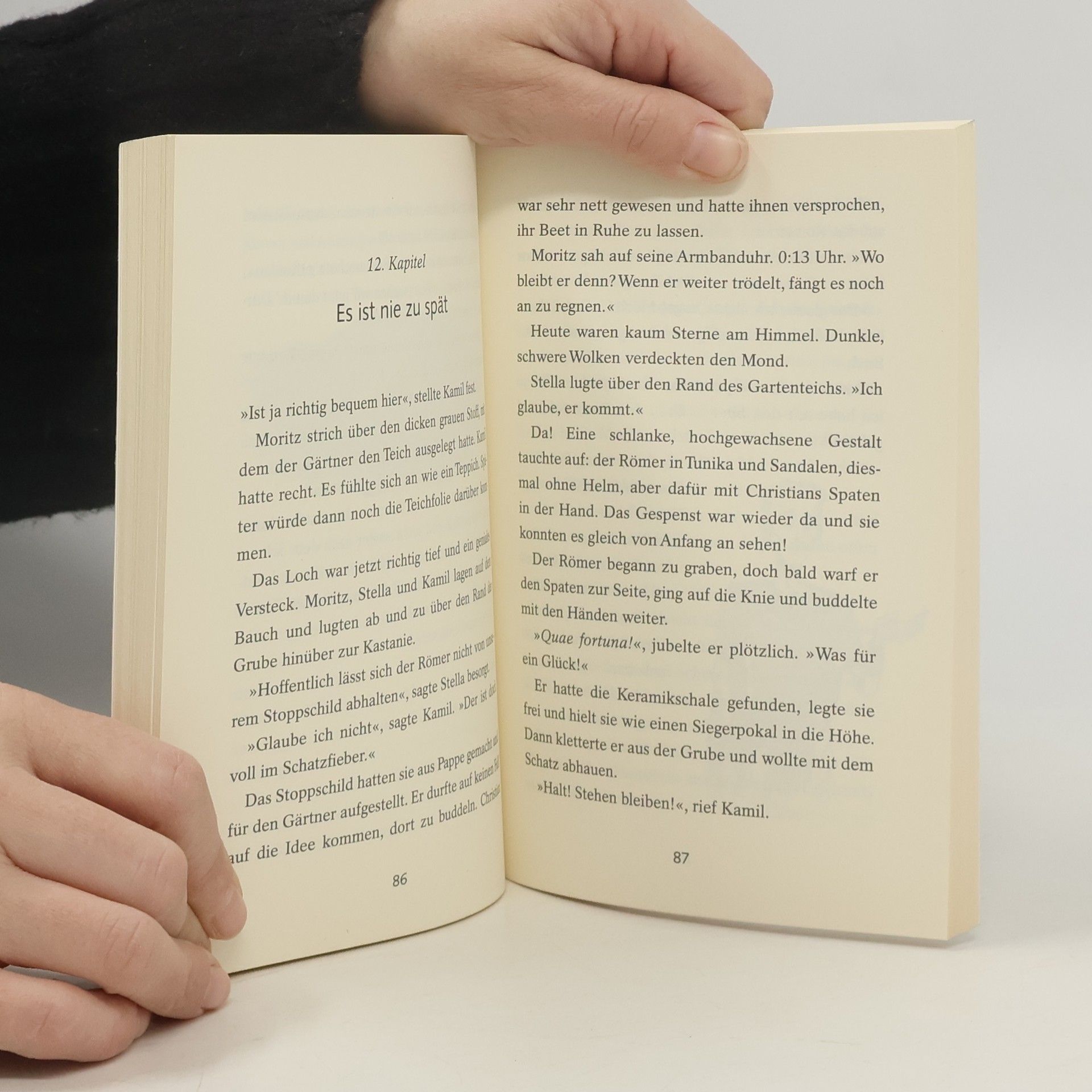 Gruselige Schatzsuche für unerschrockene GeisterjägerMoritz besucht in den Ferien seine Tante. In ihrem Haus passieren merkwürdige Dinge: Um Mitternacht ertönen seltsame Geräusche und Gegenstände fliegen wie von Geisterhand durch die Luft. Spukt es dort etwa? Oder stecken die frechen Nachbarjungs dahinter? Zusammen mit seiner Cousine Stella und seinem Cousin Kamil legt sich Moritz nachts auf die Lauer, um das Gespenst zu stellen. Dabei stoßen sie auf ein gruseliges Geheimnis, das bis in die Römerzeit zurückreicht ... Mit 32 Seiten Bildergeschichte von Timo Grubing