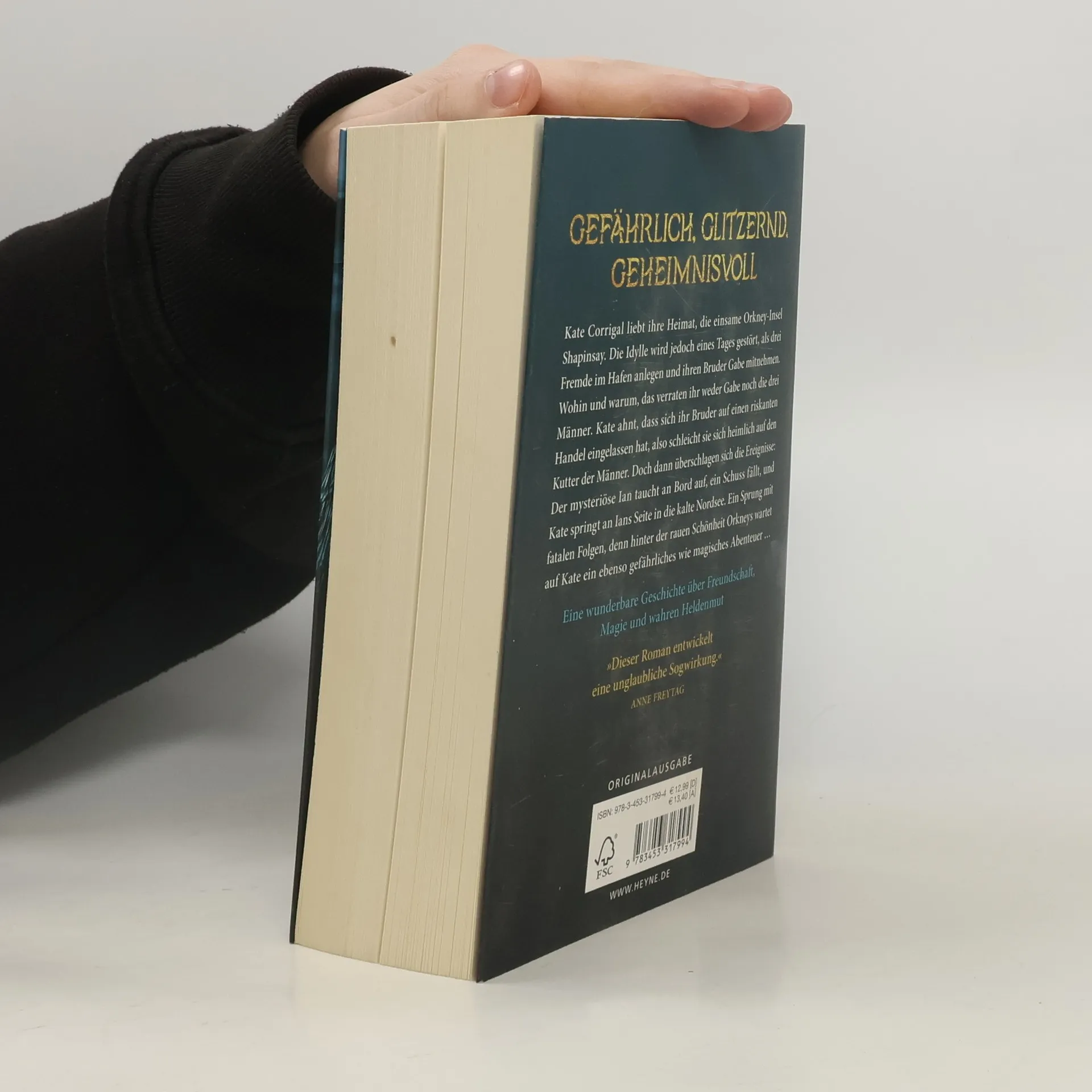 Als Kate im Hafen ihrer kleinen Heimatinsel im Orkney-Archipel die drei Fremden das erste Mal sieht, weiß sie, dass es Ärger geben wird. Die Männer sind gekommen, um ihren älteren Bruder Gabe mitzunehmen. Doch wohin und warum, das verraten sie nicht. Und das ist völlig inakzeptabel, findet Kate. Heimlich schleicht sie sich auf den Kutter der Fremden, um Gabe zu retten. Doch dann taucht der geheimnisvolle Ian an Bord auf, ein Schuss fällt. Und plötzlich springt Kate an Ians Seite in die eiskalte Nordsee. Mitten hinein in ein Abenteuer, das alles, was sie bisher über ihre Familie und ihre Inselwelt wusste, ins Wanken bringt …