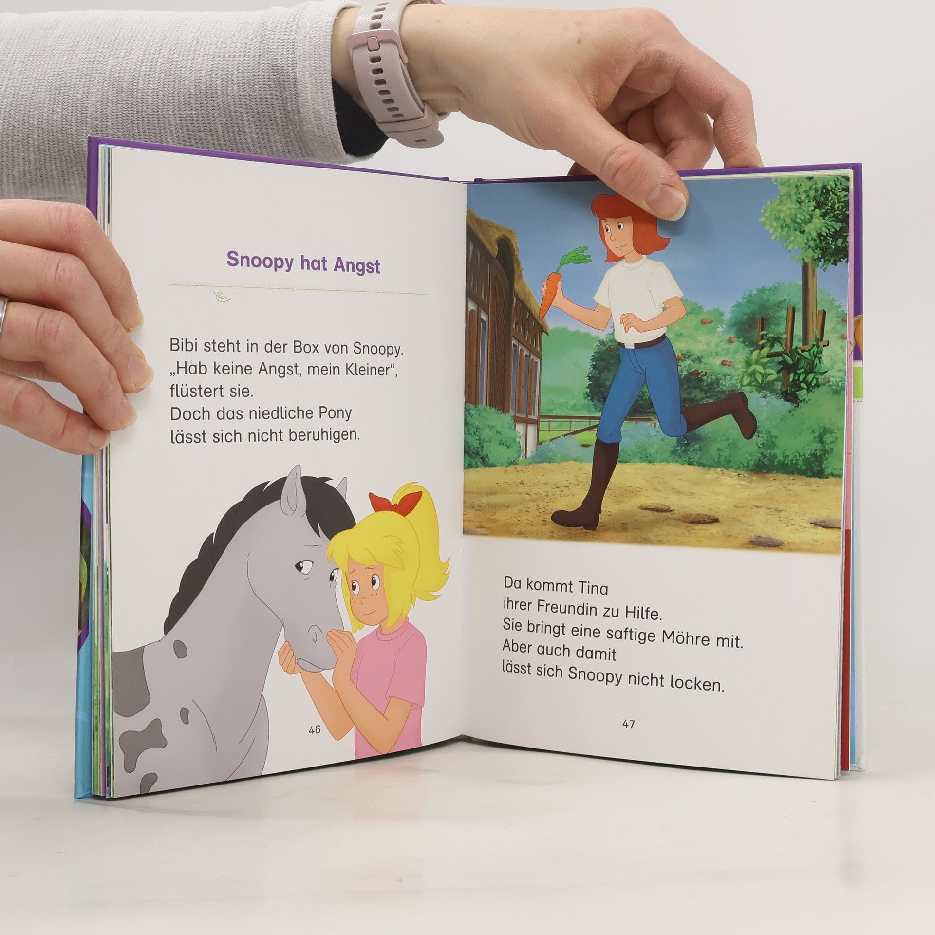 2 spannende Geschichten mit 10 tollen Extraseiten Pferde-Wissen! Jede Geschichte ist genau auf das Lesevermögen von Leseanfängern abgestimmt Nach dem Prinzip „Lesen-Verstehen-Mitmachen“ vervollständigen die kleinen Leser selbst Illustrationen oder den Text der Bibi& Tina-Geschichten Mit Hufeisen-Quiz zur spielerischen Überprüfung des Leseverständnisses EXTRA: In den 10 Extraseiten verraten Bibi und Tina den Pferde-Fans jede Menge Wissenswertes über Pferde, wie z. B. Rund um den Stall, Ponyrassen uvm. Die optimale Motivation für Leseanfänger, die Freude an und mit Pferden haben.