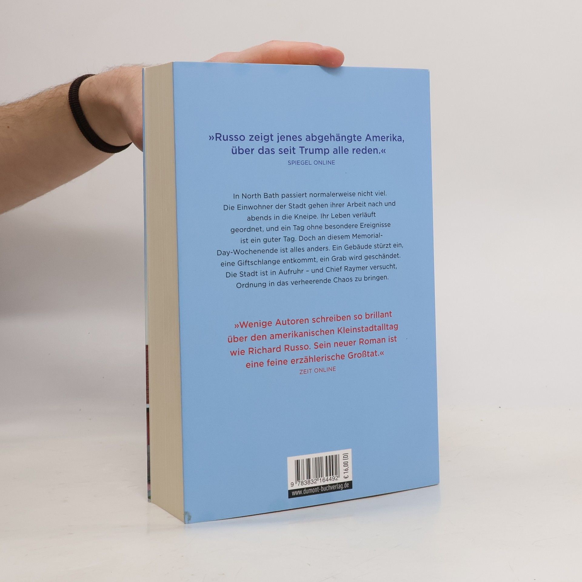 Eigentlich sollte das Memorial-Day-Wochenende für alle Bewohner von North Bath eine Zeit der Ruhe und Besinnung sein. Aber in diesem Jahr ist es, als hätte jemand ungebeten die Büchse der Pandora geöffnet. Chief Raymer, der Leiter der Polizeidirektion, kollabiert auf einer Beerdigung, fällt ins offene Grab und verliert dabei das einzige Beweisstück dafür, dass seine Frau ihn betrogen hat. Die Wand eines Gebäudes, das der impotente Bauunternehmer Carl errichtet hat, stürzt ein. Und zu allem Übel ist auch noch eine illegal gehaltene Giftschlange entwischt und irgendwo unterwegs in den Straßen der Kleinstadt an der Ostküste. Chief Raymer schreitet zur Tat, um wieder Ordnung in das verheerende Chaos zu bringen. Und um dem Mann auf die Schliche zu kommen, der ihn gehörnt hat. Aber auch die anderen Bewohner der Stadt müssen an diesem Wochenende Farbe bekennen ... ›Ein Mann der Tat‹ zieht uns hinein in die Leben der Menschen von North Bath. Dieser bis ins letzte Detail liebevoll ausgestaltete, kluge und unterhaltende Roman unterstreicht ein weiteres Mal, dass Richard Russo zu den großen amerikanischen Erzählern der Gegenwart gehört.
