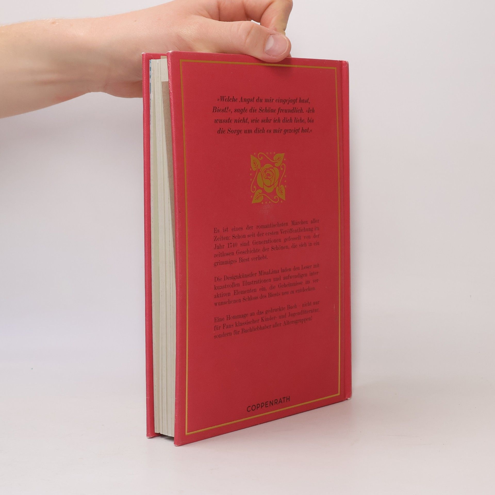Es ist eines der romantischsten Märchen aller Zeiten: Seit der ersten Veröffentlichung im Jahr 1740 sind Generationen gefesselt von der zeitlosen Geschichte der Schönen, die sich in ein grimmiges Biest verliebt … Die Designkünstler MinaLima laden den Leser mit kunstvollen Illustrationen und aufwendigen interaktiven Extras ein, die Geheimnisse im verwunschenen Schloss des Biests neu zu entdecken – mit Pop-up-Tor, Schieber, verspiegelten Klapp-Fenstern und vielem mehr. Die Neuverfilmung des Klassikers mit Emma Watson, Dan Stevens, Ewan McGregor, Emma Thompson u. v. a. kam 2017 in die Kinos.