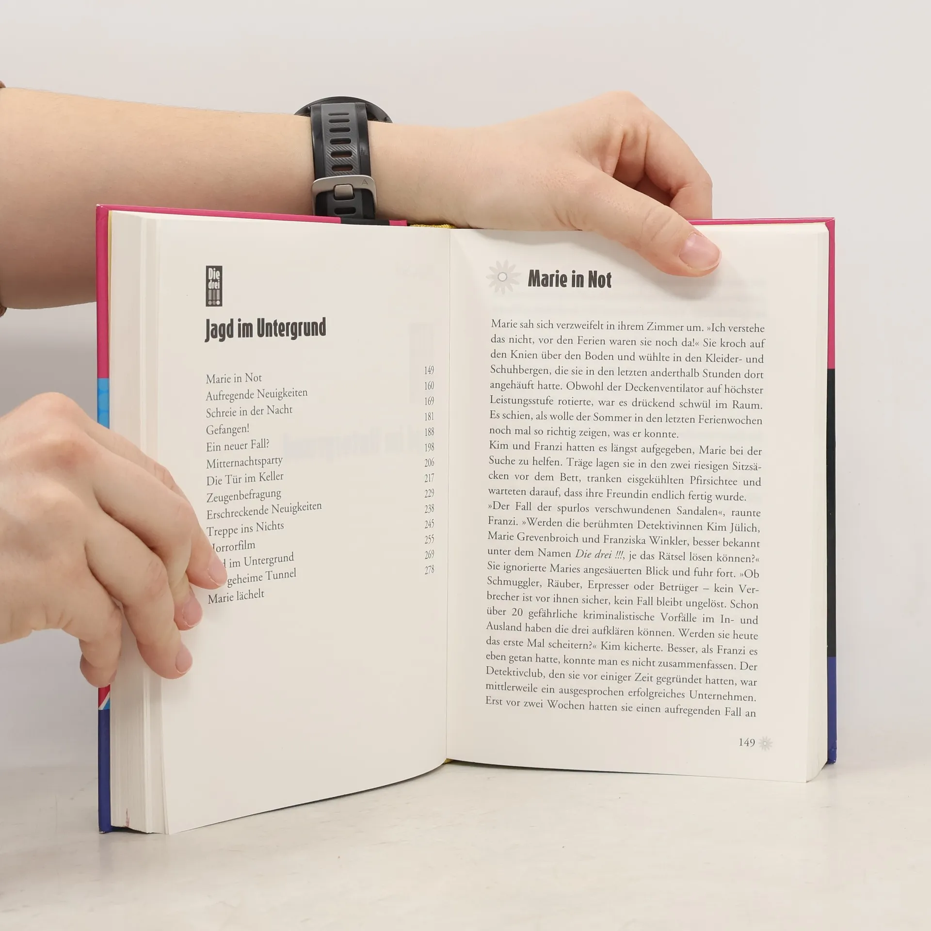 Kim, Franzi und Marie sind „Die drei !!!“. Mutig und clever ermitteln die drei Freundinnen und sind jedem Fall gewachsen. Die drei !!! sind auf Urlaubsmission. Ob auf der legendären Pferderennbahn in Ascot oder beim Hauptstadt-Shopping in Berlin – die drei Kult-Detektivinnen müssen auf ihren nächsten Fall nicht lange warten. Skandal auf der Rennbahn: Eigentlich wollten die drei !!! ihren Sprachkurs in England dafür nutzen, endlich einmal nur Urlaub zu machen. Doch als sie auf der legendären Rennbahn in Ascot seltsame Vorkommnisse beobachten, können die drei Detektivinnen nicht einfach wegschauen. Haben sie es hier wirklich mit Doping und Wettbetrug zu tun? Franzi, Kim und Marie riskieren Kopf und Kragen, um diesen Fall zu lösen ... Jagd im Untergrund: Die drei !!! können ihr Glück kaum fassen: Sie nehmen an einem Theater-Festival in Berlin teil. Das bedeutet eine Woche Theater, Shoppen, Nachtleben – Hauptstadt-Feeling pur! Doch kaum sind sie in Berlin angekommen, haben sie auch schon ihren nächsten Fall. Scheinbar sollen die Bewohner eines alternativen Szene-Viertels von einem skrupellosen Immobilien-Hai aus ihren Häusern vertrieben werden, damit der dort Luxus-Wohnungen bauen kann. Doch bei genauerem Hinsehen, kommen Kim, Franzi und Marie einem ganz anderen Verbrechen auf die Spur und tauchen ein in die geheime Berliner Unterwelt ...