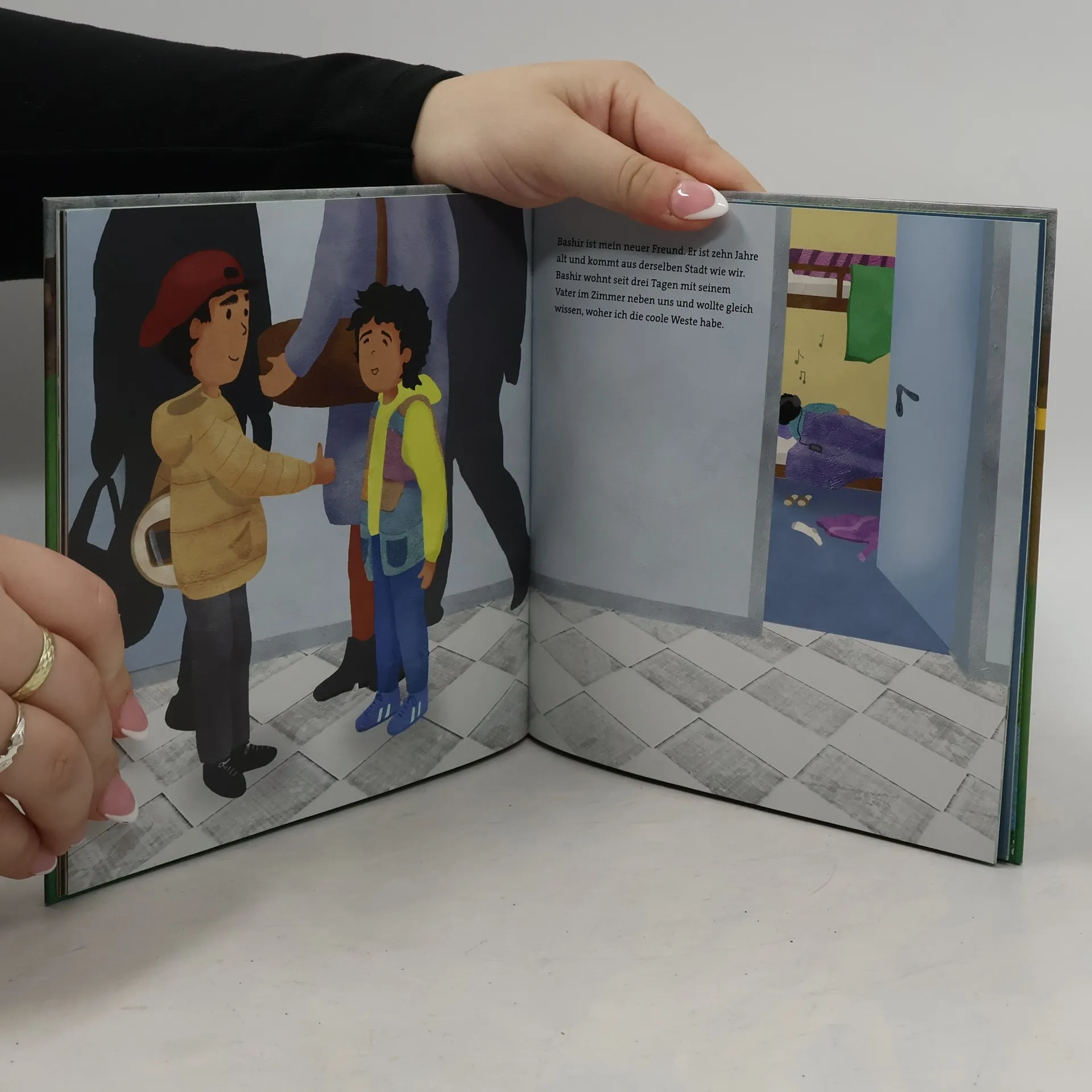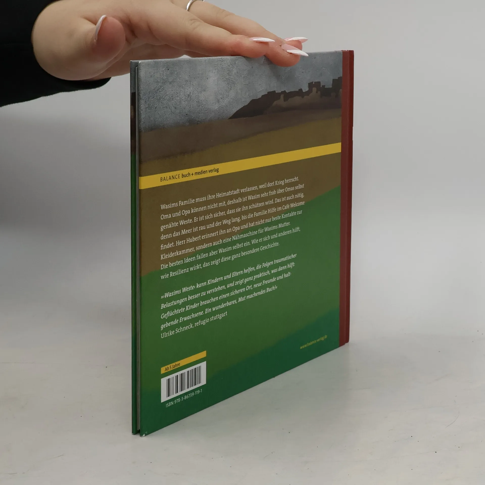 Wasims Familie muss ihre Heimatstadt verlassen, weil dort Krieg herrscht. Oma und Opa können nicht mitfliehen, deshalb ist Wasim sehr froh über die Weste, die Oma selbst genäht hat. Er ist sich sicher, dass sie ihn schützen wird. Das ist auch nötig, denn das Meer ist rau und der Weg lang, bis die Familie Hilfe im Café Welcome findet. Herr Hubert hilft, wo er kann, doch die besten Ideen fallen Wasim selbst ein, und damit hilft er sich, seinem Vater und seinem neuen Freund Bashir, der von Alpträumen geplagt wird. Diese liebevoll illustrierte Geschichte über Flucht und Trauma zeigt nicht nur, was Kindern hilft, besser durch Krisenzeiten zu kommen, sondern wie auch traumatisierte Kinder Resilienz entwickeln können. Geeignet für - Kinder und Erwachsene, die Flüchtlinge kennen, ihnen helfen und mit ihnen ins Gespräch kommen wollen, - den pädagogischen und therapeutischen Einsatz in Traumaambulanzen, Kindergärten und Schulen, Familienberatungsstellen, Praxen von Kinder- und Jugendlichentherapeuten, Der Bundesverband der Angehörigen psychisch Kranker (BApK) wird parallel im Rahmen seiner Arbeit mit Flüchtlingsfamilien eine arabischsprachige Ausgabe ins Netz stellen.