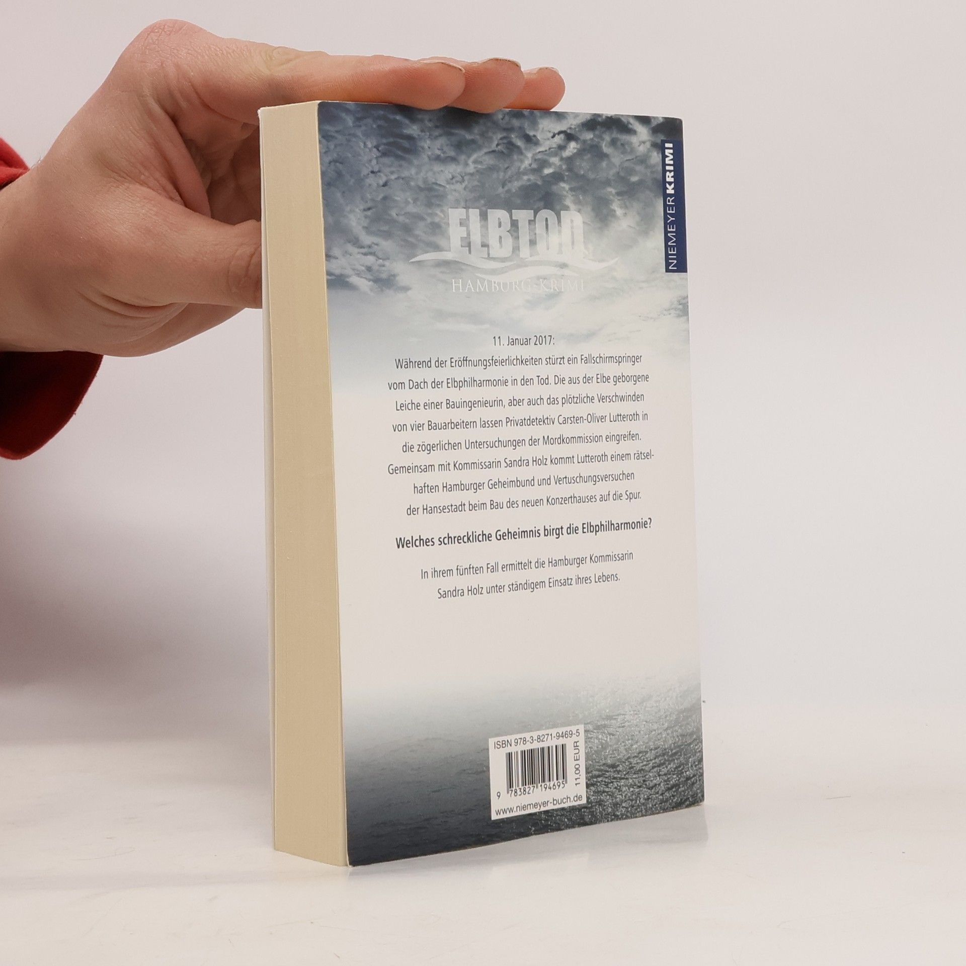 11. Januar 2017: Während der Eröffnungsfeierlichkeiten stürzt ein Fallschirmspringer vom Dach der Elbphilharmonie in den Tod. Die aus der Elbe geborgene Leiche einer Bauingenieurin, aber auch das plötzliche Verschwinden von vier Bauarbeitern lassen Privatdetektiv Carsten-Oliver Lutteroth in die zögerlichen Untersuchungen der Mordkommission eingreifen. Gemeinsam mit Kommissarin Sandra Holz kommt Lutteroth einem rätselhaften Hamburger Geheimbund und Vertuschungsversuchen der Hansestadt beim Bau des neuen Konzerthauses auf die Spur. Welches schreckliche Geheimnis birgt die Elbphilharmonie? In ihrem fünften Fall ermittelt die Hamburger Kommissarin Sandra Holz unter ständigem Einsatz ihres Lebens.