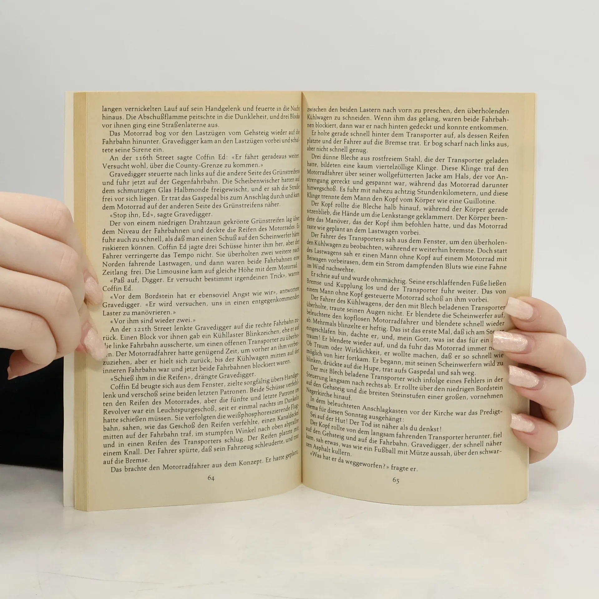 Ein Mann ohne Kopf fährt Motorrad, zwei Polizisten begegnen einer fliegenden Untertasse, und ein Toter erwacht wieder zum Leben … Ein bisschen viel auf einmal, sogar für Harlem, das allerhand gewohnt ist. Die beiden schwarzen Detektive, haben alle Hände voll zu tun, um wiederherzustellen, was in Harlem für Ruhe und Ordnung gilt. Harlem dreht durch zählt zur als Harlem Zyklus bekannten erfolgreichen Reihe von Kriminalromanen rund um die Polizisten Grave Digger und Coffin Ed.