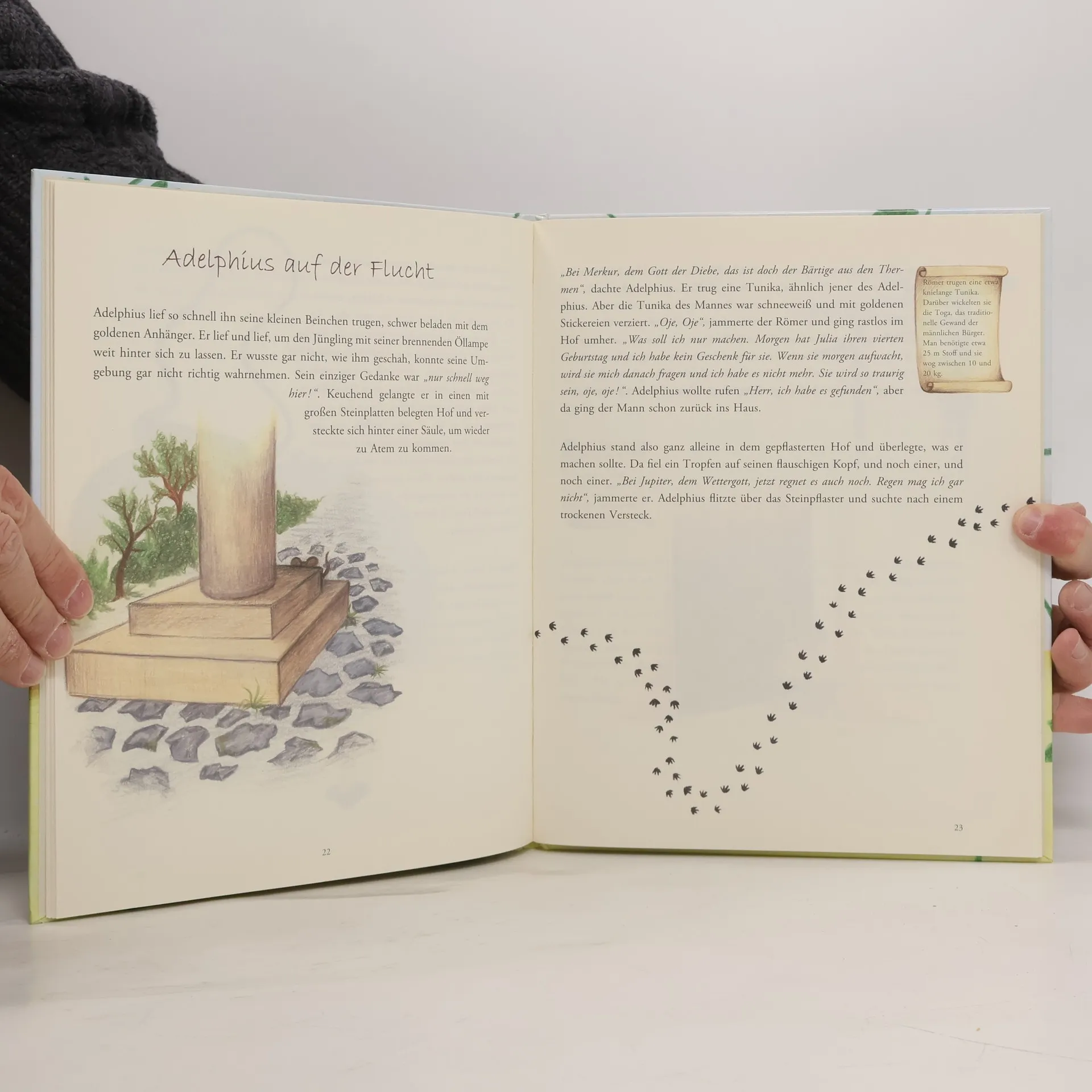 Salve! Ich heiße Adelphius und bin eine Maus. Mit meiner Familie lebe ich im Carnuntum der Römerzeit und erlebe spannende Abenteuer.Eines Abends, alle schlafen schon tief und fest, höre ich lautes Geschrei in den Thermen. Verschlafen frage ich mich, was da wohl passiert sein mag. Neugierig wie ich bin begebe ich mich auf ein spannendes Abenteuer, bei dem ihr mich begleiten könnt.Claudia-Maria Behling ist promovierte Archäologin und arbeitet in der Römerstadt Carnuntum in der Nähe von Wien. Nach zahlreichen wissenschaftlichen Publikationen hat sie sich jetzt einer neuen Herausforderung gestellt. In Form eines Kinderbuches informiert dieser HiStory-Guide fachkundig und kindgerecht über die Römerzeit und ist gleichzeitig zur Erkundung Carnuntums geeignet. Indem Geschichte als eine Geschichte erzählt wird, ist dieses Buch auch als lernbegleitendes Lesematerial für Kindergärten und Volksschulen geeignet. (phoibos.at)