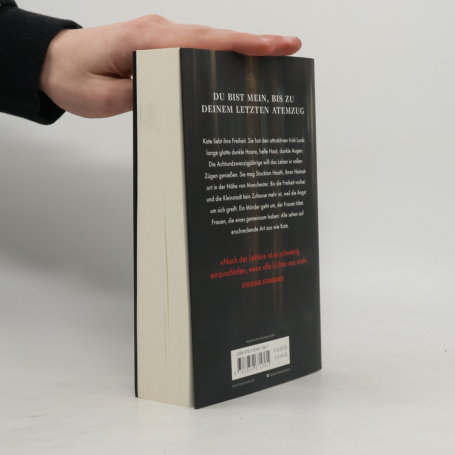 Kate liebt ihre Freiheit. Sie hat den attraktiven Irish Look: lange glatte dunkle Haare, helle Haut, dunkle Augen. Die Achtundzwanzigjährige will das Leben in vollen Zügen genießen. Sie mag Stockton Heath, ihren Heimatort in der Nähe von Manchester. Bis die Freiheit vorbei und die Kleinstadt kein Zuhause mehr ist, weil die Angst um sich greift. Ein Mörder geht um, der Frauen tötet. Frauen, die eines gemeinsam haben: Alle sehen auf erschreckende Art aus wie Kate. „Es ist schwierig, nach der Lektüre, wenn die Lichter aus sind, einzuschlafen.“ Evening Standard