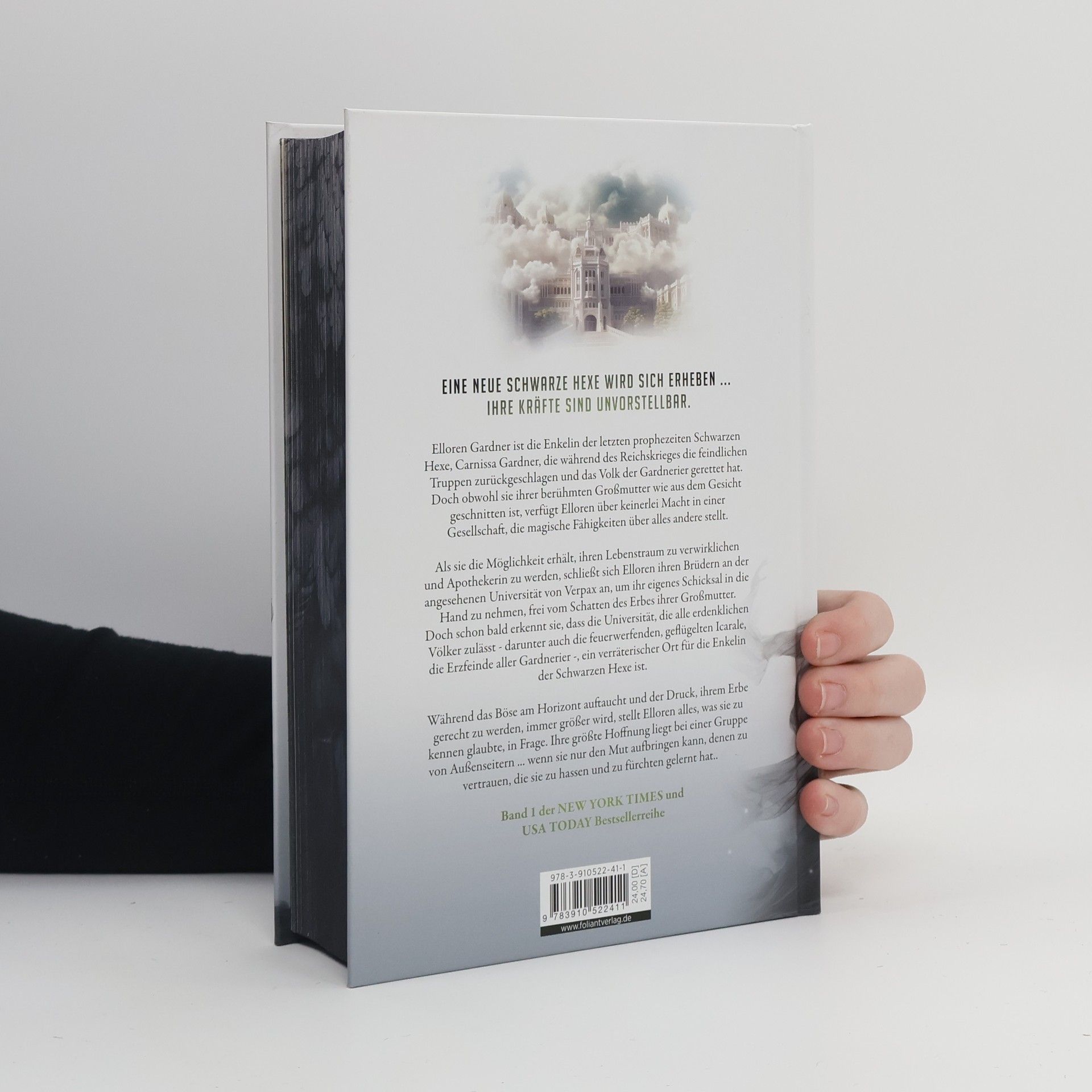 Eine neue Schwarze Hexe wird sich erheben ... ihre Kräfte sind unvorstellbar. Elloren Gardner ist die Enkelin der letzten prophezeiten Schwarzen Hexe, Carnissa Gardner, die während des Reichskrieges die feindlichen Truppen zurückgeschlagen und das Volk der Gardnerier gerettet hat. Doch obwohl sie ihrer berühmten Großmutter wie aus dem Gesicht geschnitten ist, verfügt Elloren über keinerlei Macht in einer Gesellschaft, die magische Fähigkeiten über alles andere stellt. Als sie die Möglichkeit erhält, ihren Lebenstraum zu verwirklichen und Apothekerin zu werden, schließt sich Elloren ihren Brüdern an der angesehenen Universität von Verpax an, um ihr eigenes Schicksal in die Hand zu nehmen, frei vom Schatten des Erbes ihrer Großmutter. Doch schon bald erkennt sie, dass die Universität, die alle erdenklichen Völker zulässt - darunter auch die feuerwerfenden, geflügelten Icarale, die Erzfeinde aller Gardnerier -, ein verräterischer Ort für die Enkelin der Schwarzen Hexe ist. Während das Böse am Horizont auftaucht und der Druck, ihrem Erbe gerecht zu werden, immer größer wird, stellt Elloren alles, was sie zu kennen glaubte, in Frage. Ihre größte Hoffnung liegt bei einer Gruppe von Außenseitern ... wenn sie nur den Mut aufbringen kann, denen zu vertrauen, die sie zu hassen und zu fürchten gelernt hat.