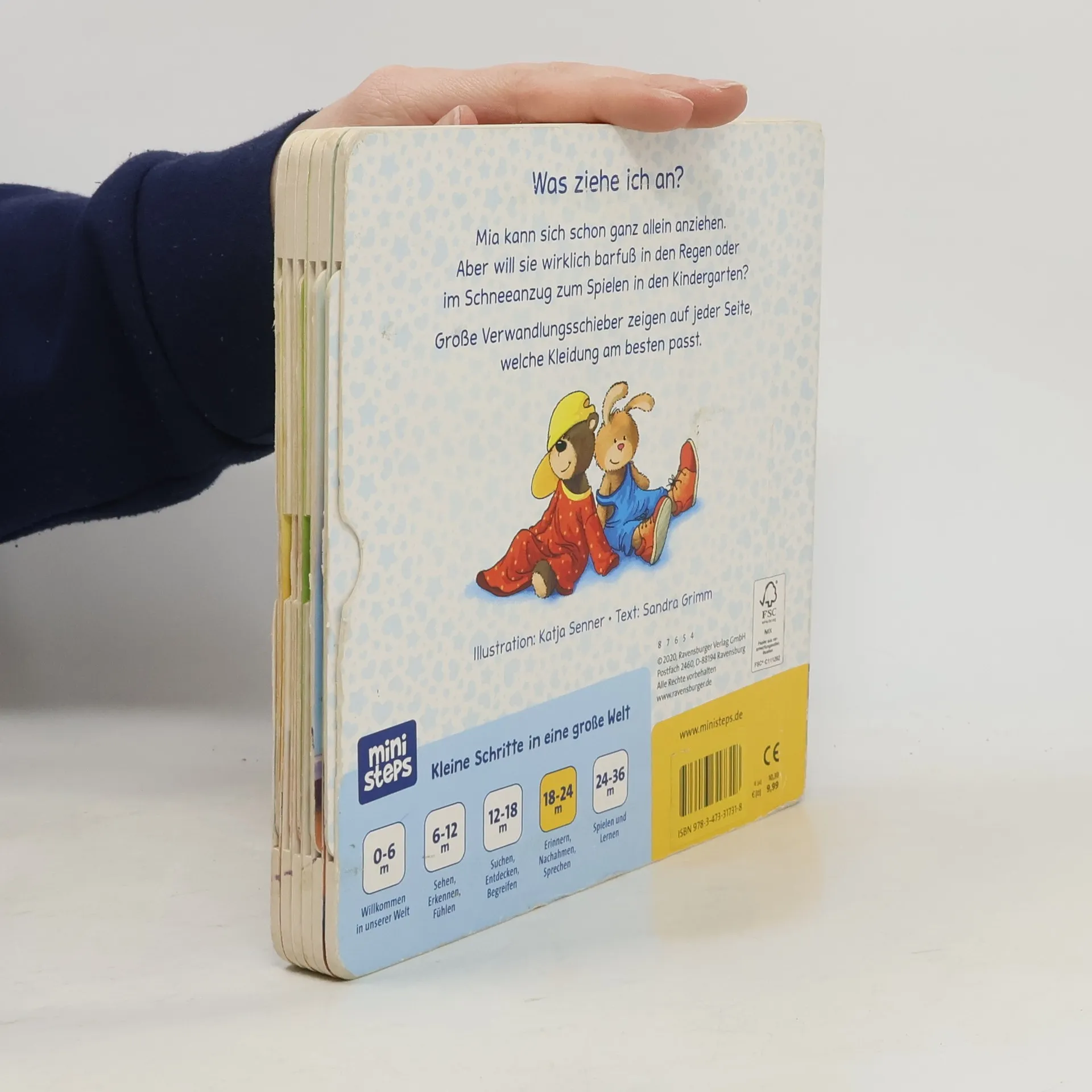 Mia kann sich selbst anziehen und möchte entscheiden, was sie trägt. Doch der Schneeanzug ist im Sommer viel zu warm, Mamas T-Shirt viel zu groß, und ohne Schuhe werden ihre Füße bei Regen nass. Die lustigen Schiebeeffekte machen nicht nur Spaß, sondern helfen Kleinkindern spielerisch zu lernen, welche Kleidung in verschiedenen Situationen passend ist. Sobald Kinder sich ohne Hilfe anziehen können, möchten sie auch selbst wählen, was sie tragen. Manchmal ist die gewählte Kleidung jedoch nicht wettergerecht oder unpraktisch zum Spielen. Wie erklärt man selbstbewussten Kleinkindern, dass der Schneeanzug im Sommer zu warm ist oder dass sie bei Regen Schuhe anziehen müssen? In diesem Buch beschäftigt sich Mia spielerisch mit der Wahl der richtigen Kleidung. Auf jeder Seite entscheidet sie selbst, was sie anzieht, aber oft passt ihre Wahl nicht zur Situation. Durch das Herausziehen des Schiebers verändert sich das Bild, und Mia hat die passende Kleidung an. Kurze, gereimte Texte helfen den Kindern zu verstehen, warum manche Kleidungsstücke unpassend sind. Die Reime sind einprägsam und regen zum Mitsprechen an, wodurch der Wortschatz und das Sprachgefühl der Kinder gefördert werden. ministeps Produkte unterstützen Kinder in ihrer geistigen und körperlichen Entwicklung, abgestimmt auf ihre jeweiligen Entwicklungsschritte. So bietet dieses Schiebebuch altersgerechte Förderung mit viel Spaß!