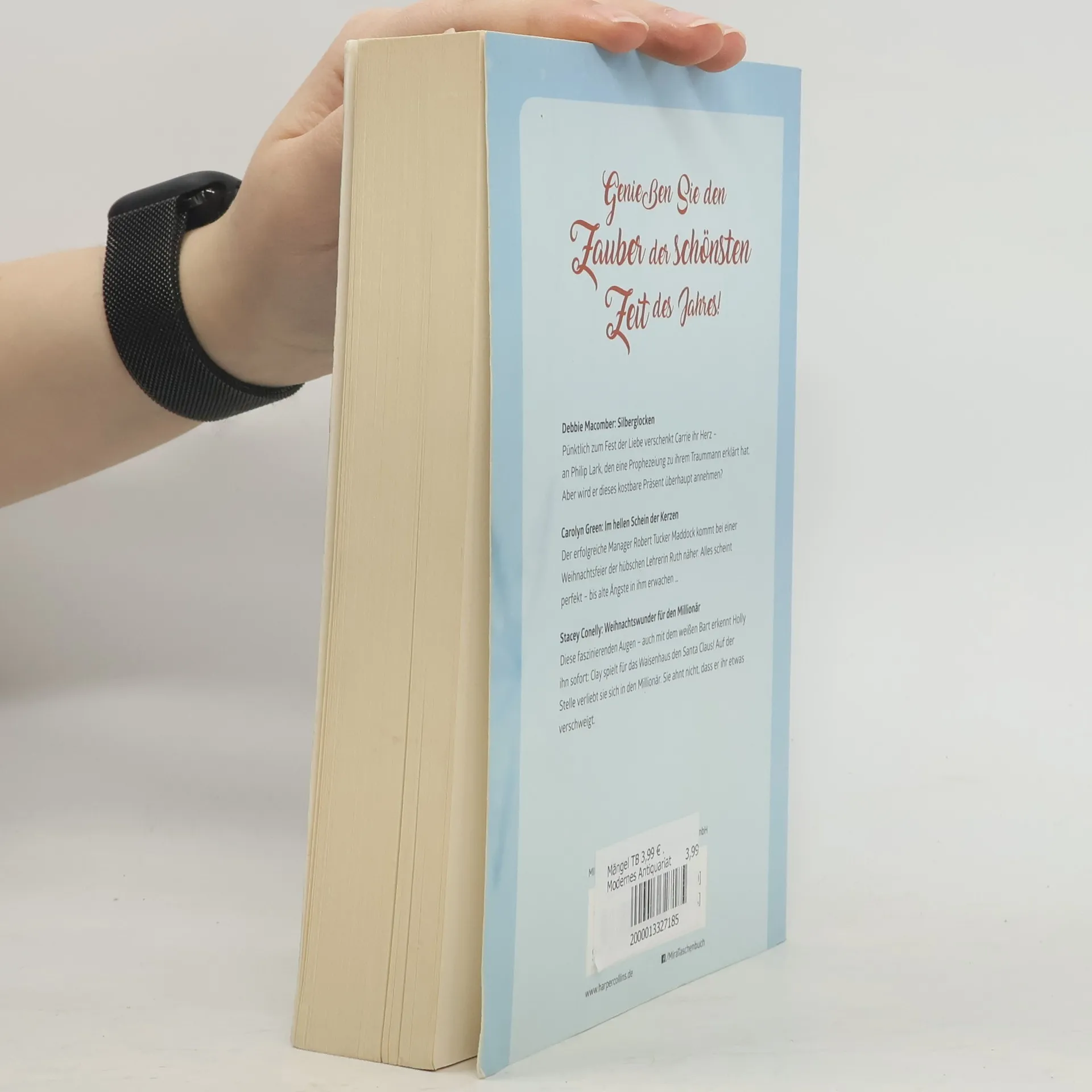 Debbie Macomber Silberglocken Pünktlich zum Fest der Liebe verschenkt Carrie ihr Herz - an Philip Lark, den eine Prophezeiung zu ihrem Traummann erklärt hat. Aber wird er dieses kostbare Präsent überhaupt annehmen? Carolyn Green Im hellen Schein der Kerzen Der erfolgreiche Manager Robert Tucker Maddock kommt bei einer Weihnachtsfeier der hübschen Lehrerin Ruth näher. Alles scheint perfekt - bis alte Ängste in ihm erwachen … Stacey Connelly Weihnachtswunder für den Millionär Diese faszinierenden Augen - auch mit dem weißen Bart erkennt Holly ihn sofort: Clay spielt für das Waisenhaus den Santa Claus! Auf der Stelle verliebt sie sich in den Millionär. Sie ahnt nicht, dass er ihr etwas verschweigt.