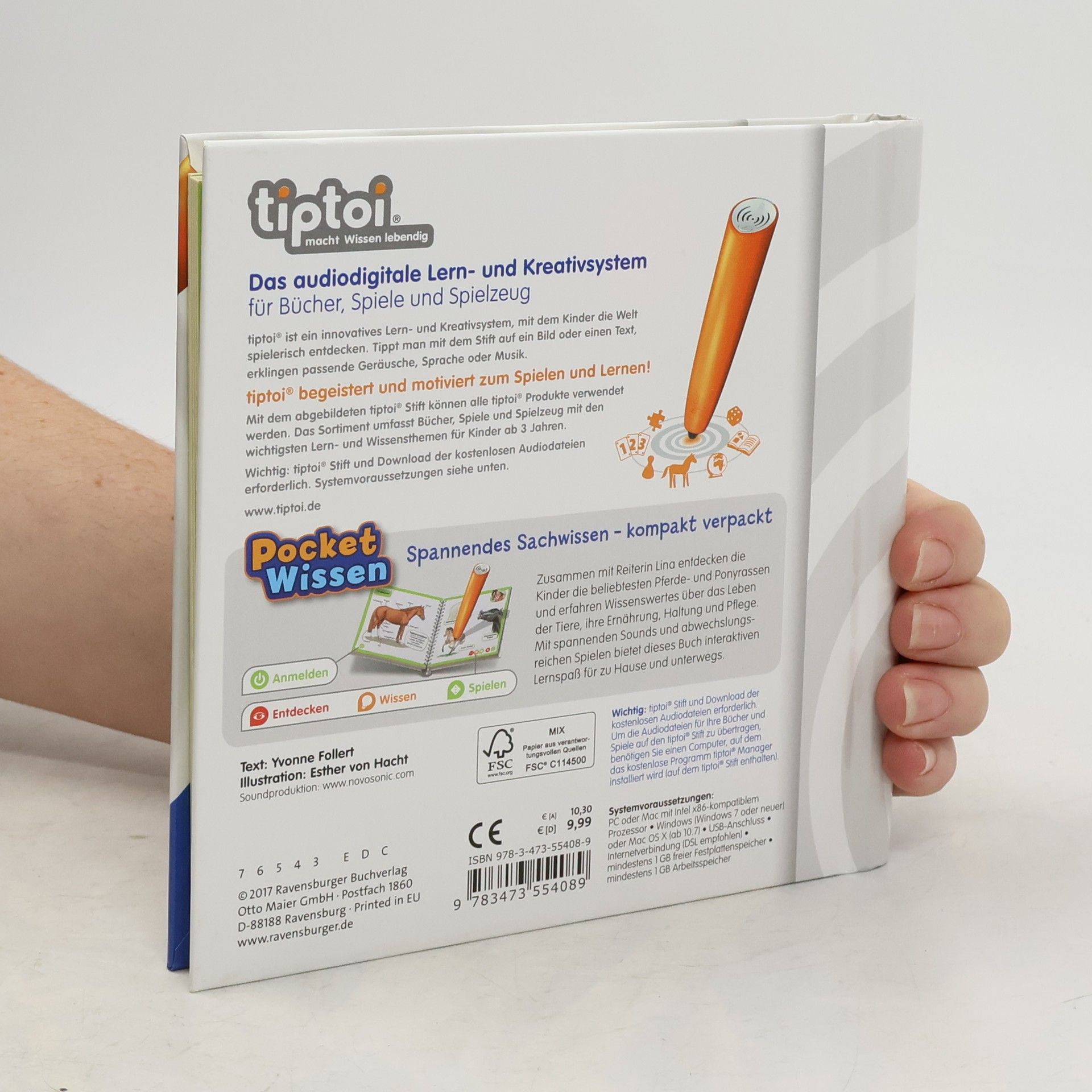 Kompaktes Sachwissen zum Mitnehmen rund um das Thema „Pferde und Ponys“ Zusammen mit Reiterin Lina entdecken Kinder die beliebtesten Pferde- und Ponyrassen. Sie erfahren, was der Unterschied zwischen einem Shetlandpony und einem Haflinger ist, warum Kaltblüter besonders stark sind und wie Wildpferde in der freien Natur leben. Gleichzeitig lernen sie viel über die Haltung und Pflege ihrer liebsten Vierbeiner. Interaktiver Lernspaß für Zuhause und Unterwegs Überall schnaubt, wiehert und prustet es - zahlreiche Geräusche machen die Welt der Pferde und Ponys lebendig. In interaktiven Spielen können die Kinder zeigen, wie gut sie sich mit ihrem Lieblingsthema schon auskennen. Ob Pferde und Ponys, Dinosaurier, Ballett oder Feuerwehr, mit der Reihe tiptoi Pocket Wissen können Kinder von 4 - 7 Jahren all ihre Lieblingsthemen entdecken und sammeln. Jeder Band bietet kompaktes Sachwissen mit vielen interessanten Informationen, authentischen Geräuschen und kniffligen Spielen. Der tiptoi-Stift lässt die kindgerecht aufgearbeiteten Sachthemen lebendig werden. So können sich die Kinder spannende Wissensinhalte mit viel Spaß selbständig und interaktiv aneignen. Die abwechslungsreichen Spiele helfen dabei, das gelernte Wissen zu vertiefen. Dank des handlichen Formats ist tiptoi Pocket Wissen ideal für unterwegs, als Geschenk zum Kindergeburtstag oder zum Schmökern zu Hause.