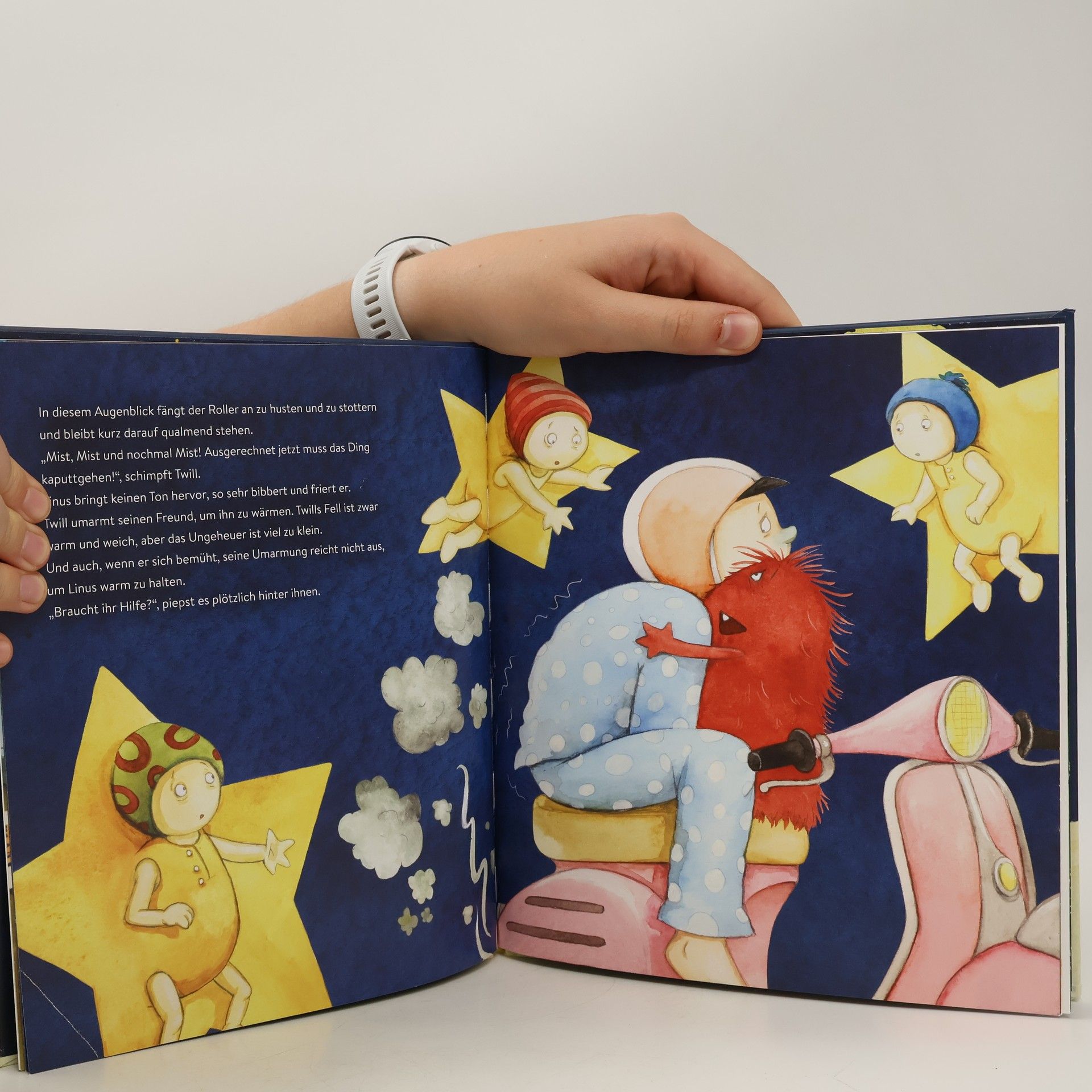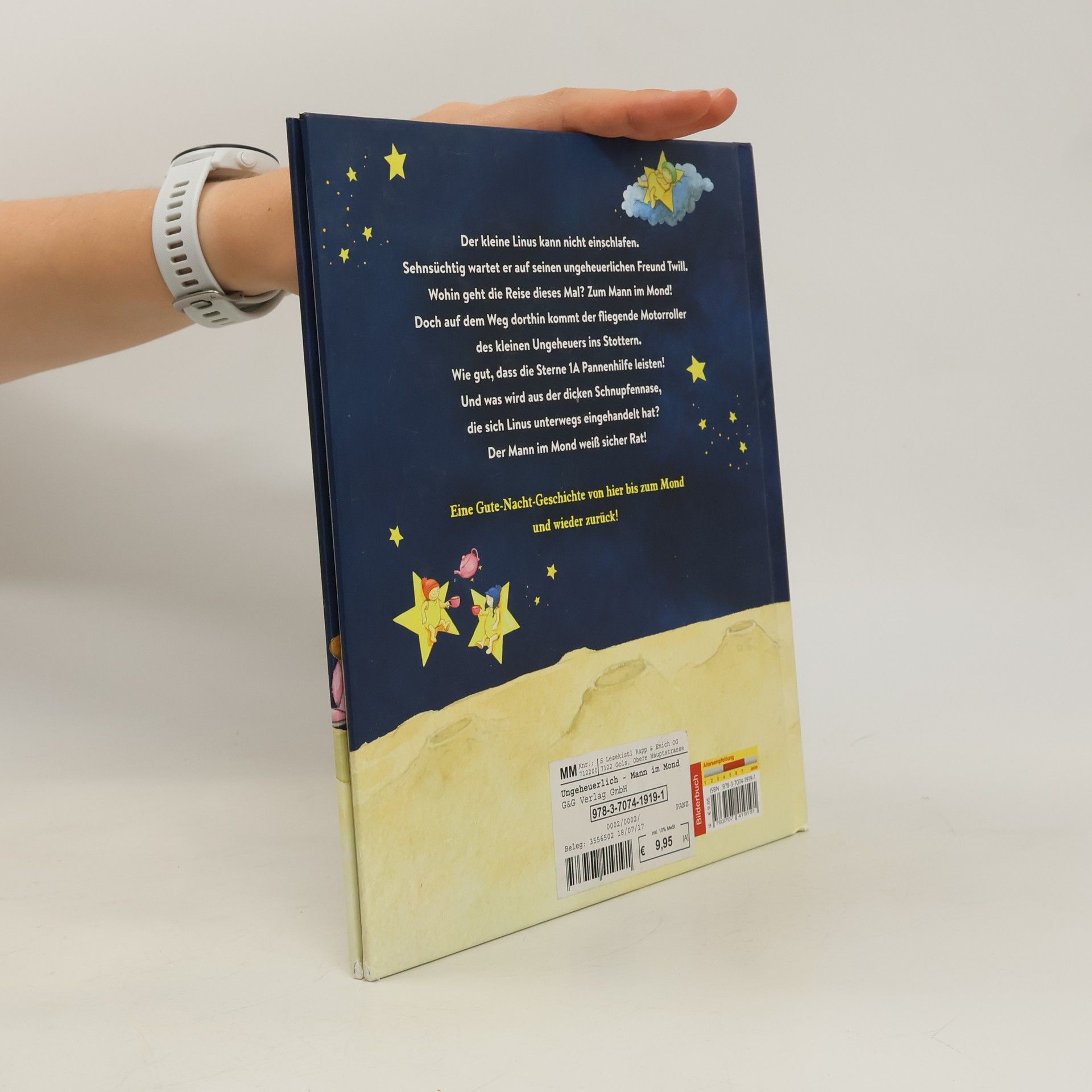 Eine Gute-Nacht-Geschichte mit Witz, Charme und einem unvergesslichen Ungeheuer Der kleine Linus kann nicht einschlafen. Sehnsüchtig wartet er auf seinen ungeheuerlichen Freund Twill. Wohin geht die Reise dieses Mal? Zum Mann im Mond! Doch auf dem Weg dorthin kommt der fliegende Motorroller des kleinen Ungeheuers ins Stottern. Wie gut, dass die Sterne 1A Pannenhilfe leisten! Und was wird aus der dicken Schnupfennase, die sich Linus unterwegs eingehandelt hat? Der Mann im Mond weiß sicher Rat!
