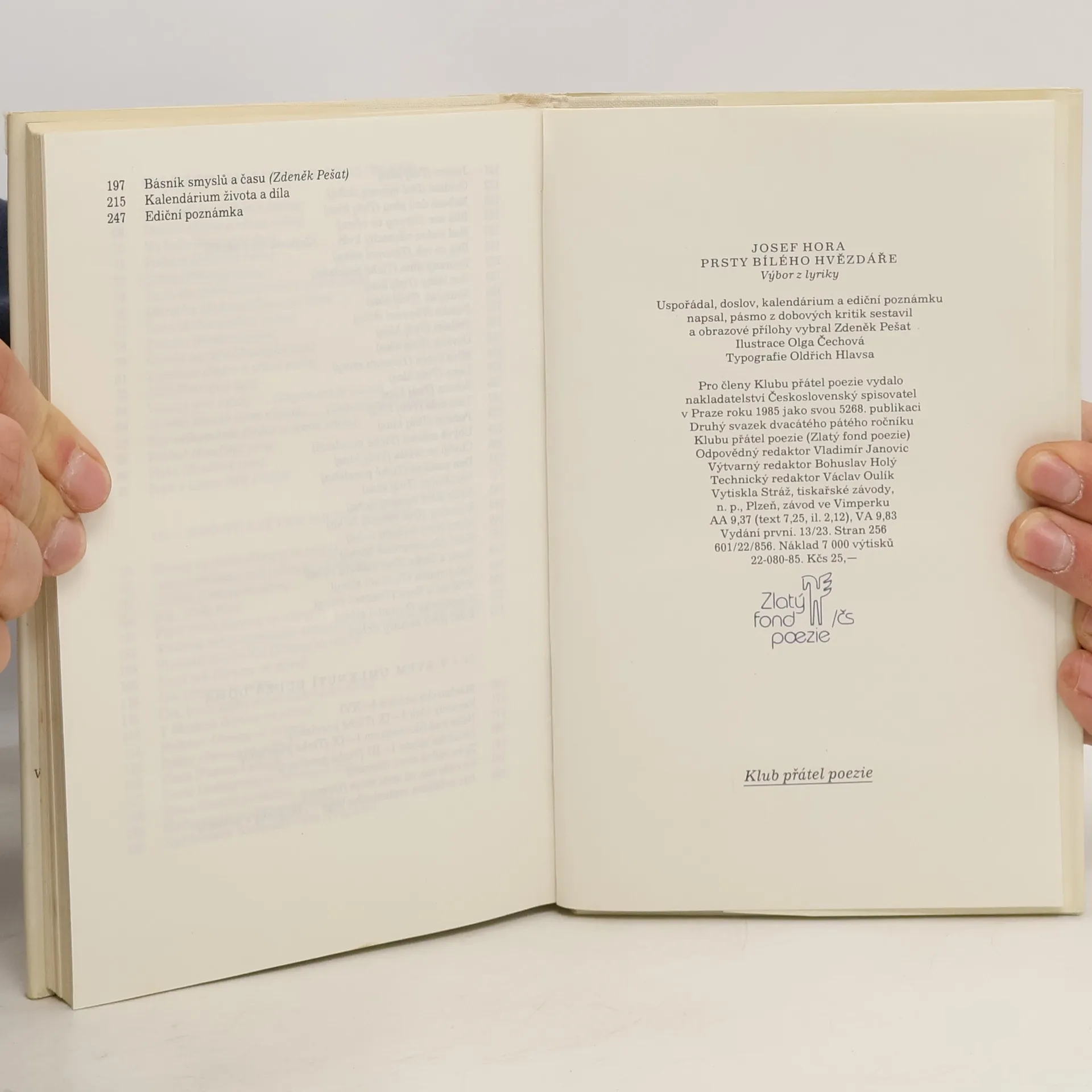 Prsty bílého hvězdáře, Josef Hora, Zdeněk Pešat, Olga Čechová