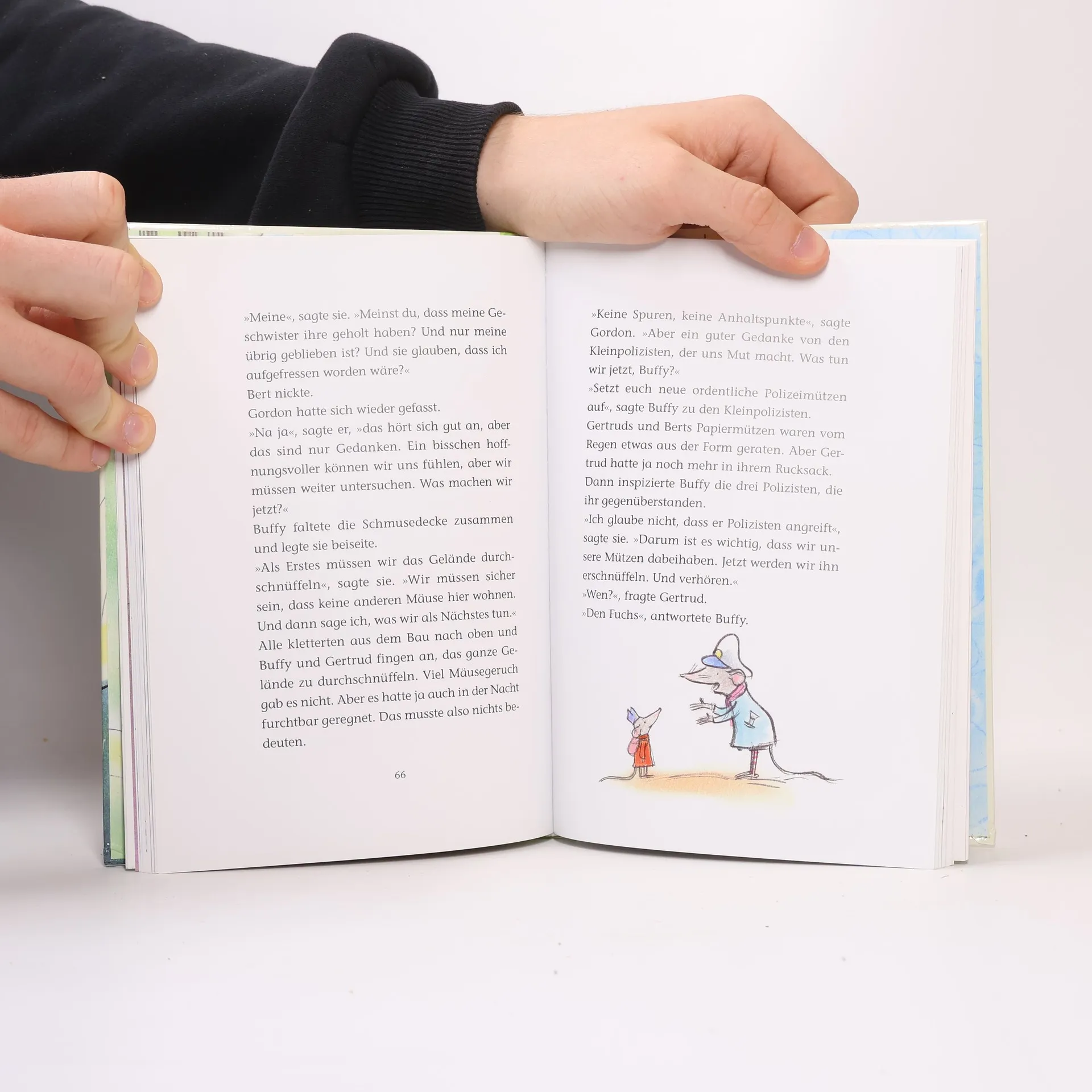 Eigentlich ist es ein ganz friedlicher Tag in der Polizeistation: Arbeiten, Stempeln, Muffins nachbestellen. Doch plötzlich trifft Kommissarin Buffy eine Frage wie ein Blitz: Was ist eigentlich mit ihrer Mama und ihren Geschwistern? Langsam, ganz langsam kann sich Buffy an jenen Wintertag erinnern, an dem sie ihr altes Zuhause verlor und zu Gordon in die Polizeistation kam. Der fiese Fuchs hatte ihren Bau überfallen. Buffy kam davon, doch was ist mit ihrer Mama? Und was mit ihren fünfzehn Geschwistern passiert? Kommissarin Buffy und Kommissar Gordon machen sich auf, ihren allerwichtigsten Fall zu lösen. Und er führt sie weit heraus aus dem Wald, durch dunkle Nacht und strömenden Regen, bis hin zur Insel des Fuchses.