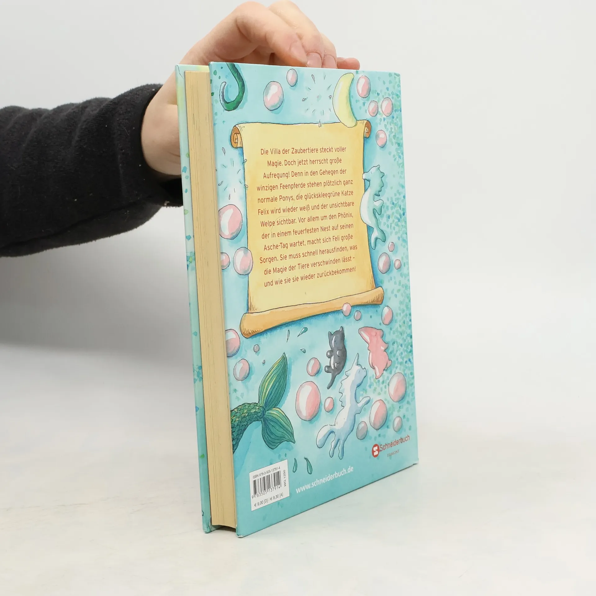 Aufruhr in der Villa der Zaubertiere: ihre Bewohner verlieren nach und nach ihre Magie! In den Gehegen der winzigen Feenpferde stehen plötzlich ganz normale Ponys, die glückskleegrüne Katze Felix wird wieder weiß und der unsichtbare Welpe sichtbar. Vor allem um den Phönix, der in einem feuerfesten Nest auf seinen Asche-Tag wartet, macht Feli sich große Sorgen.