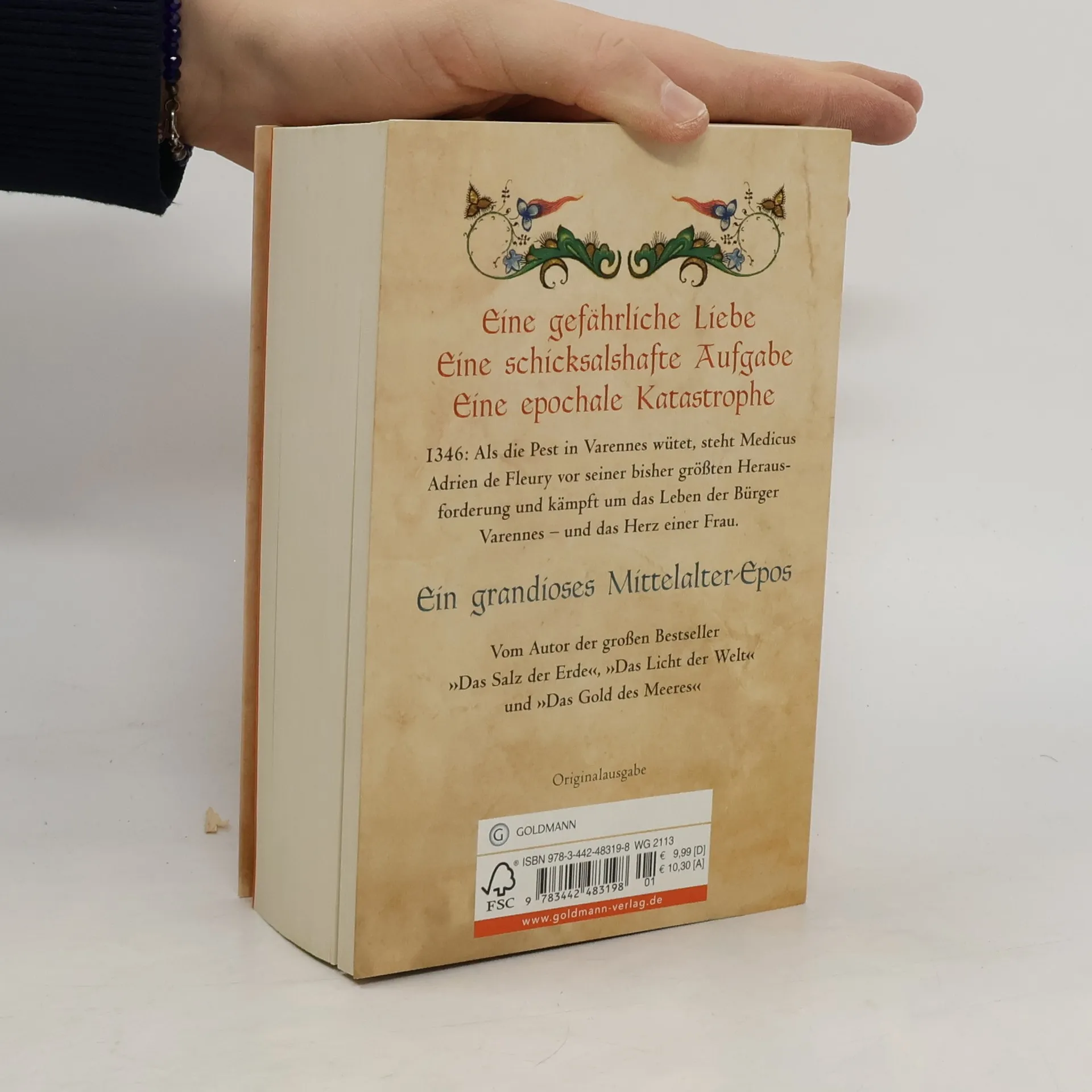 Anno Domini 1346. Der junge Kaufmannssohn Adrien Fleury studiert in Montpellier Medizin und träumt von einer Laufbahn als Arzt. Als er nach Varennes-Saint-Jacques zurückkehrt, erkennt er seine Heimatstadt kaum wieder. Reiche Patrizier regieren Varennes rücksichtslos. Das einfache Volk rebelliert gegen Unterdrückung und niedrige Löhne. Die Juden leiden unter Hass und Ausgrenzung. Als Adrien eine Stelle als Wundarzt antritt, lernt er die jüdische Heilerin Léa kennen. Sie verlieben sich und bringen sich damit in höchste Gefahr. Doch dann wütet der Schwarze Tod in Varennes, und Adriens Fähigkeiten werden auf eine harte Probe gestellt ...