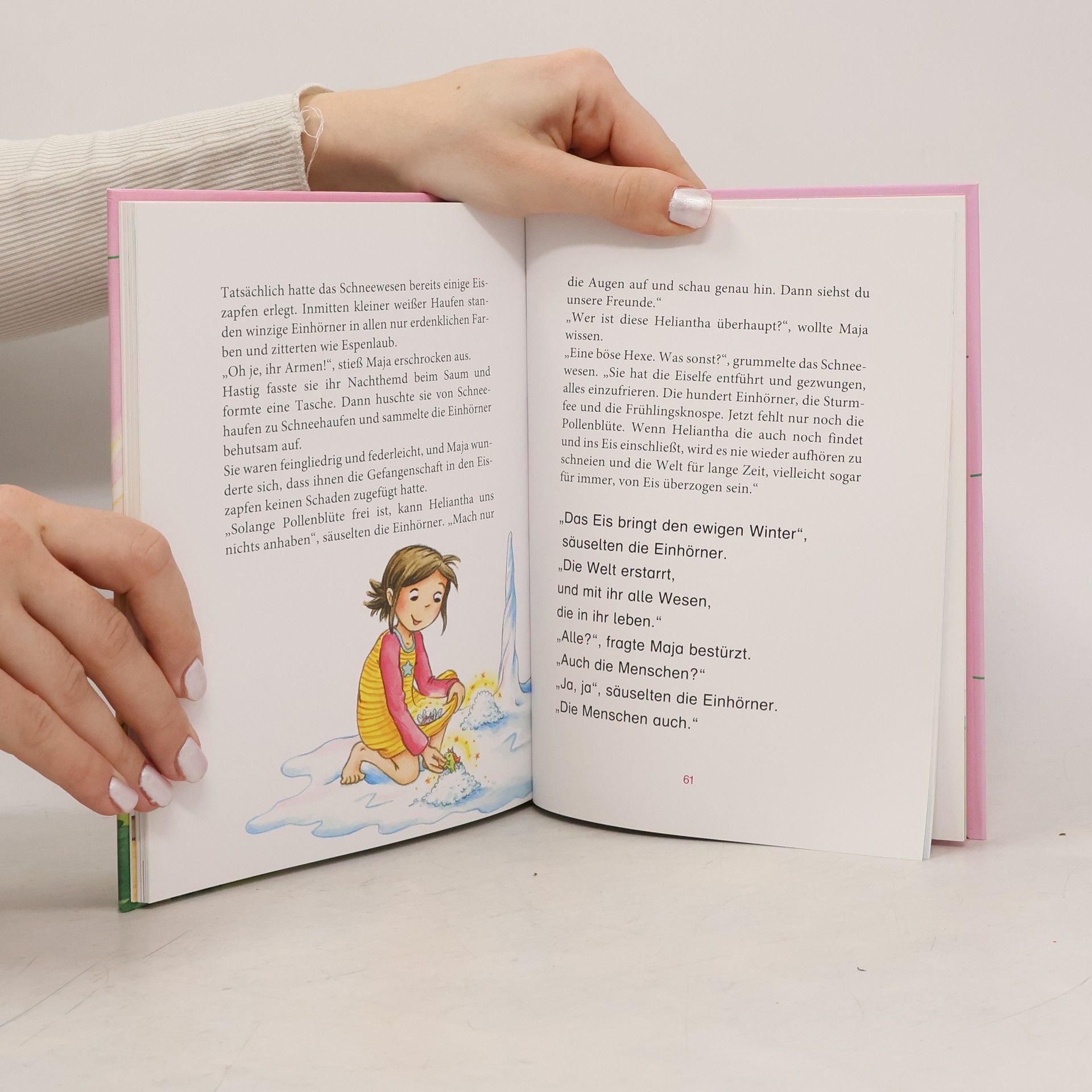 Eine wunderbare Geschichte von Feen, Einhörnern und der Magie der Herzenswärme Als es mitten im Sommer plötzlich schneit und sich dicke Eisblumen bilden, beginnt für das Mädchen Maja ein unglaubliches Abenteuer. Sie wird von der bösen Helanthia entführt und ins Eiszapfenland gebracht. Dort verbreitet Helanthia mit ihrer Kälte Angst und Schrecken, um die Königin der Wetterelfen zu werden. Wird es Maja gelingen, gemeinsam mit der Elfe Pollenblüte den Bann der Eiskönigin zu brechen und die Welt wieder zum Blühen bringen?