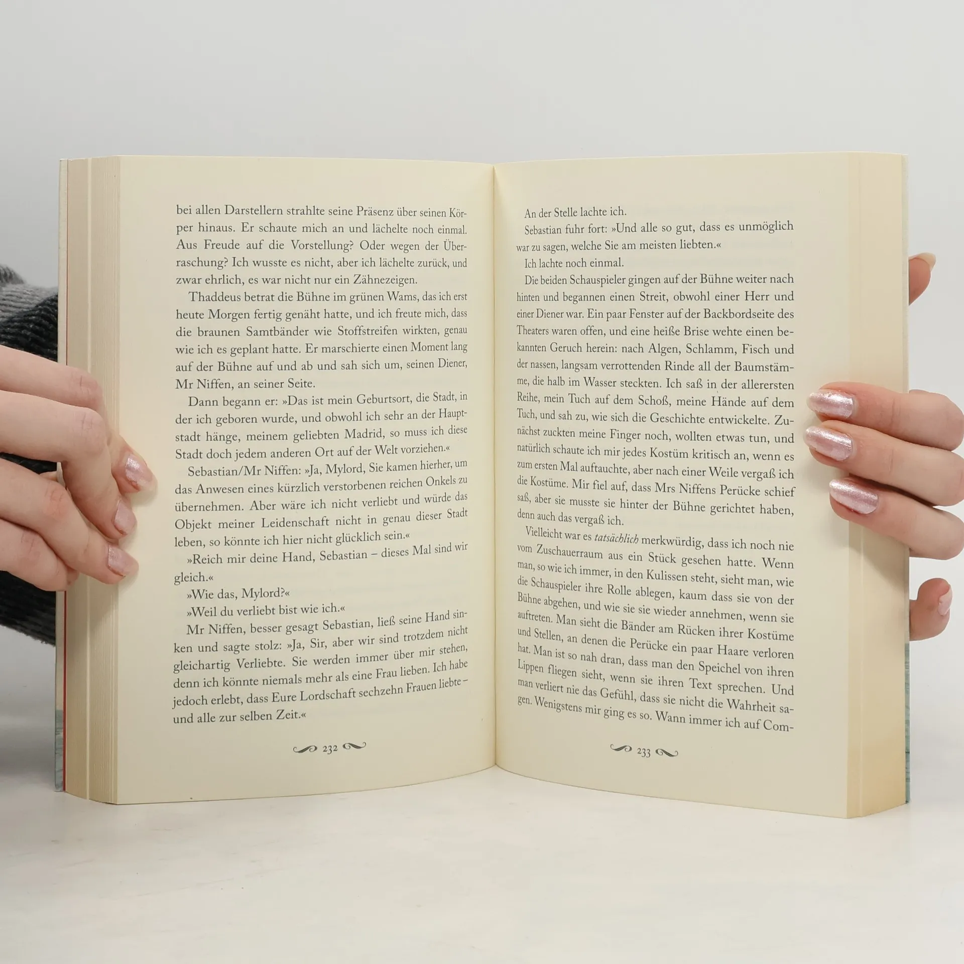 1838 auf dem Ohio River: May Bedloe arbeitet als Schneiderin für ihre Cousine Comfort Vertue, eine gefeierte Schauspielerin. May hatte nie das Bedürfnis, im Scheinwerferlicht zu stehen, und ist mit ihrem einfachen Leben zufrieden. Doch dann trennt sich Comfort überraschend von May, und zum ersten Mal in ihrem Leben ist diese ganz auf sich allein gestellt. Aus der Not heraus heuert sie auf Hugo Cushings Theaterschiff an – und blüht auf. Denn die bunte, exotische Truppe, die ihr dort begegnet, lässt sie endlich zu sich selbst finden. Als ihr dann noch Hugo selbst Avancen macht, scheint ihrem Glück nichts mehr im Wege zu sein. Doch gerade als May ihren Platz im Leben gefunden zu haben glaubt, wird sie vor die größte Herausforderung ihres Lebens gestellt …