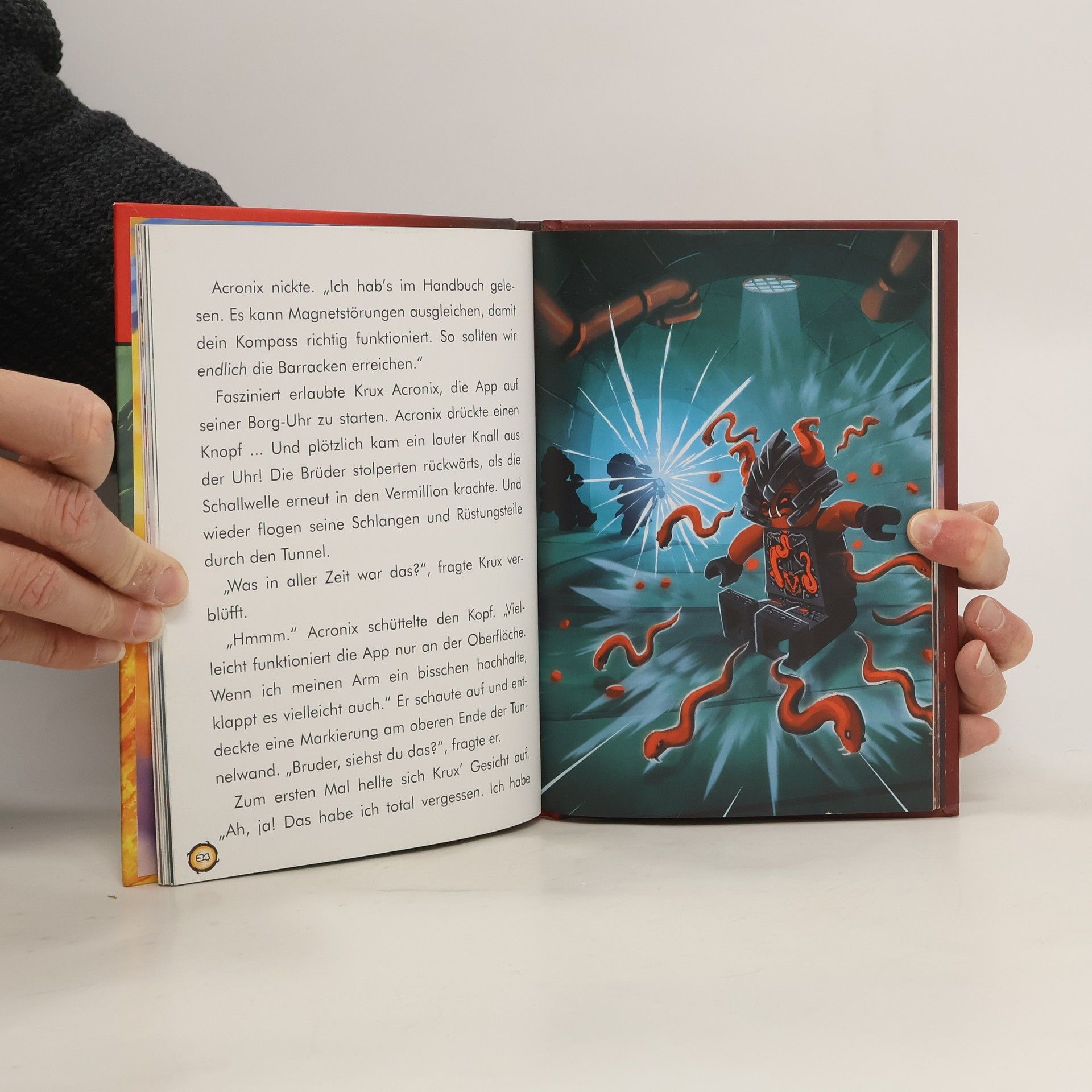 Im weiteren Band der Reihe "LEGO Ninjago - Masters of Spinjitzu" (zuletzt "Die Meister der dunklen Magie") müssen die mutigen Samurai-Geschwister Nya und Kai nicht nur gegen eine Vielzahl bösartiger und beinahe unbesiegbarer Schlagensamurai kämpfen, die ihre Ultra-Tarnkappen-Fahrzeuge im Flug auseinandernehmen wollen, sondern auch noch die Rücklauf-Zeitklinge zur Bibliothek von Honomizu tief unten im kochenden Ozean zurückbringen. Dort wäre sie vor jeglichen Gegner für immer geschützt. Mithilfe des majestätischen, 2-köpfigen Fusionsdrachen, der moralischen Unterstützung ihrer Eltern und vereintem Teamwork schaffen sie es, ihre Mission zu erfüllen, als auch dem bösartigen und riesenhaften Steinmonster das Fürchten zu lehren. - In 3 kurzen Geschichten rund um das "LEGO Ninjago"-Team wird erneut wieder viel abenteuerlich gekämpft. Die Sprache und der Plot dieser Reihe ist - wie ebenso in den Vorgängerbänden - sehr einfach und übersichtlich gehalten. Die großflächigen, farbenprächtigen Bilder auf jeder Seite tragen ebenfalls zum Textverständnis bei
