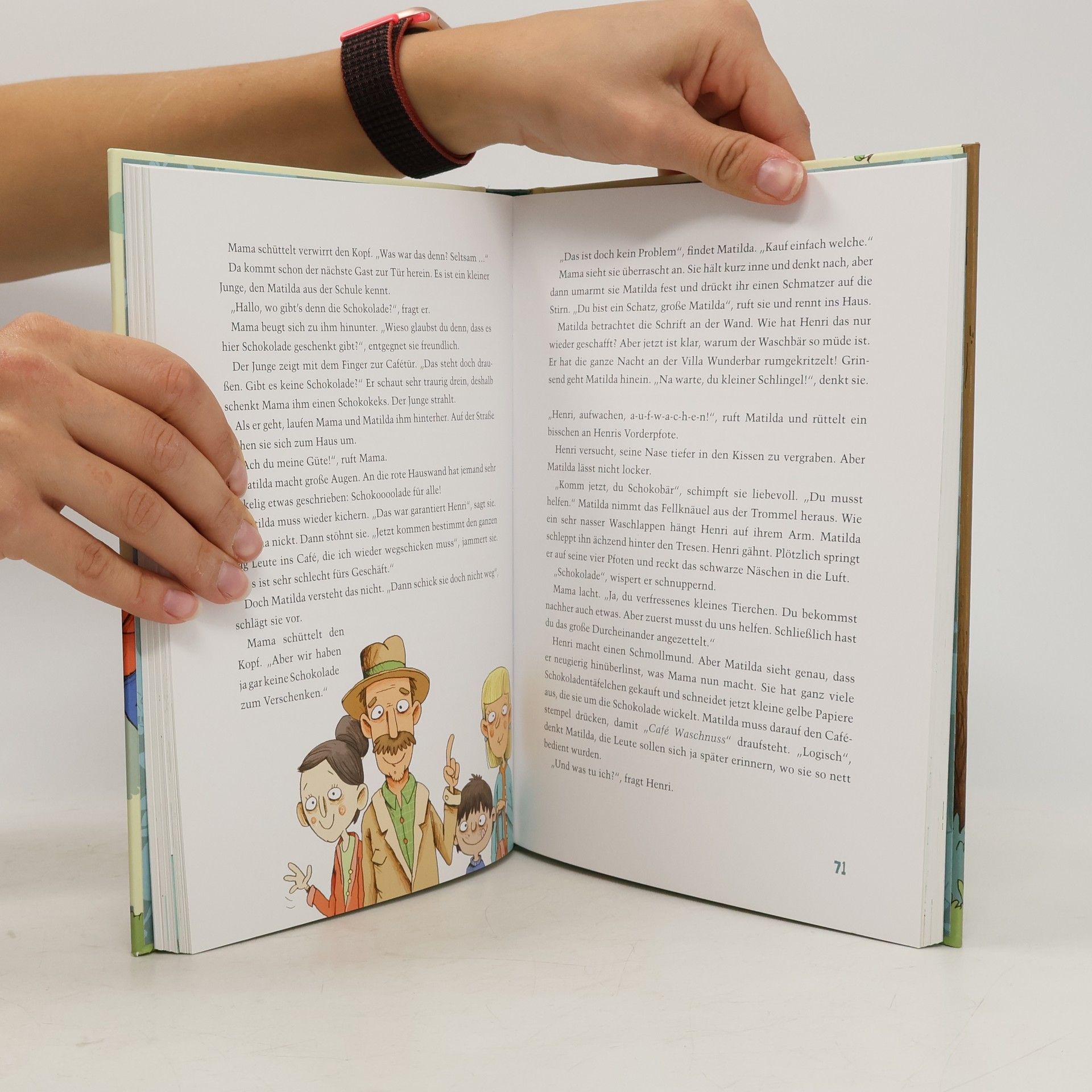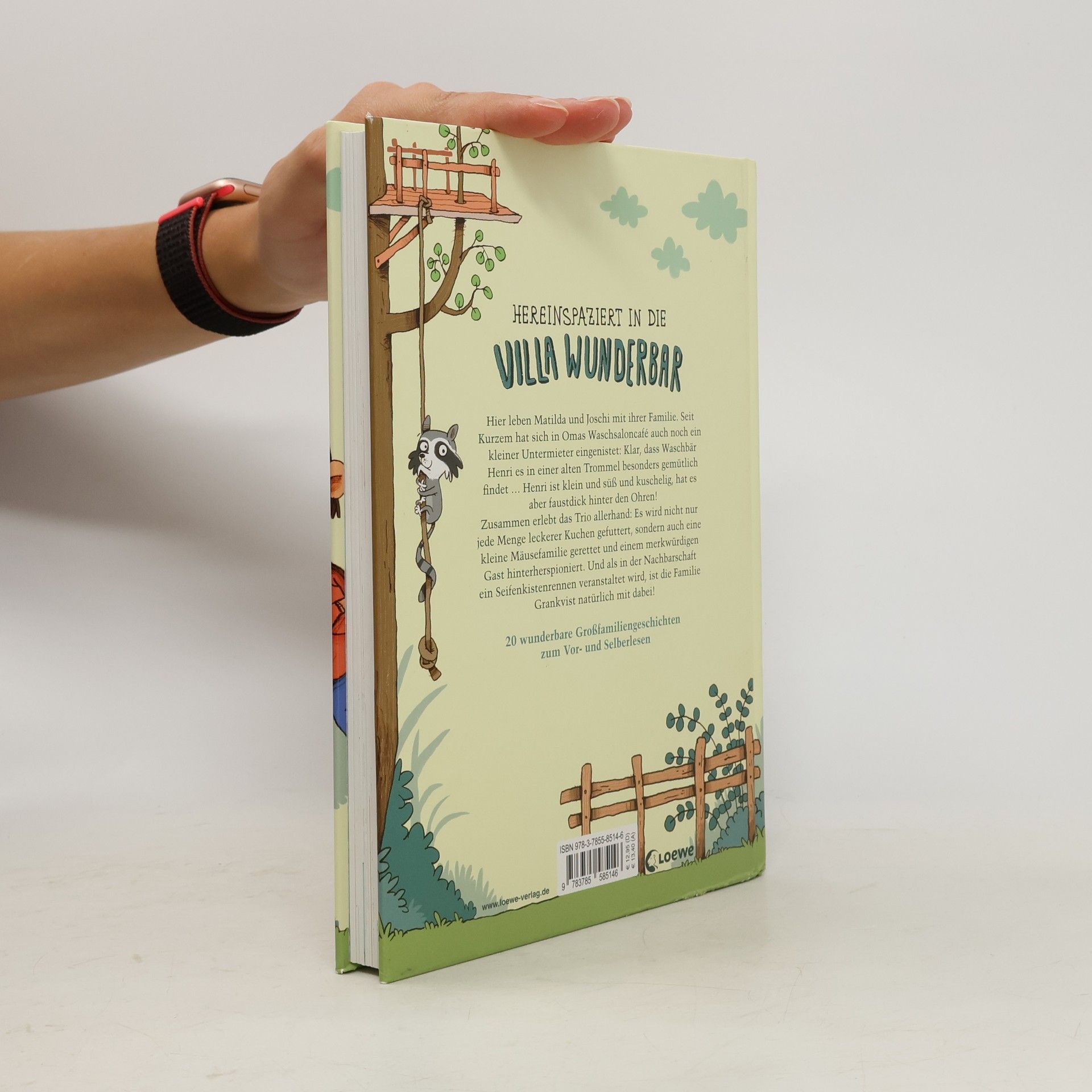 20 wunderbare Großfamiliengeschichten zum Vor- und Selberlesen: Hereinspaziert in die Villa Wunderbar ! Hier leben Matilda und Joschi mit ihren Familien. Seit Kurzem hat sich in Omas Waschsaloncafé auch noch ein kleiner Untermieter eingenistet: Klar, dass Waschbär Henri es in einer alten Trommel besonders gemütlich findet … Henri ist klein, süß und kuschelig, hat es aber faustdick hinter den Ohren! Zusammen erlebt das Trio allerhand: Es wird nicht nur jede Menge leckerer Kuchen gefuttert, sondern auch eine kleine Mäusefamilie gerettet und einem merkwürdigen Gast hinterherspioniert. Und als in der Nachbarschaft ein Seifenkistenrennen veranstaltet wird, ist die Familie Grankvist natürlich mit dabei! Mit viel Liebe haben die Autorinnen Sandra Grimm und Ann-Katrin Heger 20 originelle und lustige Vorlesegeschichten um den Kosmos der Villa Wunderbar und ihre Bewohner – ein buntes Cousin-Cousinen-Duo, das mit Waschbär Henri den familiengeführten Waschsalon mit Café mal mehr oder weniger freiwillig aufmischt – gesponnen. In dieser farbig illustrierten Reihe gibt es beim Vorlesen auf jeder Seite Bilder zu entdecken, aber auch zum Selberlesen im Grundschulalter sind die Geschichten geeignet.