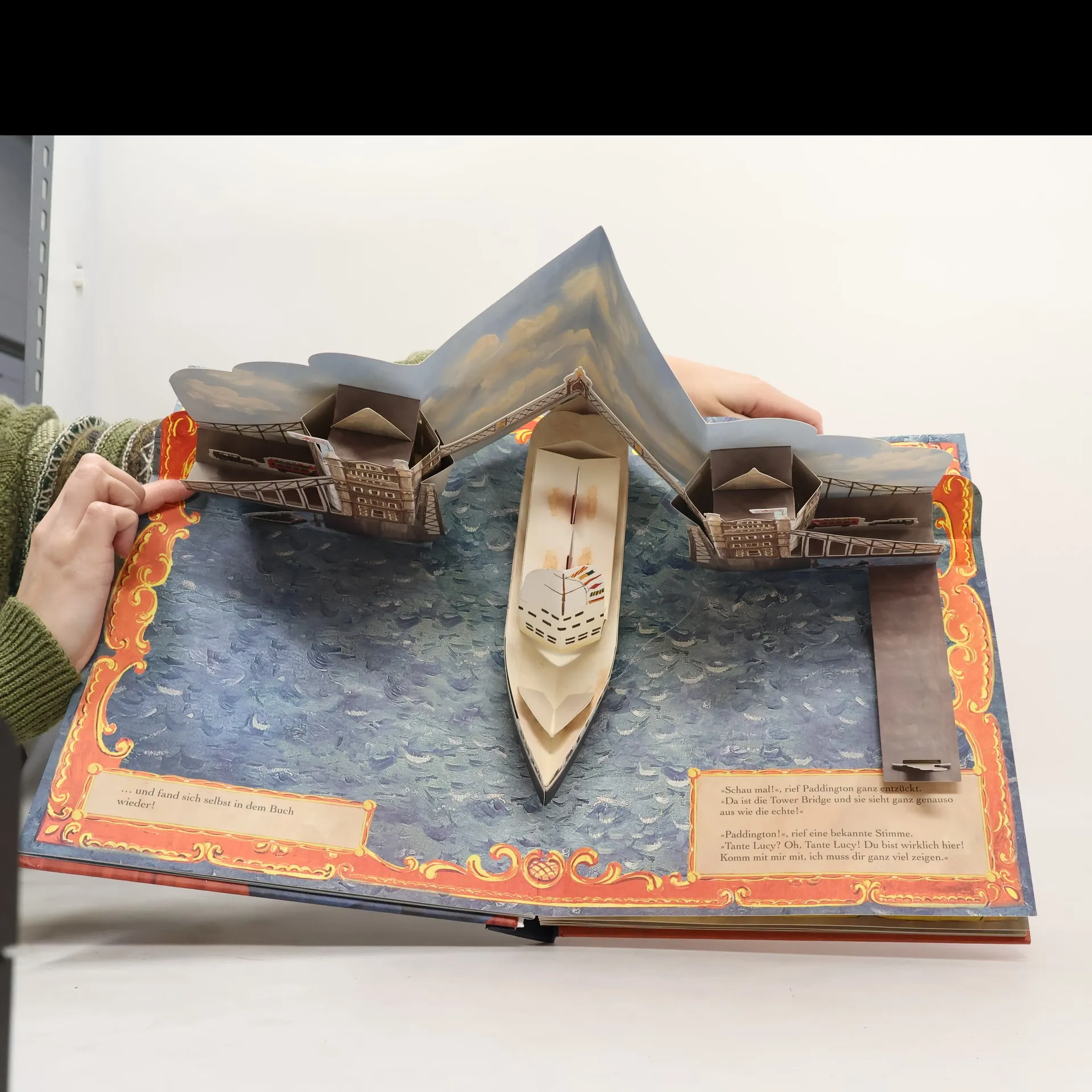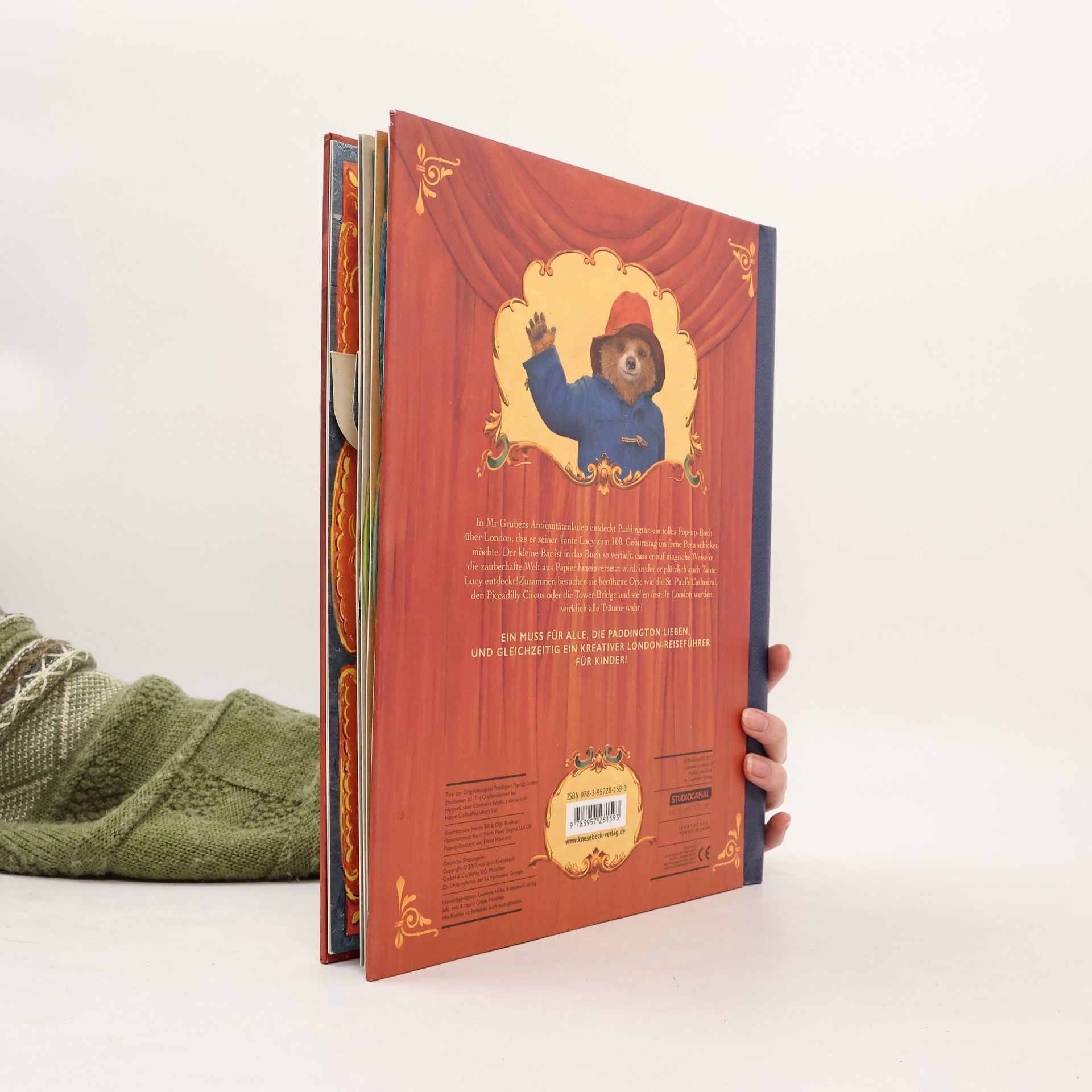 Tauche ein in Paddingtons London In diesem hochwertigen Pop-up-Buch lässt sich in einmaligen 3-D-Ansichten Paddingtons London erkunden. Sechs Pop-ups zeigen das London aus den Filmszenen, die den Hintergrund für Paddingtons verrückte Abenteuer bilden. Die detailgetreuen Panoramen von Piccadilly Circus und Tower Bridge regen zum Staunen und Entdecken an. Hinter Klappen und Schiebern verstecken sich witzige Details. In Mr Grubers Antiquitätenladen entdeckt Paddington ein tolles Pop-up-Buch über London, das er seiner Tante Lucy zum Geburtstag ins ferne Peru schicken will, damit sie die Stadt auch selbst einmal sehen kann. Der kleine Bär ist so vertieft ins Buch, dass er auf magische Weise in die zauberhafte Welt aus Papier hinein versetzt wird, in der er plötzlich auch Tante Lucy entdeckt! Zusammen besuchen sie berühmte Orte wie St. Pauls Cathedral oder Big Ben und stellen fest: In London werden wirklich alle Träume wahr! Ein Muss für alle, die Paddington und London lieben!
