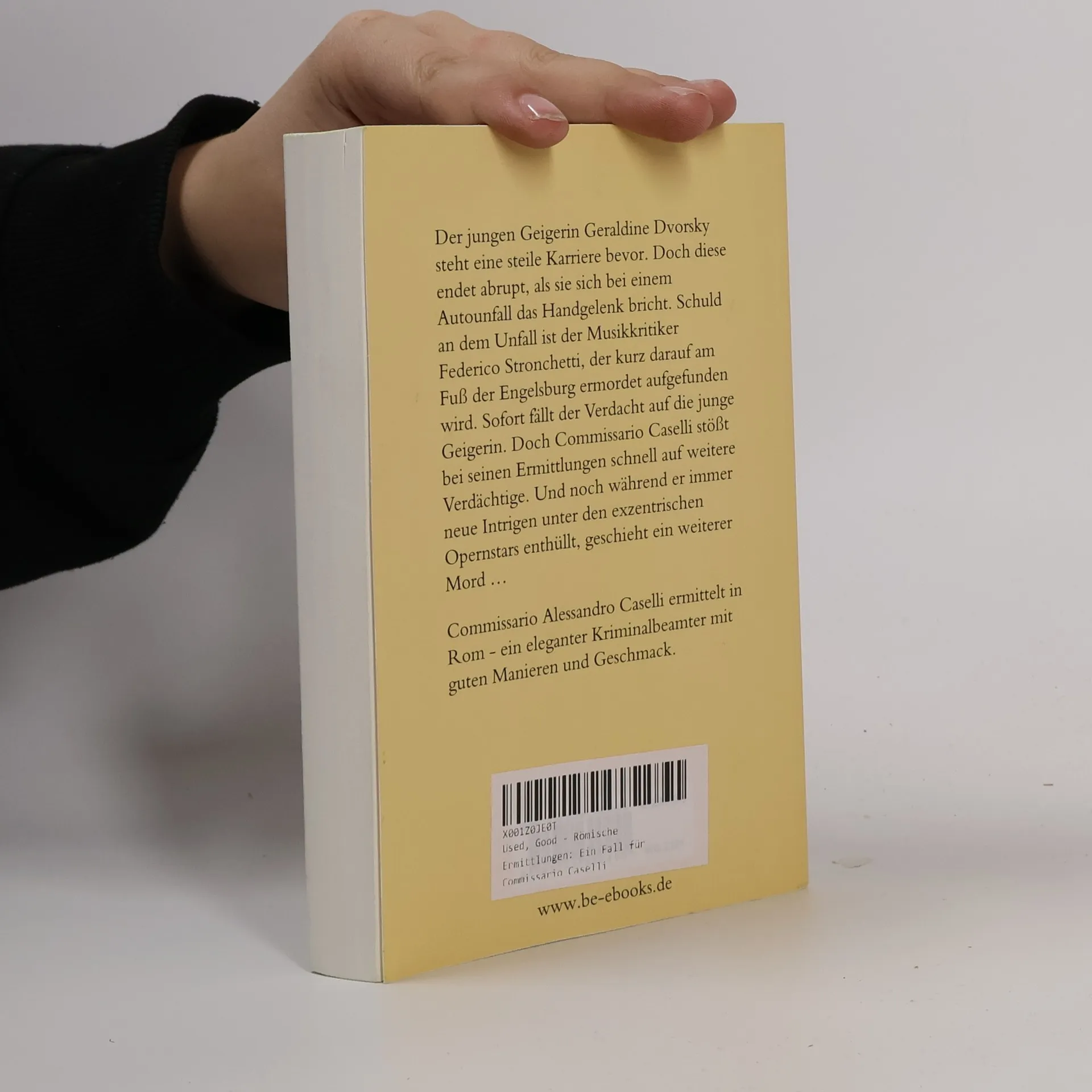 Der jungen Geigerin Geraldine Dvorsky steht eine steile Karriere bevor. Doch diese endet abrupt, als sie sich bei einem Autounfall das Handgelenk bricht. Schuld an dem Unfall ist der Musikkritiker Federico Stronchetti, der kurz darauf am Fuß der Engelsburg ermordet aufgefunden wird. Sofort fällt der Verdacht auf die junge Geigerin. Doch Commissario Caselli stößt bei seinen Ermittlungen schnell auf weitere Verdächtige. Und noch während er immer neue Intrigen unter den exzentrischen Opernstars enthüllt, geschieht ein weiterer Mord ... Commissario Alessandro Caselli ermittelt in Rom - ein eleganter Kriminalbeamter mit guten Manieren und Geschmack.