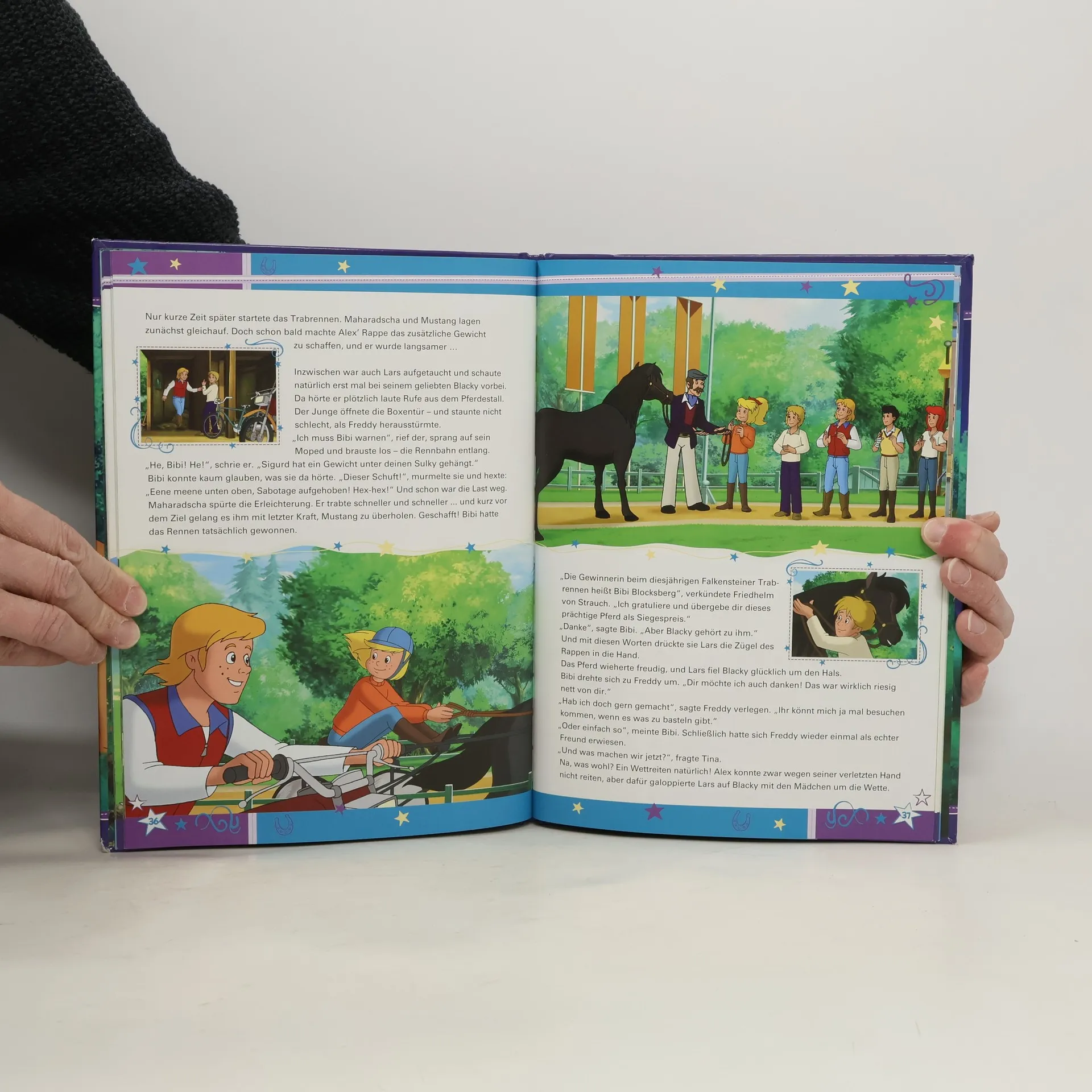In diesem stimmungsvollen Gutenachtgeschichtenbuch nehmen Bibi und Tina ihre Fans mit zu ihren schönsten Pferdeabenteuern. Ob bei einer nächtlichen Schatzsuche in der Burgruine, auf der Spur eines Hundediebes oder bei einem ereignisreichen Inselausflug – Bibi und Tina können sich immer aufeinander verlassen. Und wenn alle Abenteuer überstanden sind, wird es auch für kleine Reiter Zeit, ins Reich der Pferdeträume zu galoppieren.