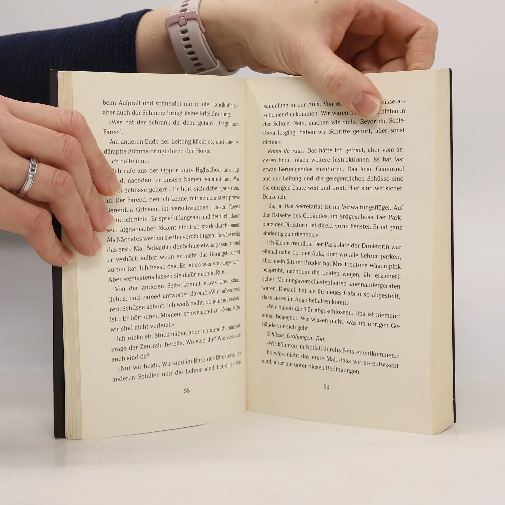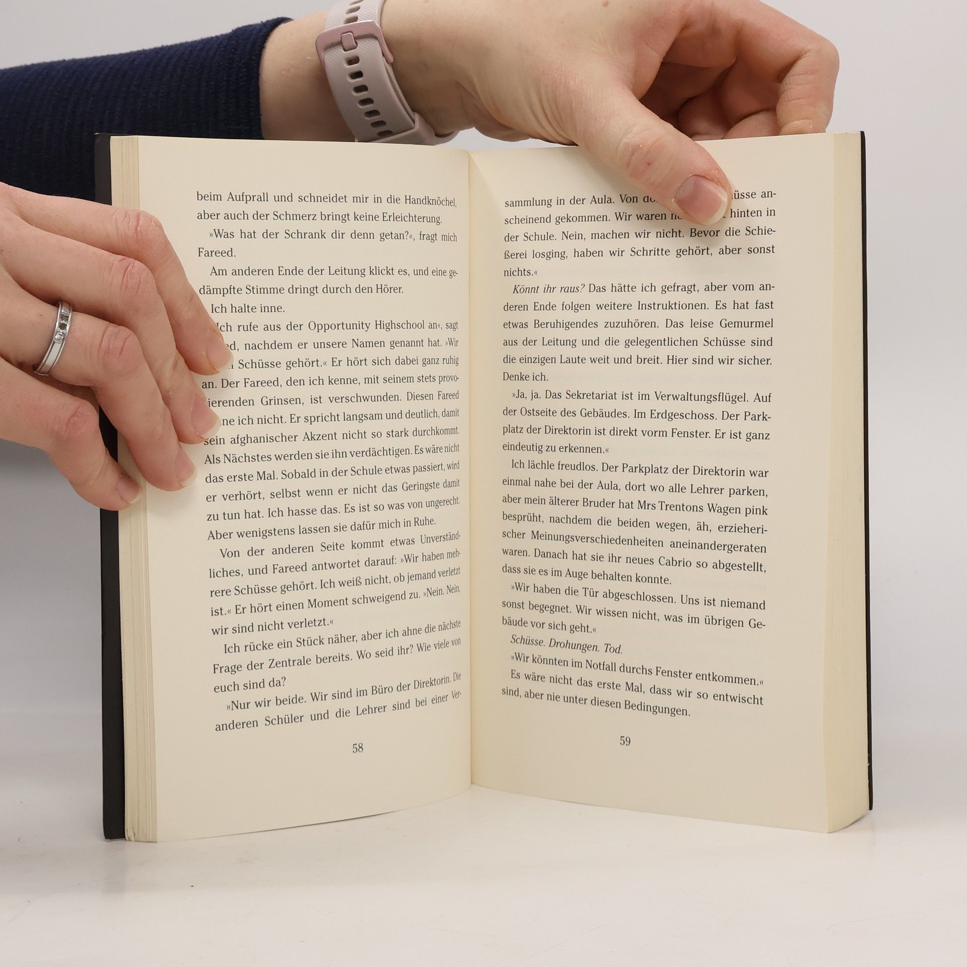 54 Minuten, die alles zerstören Es passiert nicht viel im verschlafenen Opportunity, Alabama. Wie immer hält die Direktorin in der Aula der Highschool ihre Begrüßungsrede zum neuen Schulhalbjahr. Es ist dieselbe Ansprache wie in jedem Schulhalbjahr. Währenddessen sind zwei Schüler in das Büro der Schulleitung geschlichen, um Akten zu lesen. Draußen auf dem Sportgelände trainieren fünf Schüler und ihr Coach auf der Laufbahn für die neue Leichtathletiksaison. Wie immer ist die Rede der Dirketorin exakt um zehn Uhr zu Ende. Aber heute ist alles anders. Als Schüler und Lehrer die Aula verlassen wollen, kann man die Türen nicht mehr öffnen. Einer beginnt zu schießen. Tyler greift seine Schule an und macht alle fertig, die ihm unrecht getan haben. Aus der Sicht von vier Jugendlichen entfaltet sich der Amoklauf, bis die letzte Kugel verschossen ist.