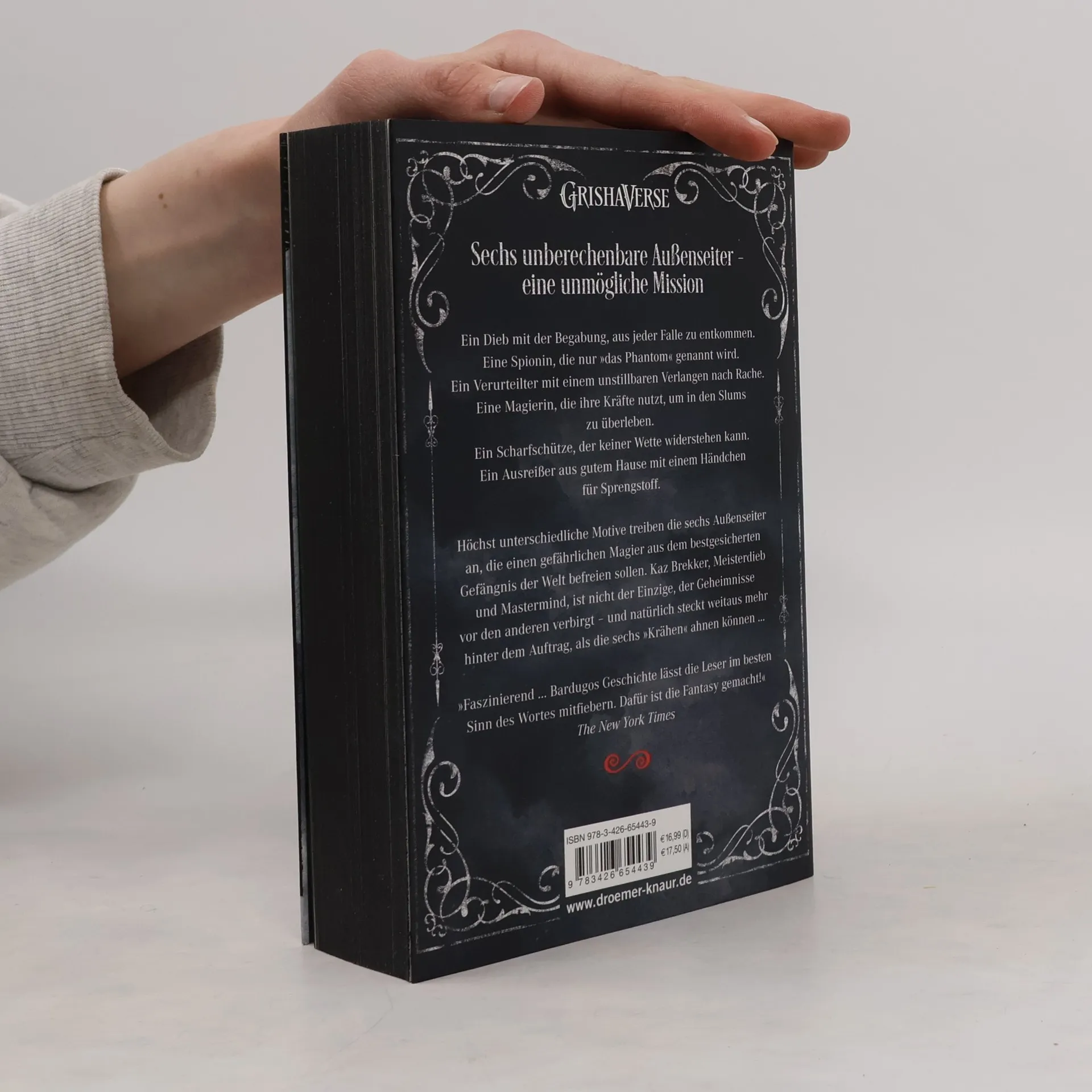 Ein Dieb mit der Begabung, aus jeder Falle zu entkommen. Eine Spionin, die nur »das Phantom« genannt wird. Ein Verurteilter mit einem unstillbaren Verlangen nach Rache. Eine Magierin, die ihre Kräfte nutzt, um in den Slums zu überleben. Ein Scharfschütze, der keiner Wette widerstehen kann. Ein Ausreißer aus gutem Hause mit einem Händchen für Sprengstoff. Höchst unterschiedliche Motive trieben die sechs Außenseiter an, die einen gefährlichen Magier aus dem bestgesicherten Gefängnis der Welt befreien sollen. Kaz Brekker, Meisterdieb und Mastermind, ist nicht der Einzige, der Geheimnisse vor den anderen verbirgt - und natürlich steckt weitaus mehr hinter dem Auftrag, als die sechs »Krähen« ahnen können...