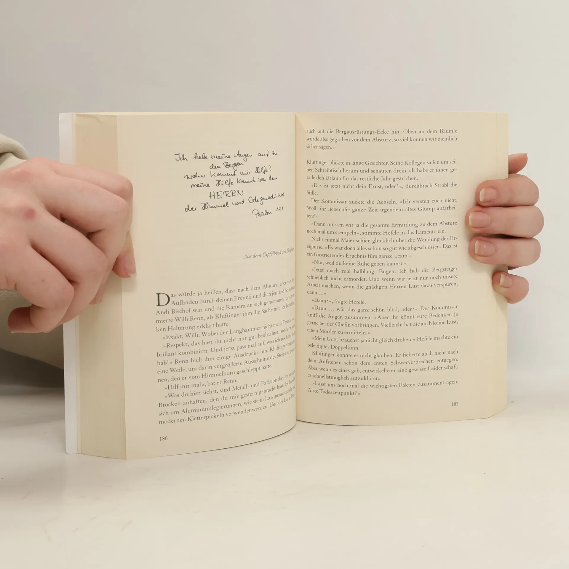 Der neunte Fall der Bestseller-Autoren Volker Klüpfel und Michael Kobr führt den Kult-Kommissar Kluftinger in die Allgäuer Alpen, genauer gesagt auf das Himmelhorn, einen der gefährlichsten Berge des Allgäus. Natürlich liebt Klufti die Berge – wenn sie kässpatzenförmig auf seinem Teller aufragen. Doch der neueste Streich von Gesundheitsfetischist Langhammer befördert den Kommissar samt E-Bike tief in die Allgäuer Alpen, wo die beiden prompt auf drei Leichen stoßen: ein bekannter Dokumentarfilmer und zwei einheimische Bergführer, die einen Film über die Erstbesteigung des Himmelhorns drehen wollten. Wie es scheint, waren sie dem als äußerst gefährlich geltenden Gipfel nicht gewachsen. Die Ermittlungen im Umfeld der Toten führt Klufti in sehr abgelegene Alpentäler und zu deren starrköpfigen Bewohnern, die noch wortkarger sind als er.