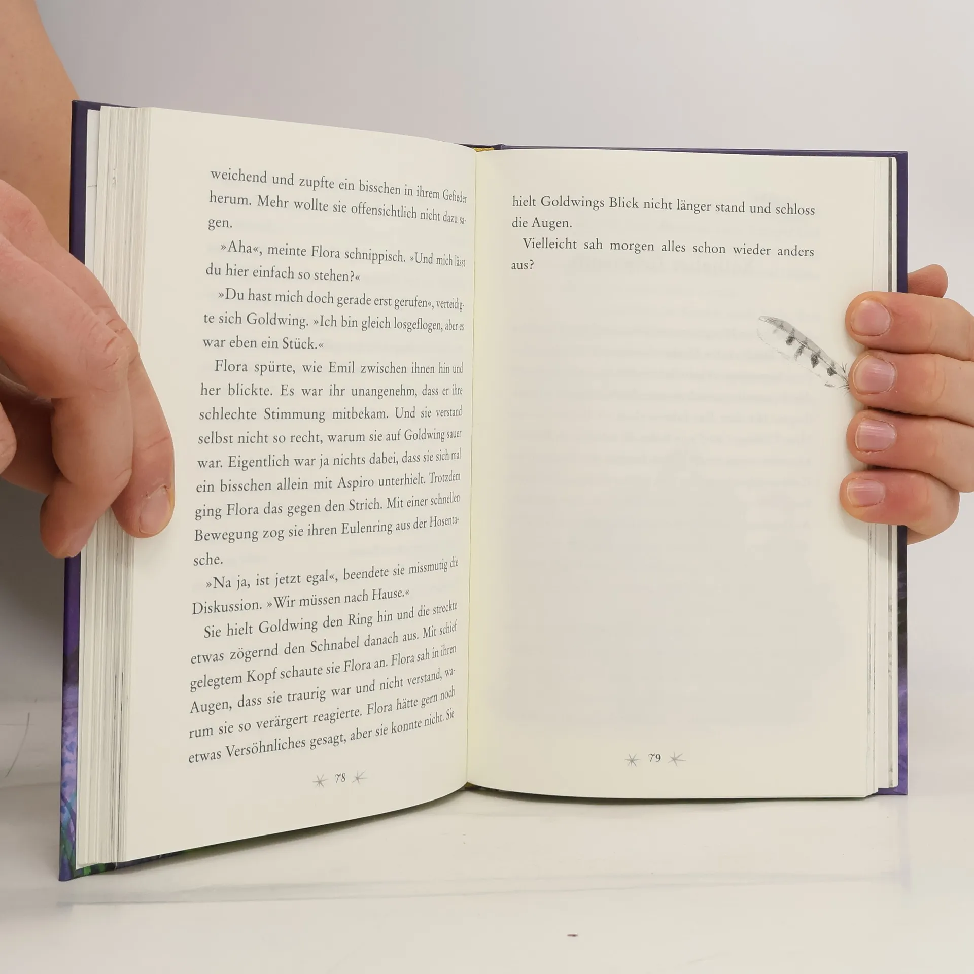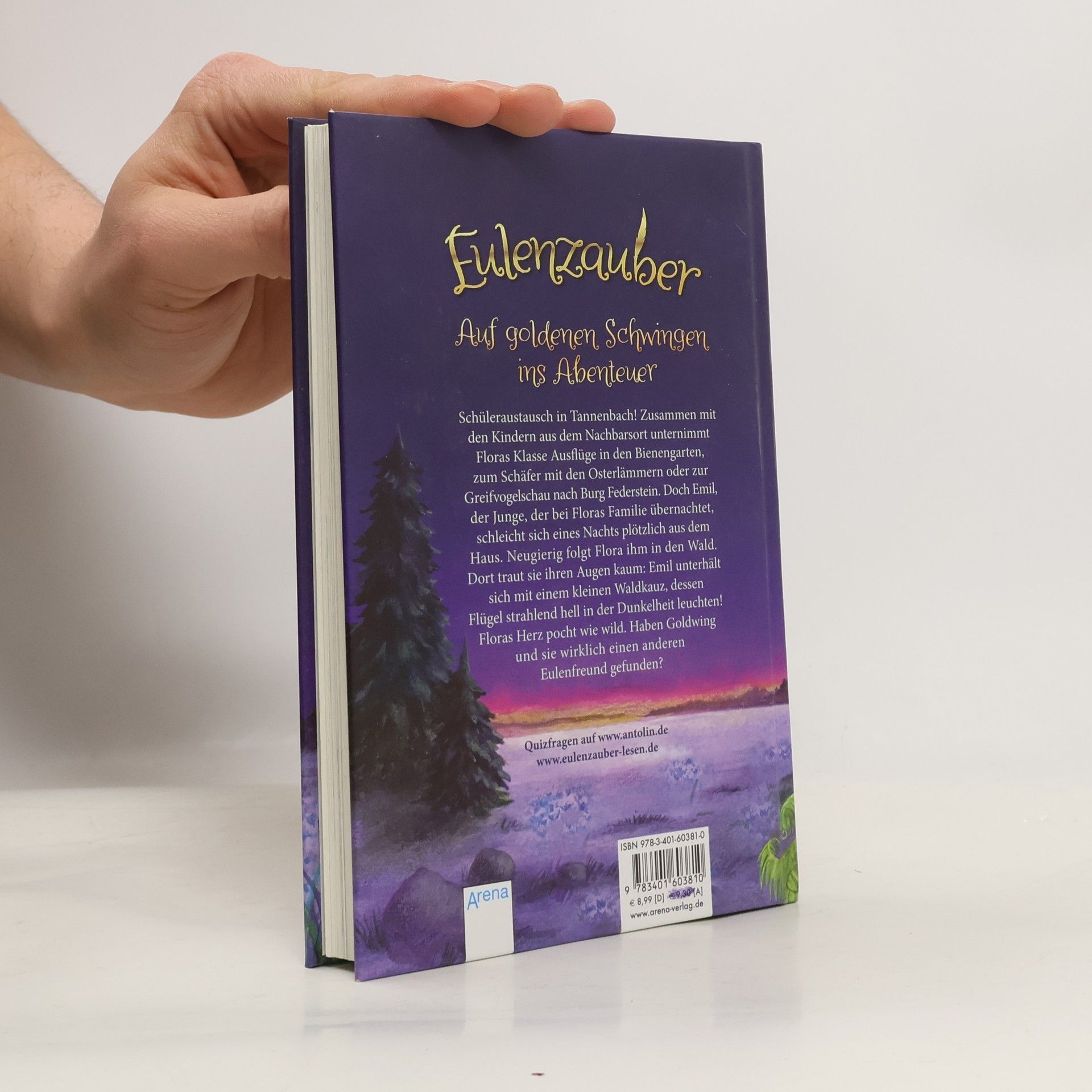 Schüleraustausch in Tannenbach! Zusammen mit dem Besuch aus dem Nachbarsort unternimmt Floras Klasse Ausflüge in den Bienengarten, zum Schäfer mit den Osterlämmern oder zur Greifvogelschau nach Burg Federstein. Doch Emil, der Junge, der bei Floras Familie übernachtet, schleicht sich eines Nachts plötzlich aus dem Haus. Etwas ängstlich folgt Flora ihm in den Wald. Dort traut sie kaum ihren Augen: Emil unterhält sich mit einem Waldkauz, dessen goldene Flügel hell in der dunklen Nacht leuchten. Hat Flora endlich einen anderen Eulenfreund gefunden?