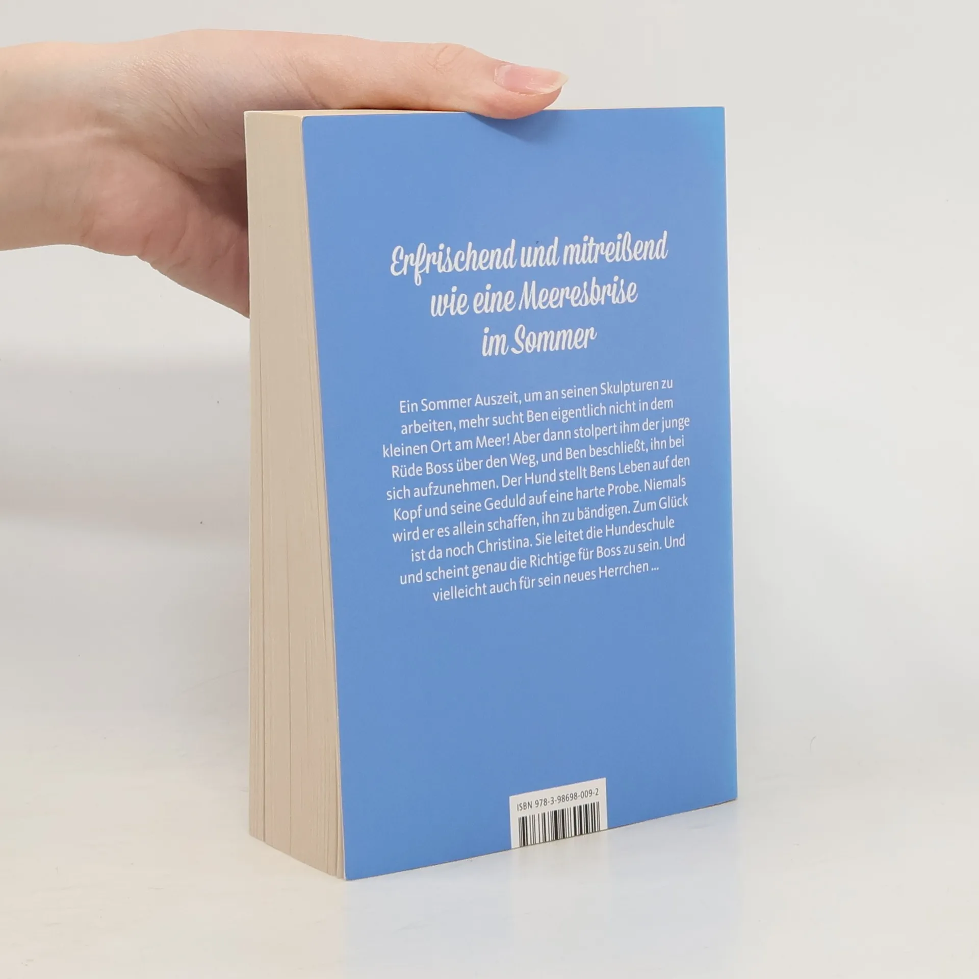 Ein Sommer Auszeit, um an seinen Skulpturen zu arbeiten, mehr sucht Ben eigentlich nicht in dem kleinen Ort am Meer! Aber dann stolpert ihm der junge Rüde Boss über den Weg, und Ben beschließt, ihn bei sich aufzunehmen. Der Hund stellt Bens Leben auf den Kopf und seine Geduld auf eine harte Probe. Niemals wird er es allein schaffen, ihn zu bändigen. Zum Glück ist da noch Christina. Sie leitet die Hundeschule und scheint genau die Richtige für Boss zu sein. Und vielleicht auch für sein neues Herrchen… Ein Liebesroman, so erfrischend und mitreißend wie eine Meeresbrise im Sommer