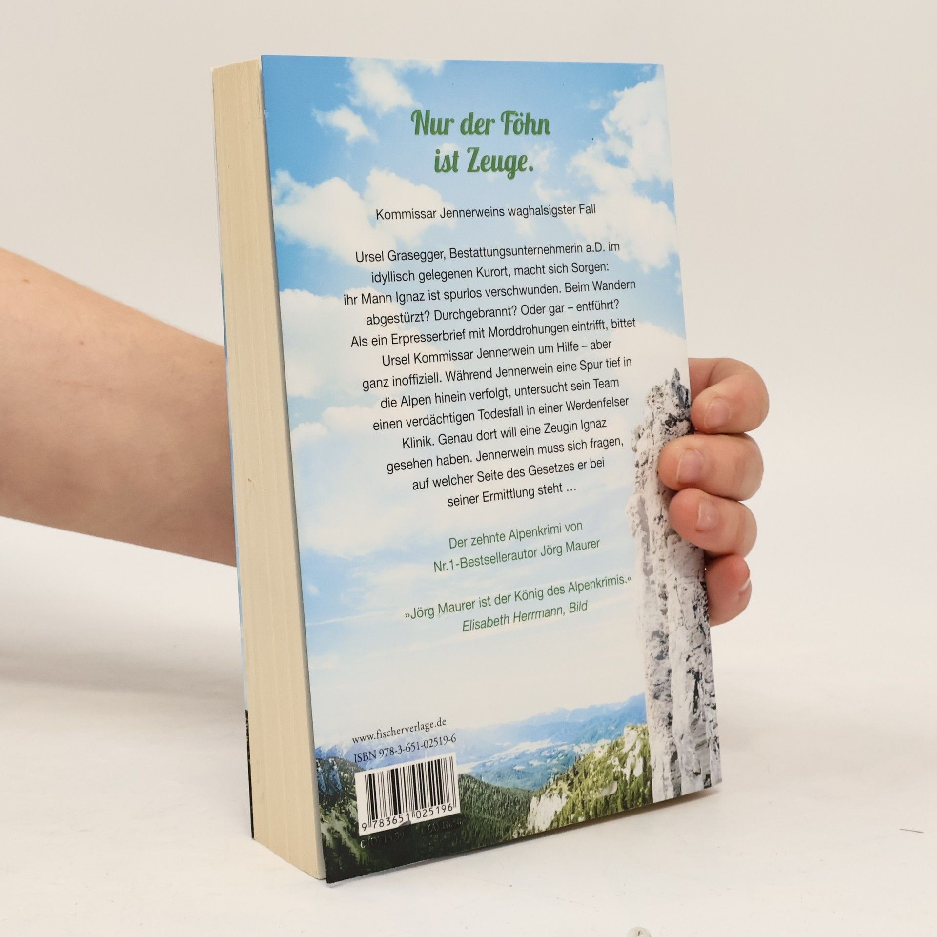 Nur der Föhn kennt die ganze Wahrheit. Kommissar Jennerweins waghalsigster Fall – der zehnte Alpenkrimi von Nr.1-Bestsellerautor Jörg Maurer Kommissar Hubertus Jennerwein gönnt sich eine Auszeit. Aber schon vor der geplanten Abreise trifft er auf dem Bahnhof einen Kommissar-Kollegen aus dem Allgäu und wird aufgehalten. Gerade als die beiden so richtig ins ermittlerische Fachsimpeln kommen, erreicht Jennerwein ein Hilferuf aus dem Kurort: Ursel Grasegger, Bestattungsunternehmerin a. D., hat eine blutige Morddrohung gegen Ignaz erhalten. Ihr Mann ist seit Tagen unauffindbar. Ist er in den Händen von Entführern? Oder hat er heimlich etwas Illegales geplant, was nun schiefgegangen ist? Jennerwein weiß nur zu gut, dass die Graseggers beste Mafiaverbindungen haben. Aber er verspricht Ursel, Ignaz‘ Spur außerdienstlich zu verfolgen – und bringt sich in noch nie gekannte Gefahr. Sein Team geht derweil tödlichen Umtrieben von Medizinern nach, eine frühere Freundin von Ignaz kündigt ihre bevorstehende Ermordung an, und auf einmal steht Jennerwein vor dem Abgrund seiner Polizeikarriere…