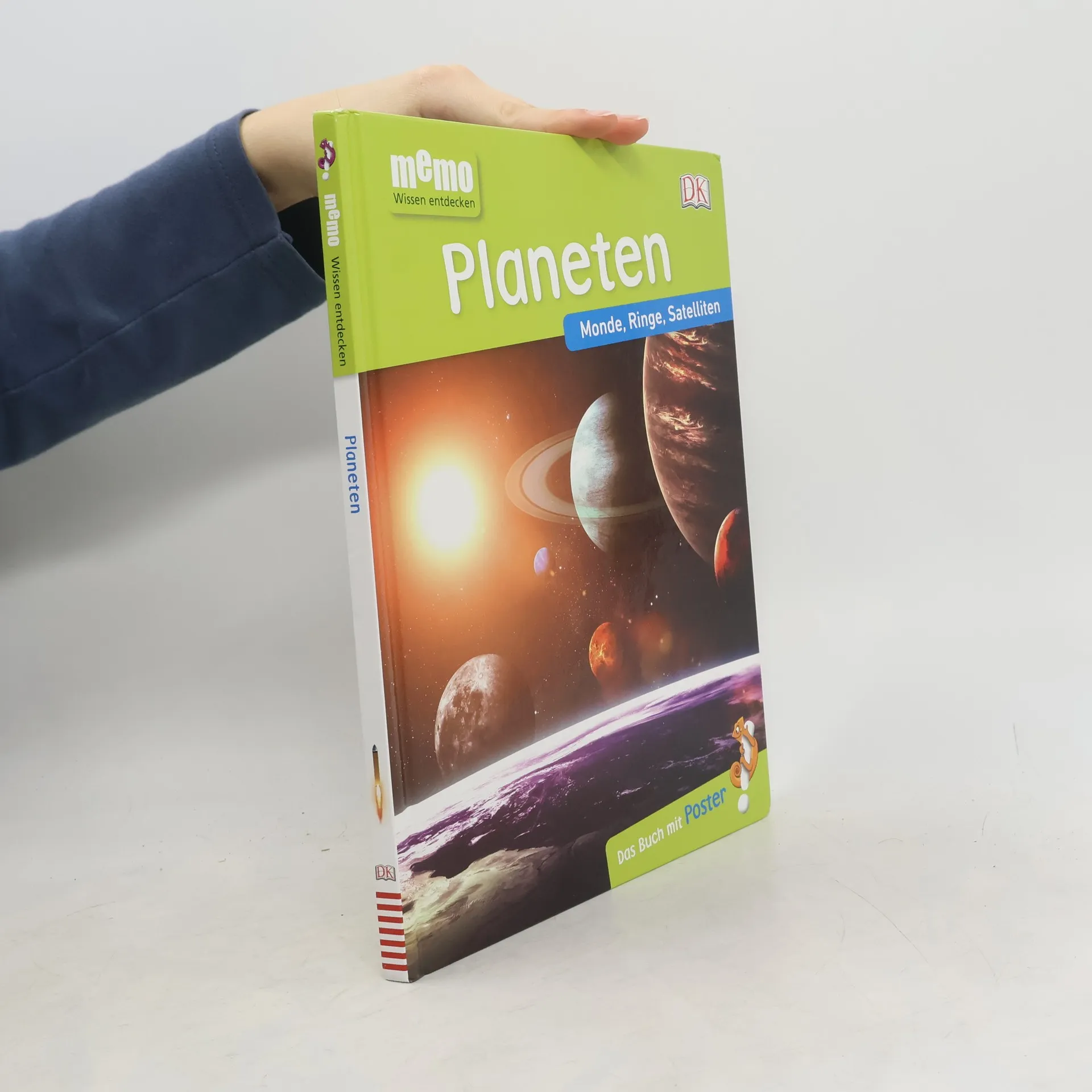 Bereit für eine Reise in die Galaxie? In diesem tollen Sachbuch wird erklärt, was ein Planet überhaupt ist, wie Weltraumforschung funktioniert und eine Expedition zu Mars, Mond, Sonne, Venus oder Jupiter unternommen – inklusive anschaulicher Erläuterungen zum Sonnensystem. Die beliebte Kindersachbuchreihe memo Wissen entdecken verpackt faszinierendes Wissen für Kinder in kurze, lesefreundliche Texte und viele detailreiche Bilder. Jetzt sogar im frischen, übersichtlichen neuen Layout und mit einem illustrierten Chamäleon-Charakter, der durchs Buch begleitet und beeindruckende Details erklärt oder kommentiert. Dazu gibt‘s ein beidseitig bedrucktes Poster zum Aufhängen im Kinderzimmer – mit einem spektakulären Foto auf der einen und einer informativen Grafik auf der anderen Seite. Interessante Rubriken wie „Erstaunliche Fakten“, „Fragen und Antworten“ oder „Rekordverdächtig“ vertiefen das erworbene Wissen für Kinder zusätzlich und ein Glossar am Ende des Buches sorgt abschließend noch einmal für einen super Überblick. Das ist großes Wissen in kleinen Häppchen – mit Aha-Erlebnis und Wow-Effekt auf jeder Seite! Das Lieblingsthema „Planeten“ wird in memo Wissen entdecken sachlich kompetent, gleichzeitig leicht verständlich und unterhaltsam vermittelt. Perfekt für junge Leser – als Ergänzung zum Schulunterricht oder für Referate. Dieses Buch ist bei Antolin. de verfügbar.