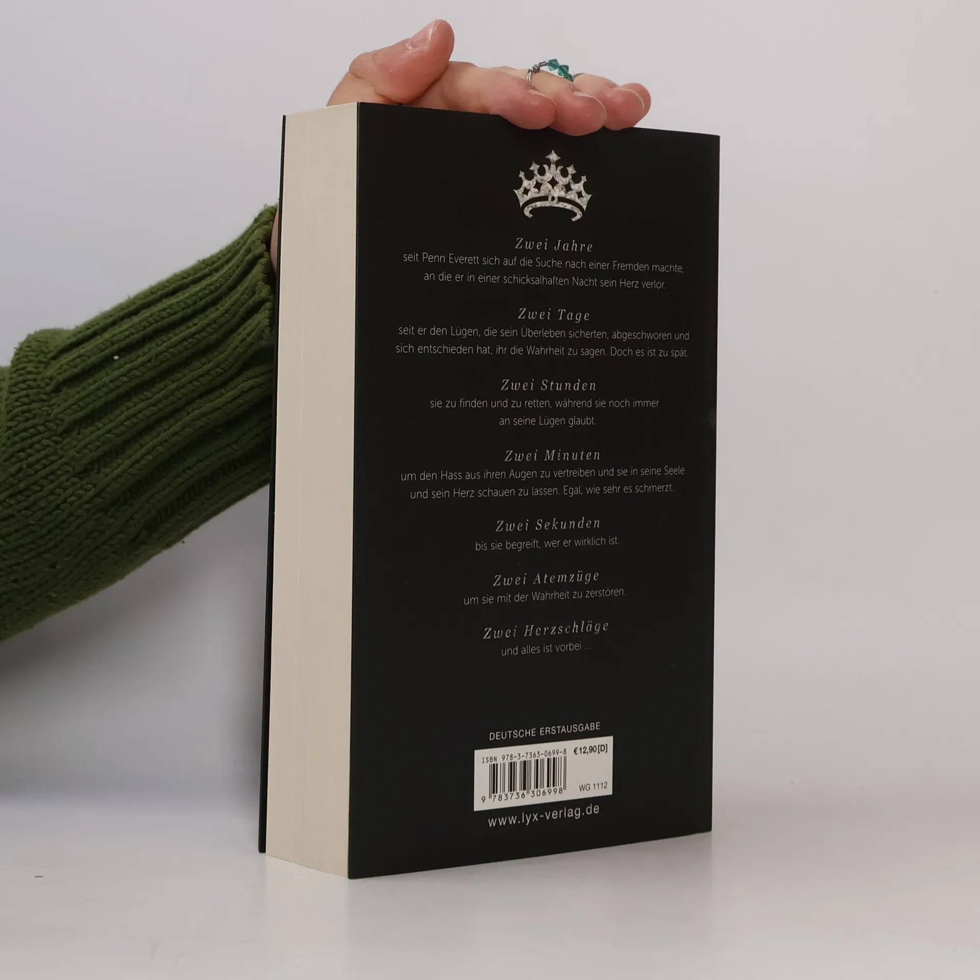 Zwei Jahre seit Penn Everett sich auf die Suche nach einer Fremden machte, an die er in einer schicksalhaften Nacht sein Herz verlor. Zwei Tage seit er den Lügen, die sein Überleben sicherten, abgeschworen und sich entschieden hat, ihr die Wahrheit zu sagen. Doch es ist zu spät. Zwei Stunden sie zu finden und zu retten, während sie noch immer an seine Lügen glaubt. Zwei Minuten Um den Hass aus ihren Augen zu vertreiben und sie in seine Seele und sein Herz schauen zu lassen. Egal, wie sehr es schmerzt. Zwei Sekunden bis sie begreift, wer er wirklich ist. Zwei Atemzüge um aus der Tür zu stürmen. Zwei Herzschläge und alles ist vorbei ... „Ich bin sprachlos und einfach nur glücklich. Dieses Buch hat meine Welt verändert!“ Unbound Book Reviews Abschlussband der Truth & Lies -Serie von New-York-Times -Bestseller-Autorin Pepper Winters