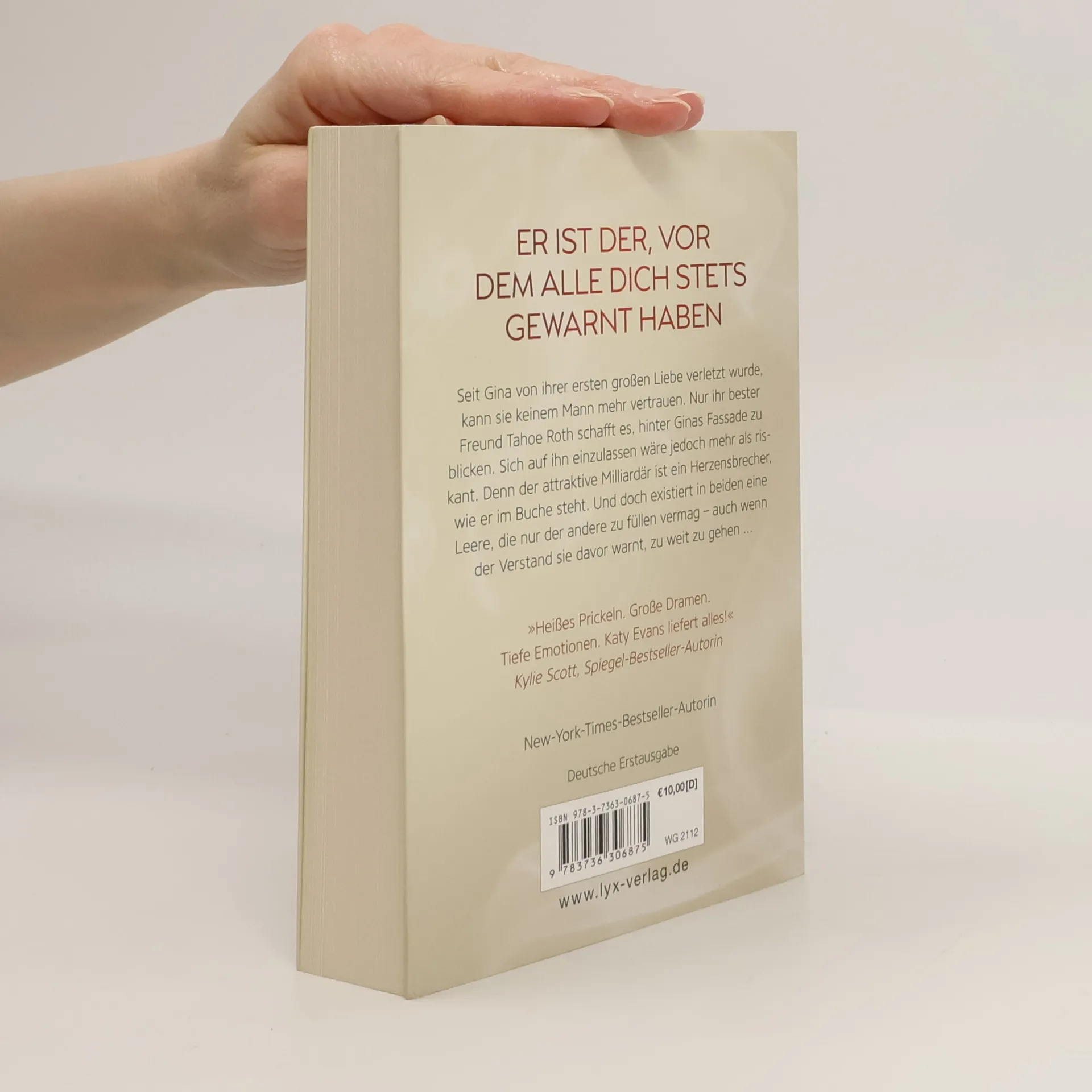 Er ist der, vor dem deine Mutter dich stets gewarnt hat Seit Gina von ihrer ersten großen Liebe verletzt wurde, will sie nie wieder einem Mann vertrauen. Nur ihr bester Freund Tahoe Roth schafft es, hinter Ginas Fassade zu blicken. Sich auf ihn einzulassen, wäre jedoch mehr als riskant. Denn der attraktive Milliardär ist ein Herzensbrecher, wie er im Buche steht. Und doch existiert in beiden eine Leere, die nur der andere zu füllen vermag — auch wenn der Verstand sie warnt ... „Heißes Prickeln. Große Dramen. Tiefe Emotionen. Katy Evans liefert alles!“ Kylie Scott, Spiegel-Bestseller-Autorin