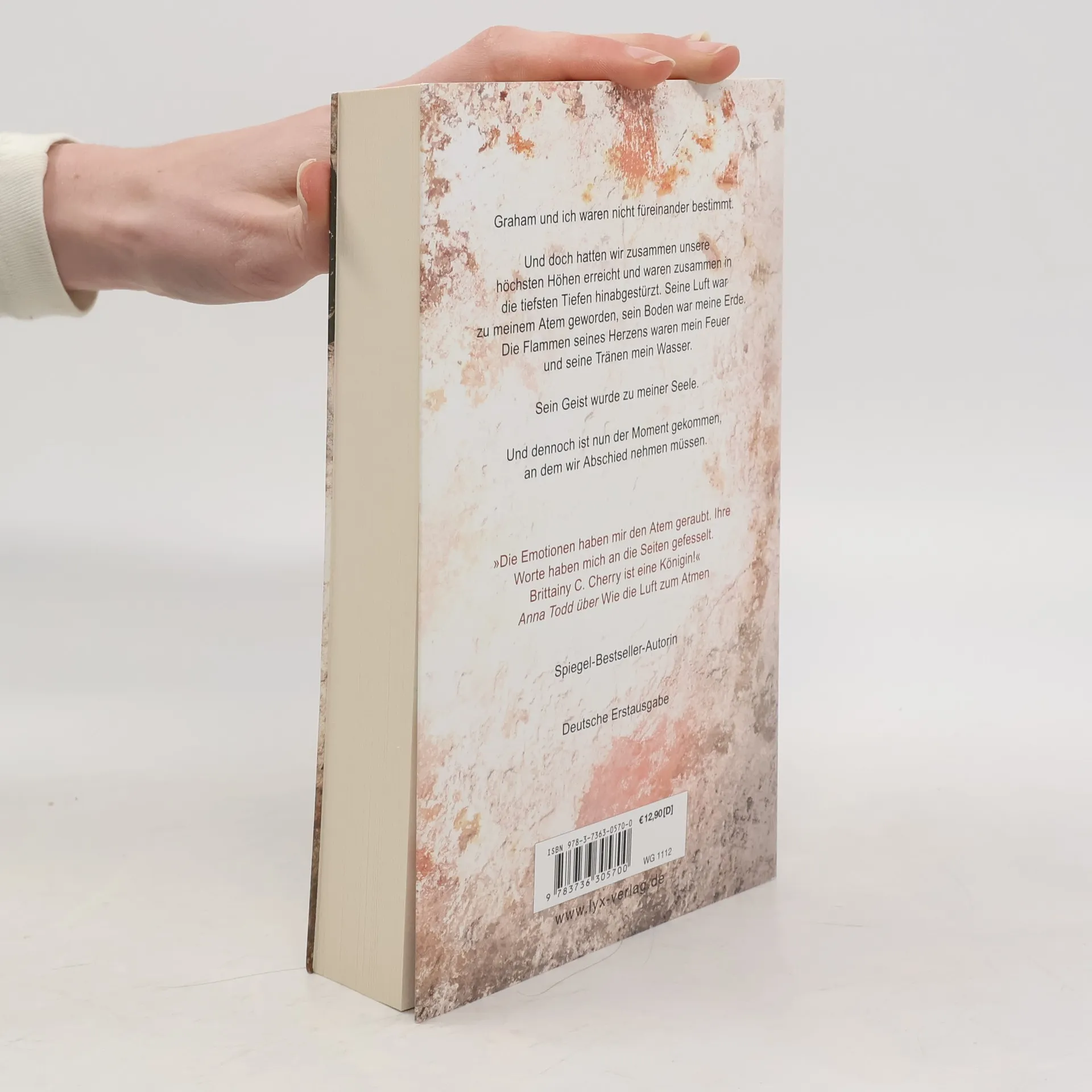Eine Liebe wie nicht von dieser Welt Graham und ich waren nicht füreinander bestimmt. Und doch hatten wir zusammen unsere höchsten Höhen erreicht, und waren zusammen in die tiefsten Tiefen hinabgestürzt. Seine Luft war zu meinem Atem geworden, sein Boden war meine Erde. Die Flammen seines Herzens waren mein Feuer und seine Tränen mein Wasser. Sein Geist wurde zu meiner Seele. Und dennoch war nun der Moment gekommen, Abschied zu nehmen. „Dieses Buch hat mich lachen und weinen lassen. Dieses Buch hat mein Herz gestohlen! Wie die Erde um die Sonne erzählt eine unvergessliche Geschichte von Liebe, Verlust, Familie, Freundschaft und der einen besonderen Person, die ein Hoffnungsschimmer ist, auch wenn die Welt um sie herum in Dunkelheit liegt!“ Steamy Reads Blog Band 4 der Romance-Elements -Reihe von Bestseller-Autorin Brittainy C. Cherry