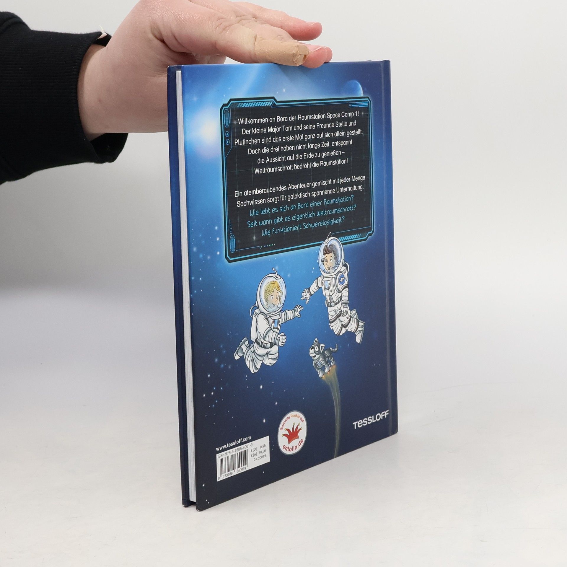 Willkommen an Bord der Raumstation Space Camp 1! Der kleine Major Tom und seine Freunde Stella und Plutinchen sind das erste Mal auf sich allein gestellt. Die drei haben nicht lange Zeit, entspannt die Aussicht auf die Erde zu genießen – Weltraumschrott bedroht die Raumstation! Ein atemberaubendes Abenteuer, gemischt mit jeder Menge Sachwissen, sorgt für galaktisch spannende Unterhaltung. Wie lebt es sich an Bord einer Raumstation? Seit wann gibt es Weltraumschrott?