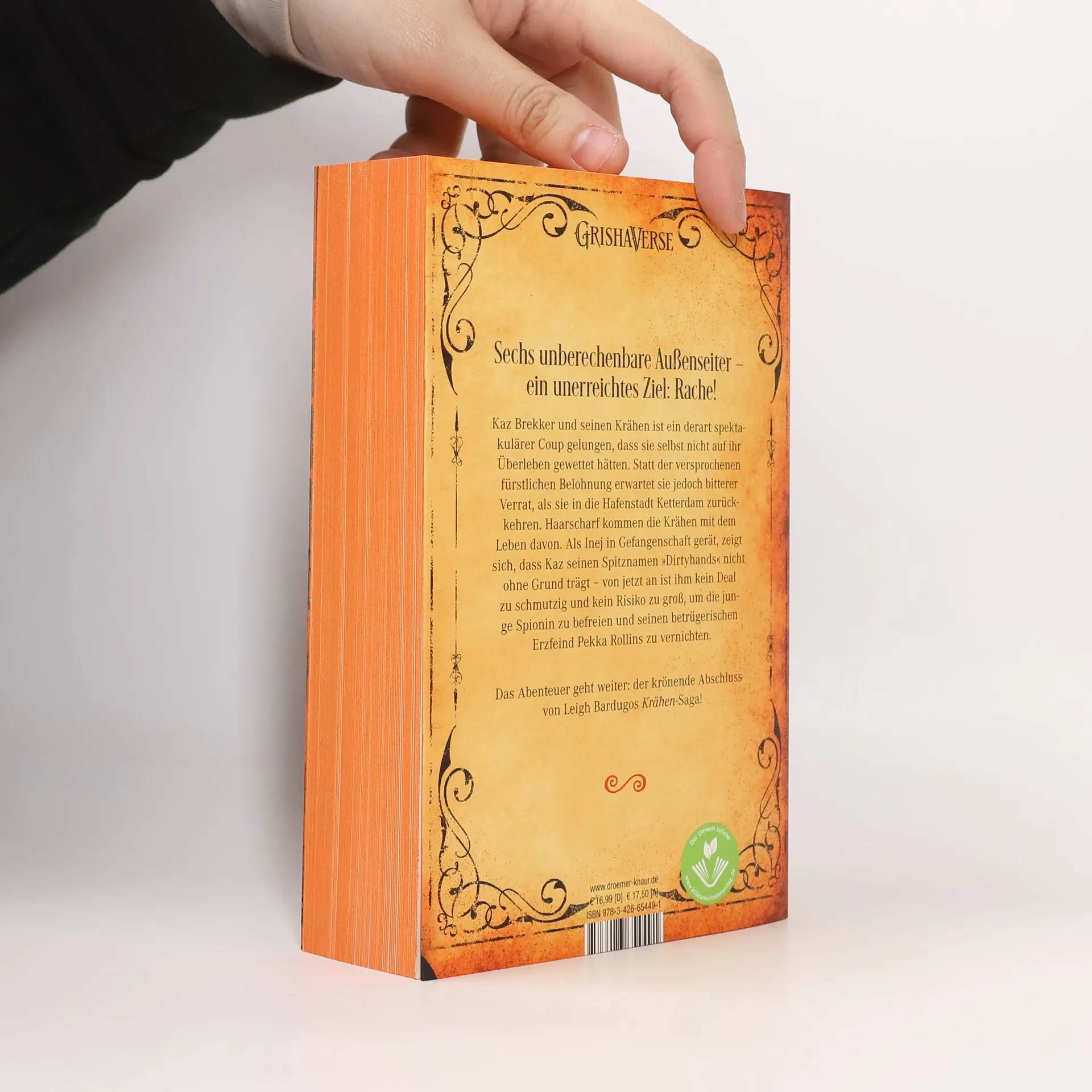 Sechs unberechenbare Außenseiter verfolgen ein unerreichbares Ziel: Rache! Das Abenteuer geht weiter mit einem Dieb, der die unwahrscheinlichsten Auswege findet, einer geheimnisvollen Spionin, einem verurteilten Rachesuchenden, einer Magierin, die ihre Kräfte im Slum einsetzt, einem risikofreudigen Scharfschützen und einem Ausreißer mit Talent für Sprengstoff. Kaz Brekker und seine Krähen haben einen spektakulären Coup gelandet, den sie selbst nicht für möglich gehalten hätten. Doch anstelle der versprochenen Belohnung erwartet sie bitterer Verrat bei ihrer Rückkehr nach Ketterdam. Nur mit knapper Not entkommen sie dem Tod, doch Kaz' Geliebte Inej wird gefangen genommen. Kaz, bekannt als "Dirtyhands", ist bereit, alles zu riskieren, um Inej zu befreien und seinen betrügerischen Erzfeind Pekka Rollins zu vernichten. Das packende Finale dieser Fantasy-Geschichte verspricht Nervenkitzel und unvorhersehbare Wendungen, während die Krähen alles auf eine Karte setzen, um ihre Ziele zu erreichen und sich den Herausforderungen zu stellen, die vor ihnen liegen.