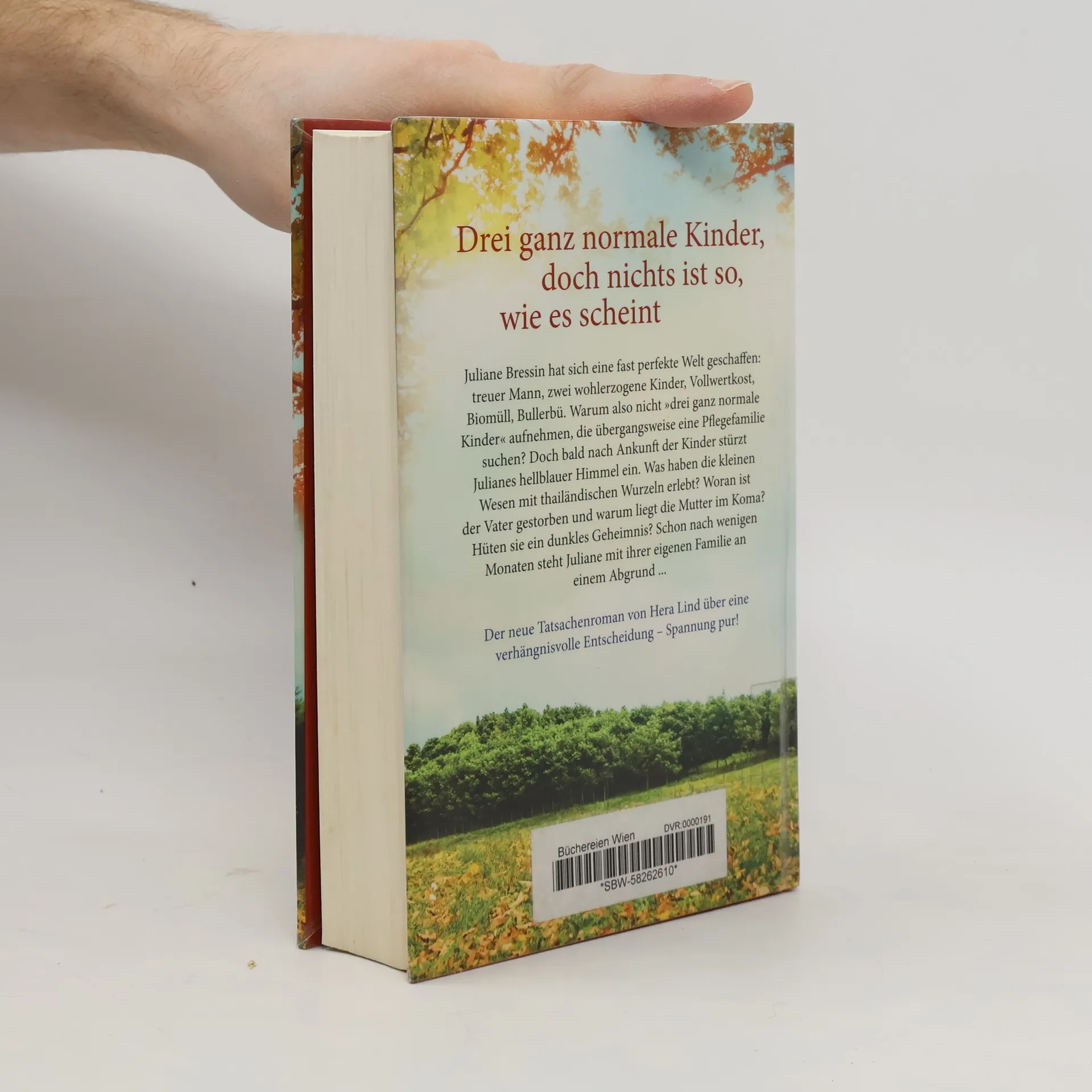 Juliane Bressin hat sich eine fast perfekte Welt geschaffen: treuer Mann, zwei wohlerzogene Kinder, Vollwertkost, Biomüll, Bullerbü. Warum also nicht „drei ganz normale Kinder“ aufnehmen, die übergangsweise eine Pflegefamilie suchen? Doch bald nach Ankunft der Kinder stürzt Julianes hellblauer Himmel ein. Was haben die kleinen Wesen mit thailändischen Wurzeln erlebt? Woran ist der Vater gestorben und warum liegt die Mutter im Koma? Hüten sie ein dunkles Geheimnis? Schon nachwenigen Monaten steht Juliane mit ihrer eigenen Familie an einem Abgrund ...