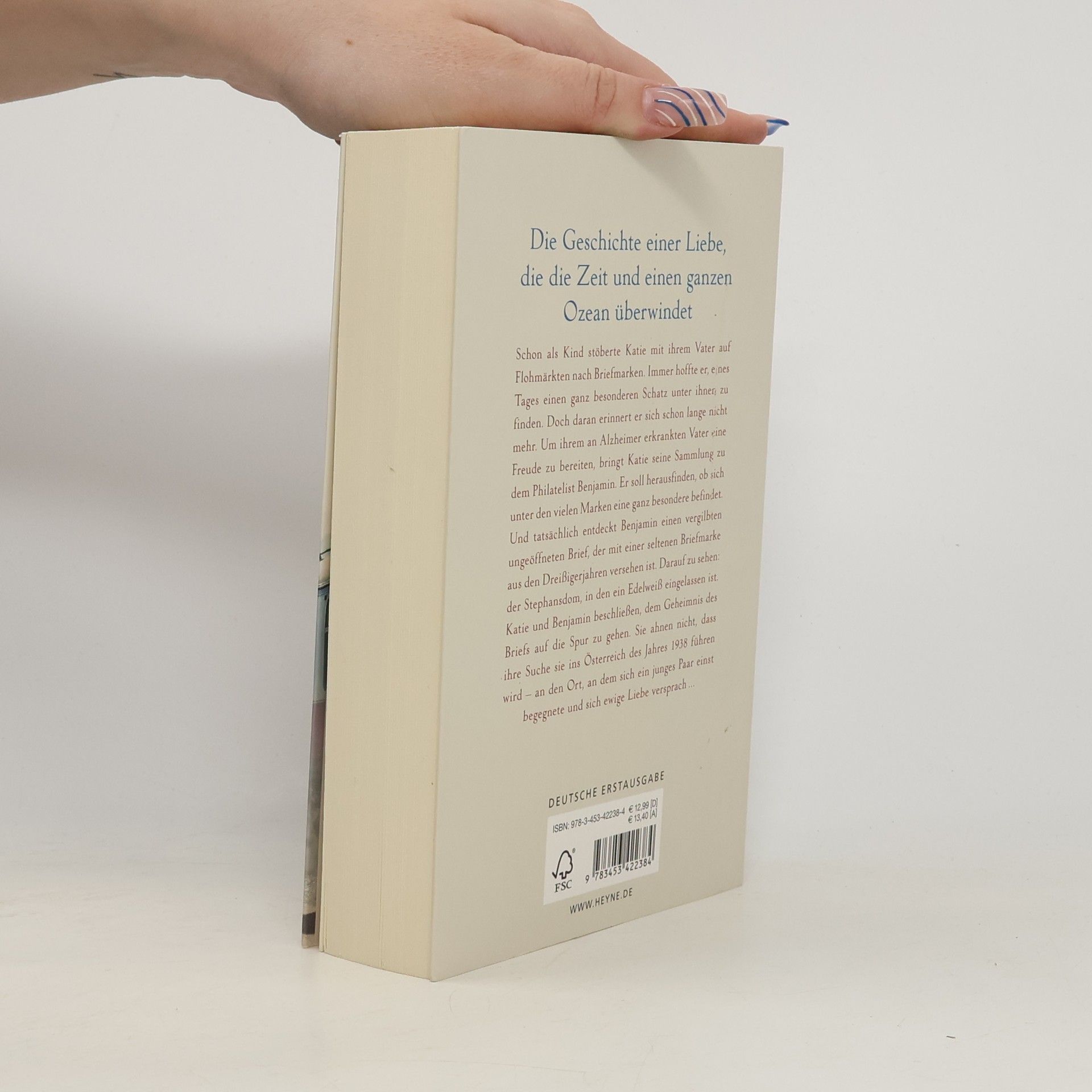 Ein fast vergessener Brief, der Mut zweier Menschen und eine grenzenlose Liebe Schon als Kind war Katie mit ihrem Vater auf Flohmärkten, um nach Briefmarken zu suchen. Immer hoffte er, eines Tages einen ganz besonderen Schatz unter ihnen zu finden. Doch daran erinnert er sich schon lange nicht mehr. Um ihrem an Alzheimer erkrankten Vater eine Freude zu bereiten, bringt Katie seine Sammlung zu dem Philatelist Benjamin. Er soll herausfinden, ob sich unter den vielen Marken eine ganz besondere befindet. Und tatsächlich entdeckt Benjamin einen ungeöffneten Brief, der mit einer seltenen Briefmarke aus den Dreißigerjahren versehen ist. Darauf zu sehen: der Stephansdom, in den ein Edelweiß eingelassen ist. Katie und Benjamin beschließen, dem Geheimnis des Briefs auf die Spur zu gehen und dessen Adressaten zu finden. Doch was sie nicht ahnen: Ihre Suche wird sie ins Österreich des Jahres 1938 führen. An den Ort, wo ein junges Paar sich einst begegnete und sich ewige Liebe versprach.