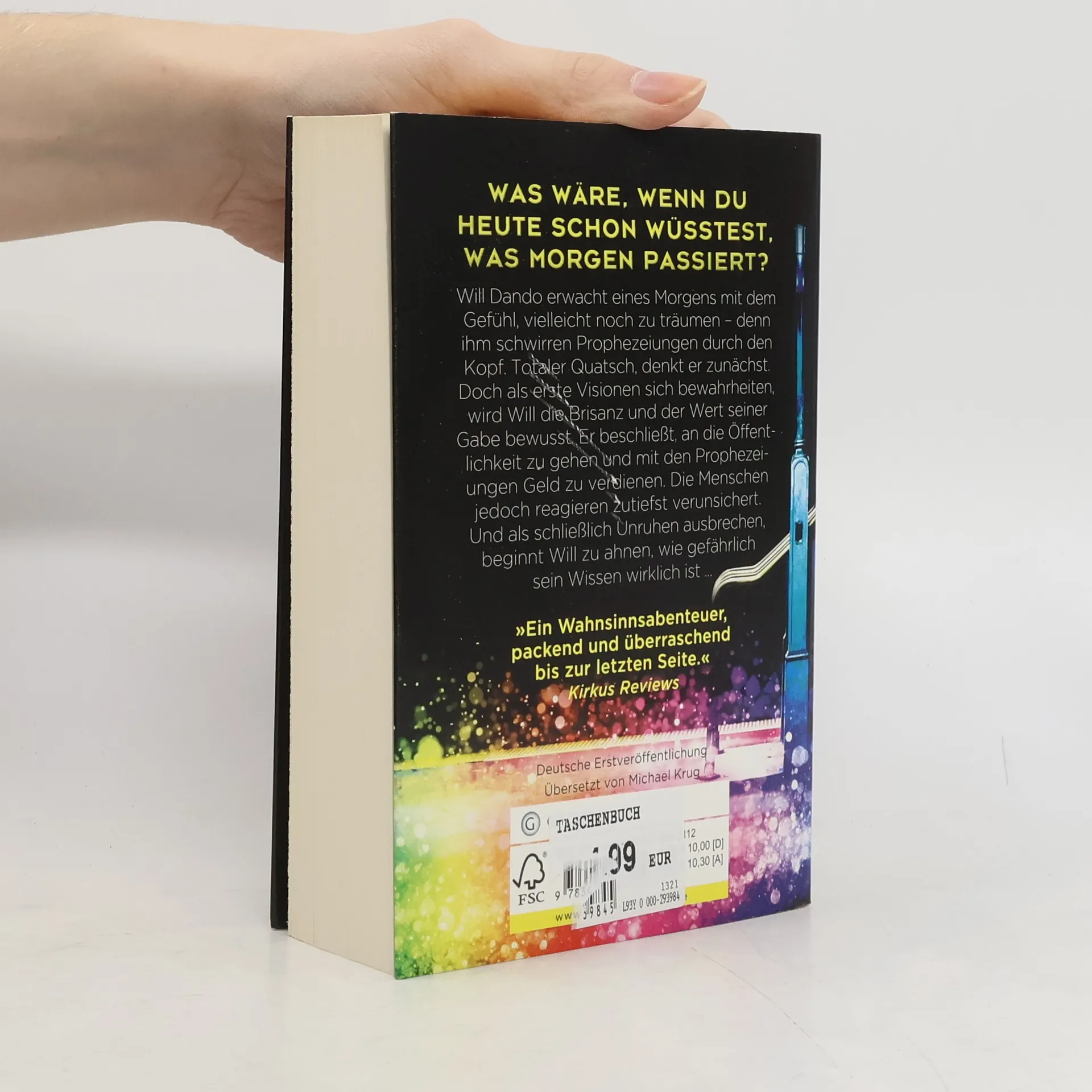 Was wäre, wenn du heute schon wüsstest, was morgen passiert? Will Dando erwacht eines Morgens mit dem Gefühl, vielleicht noch zu träumen – denn ihm schwirren Prophezeiungen durch den Kopf. Totaler Quatsch, denkt er, und widmet sich weiter seiner bescheidenen Karriere als Musiker. Doch als erste Visionen sich bewahrheiten, wird Will die Brisanz und der Wert seiner Gabe bewusst. Zusammen mit seinem besten Freund, einem Investmentbanker, beschließt er, mit den Prophezeiungen Geld zu verdienen. Dafür jedoch müssen sie an die Öffentlichkeit gehen – und die Menschen reagieren zutiefst verunsichert. Als erste Unruhen ausbrechen, beginnt Will zu ahnen, wie gefährlich sein Wissen wirklich ist ...