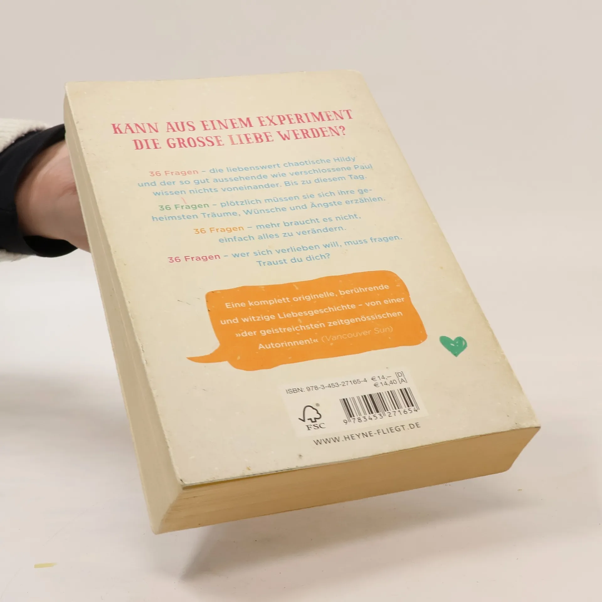 Kann aus einem Experiment die große Liebe werden? Hildy und Paul, beide 18, nehmen an einem psychologischen Experiment teil: die wissensdurstige, aber etwas chaotische Hildy aus Interesse und tausend anderen Gründen. Paul aus einem einzigen: weil er die Teilnahme bezahlt bekommt. Und so sitzen sich die beiden in einem kargen Universitäts-Raum gegenüber und stellen sich Fragen, die zwischen ihnen Liebe erzeugen sollen. Fragen, die zunächst scheinbar banal sind (»Wie sähe ein perfekter Tag für dich aus?«) und dann immer persönlicher werden (»Was ist deine schlimmste Erinnerung?«). Fragen, die Hildy im wahren Leben nie jemandem wie Paul stellen würde, dem gut aussehenden Typ, der sich für nichts und niemanden interessiert, am wenigsten für Hildy. Oder?
