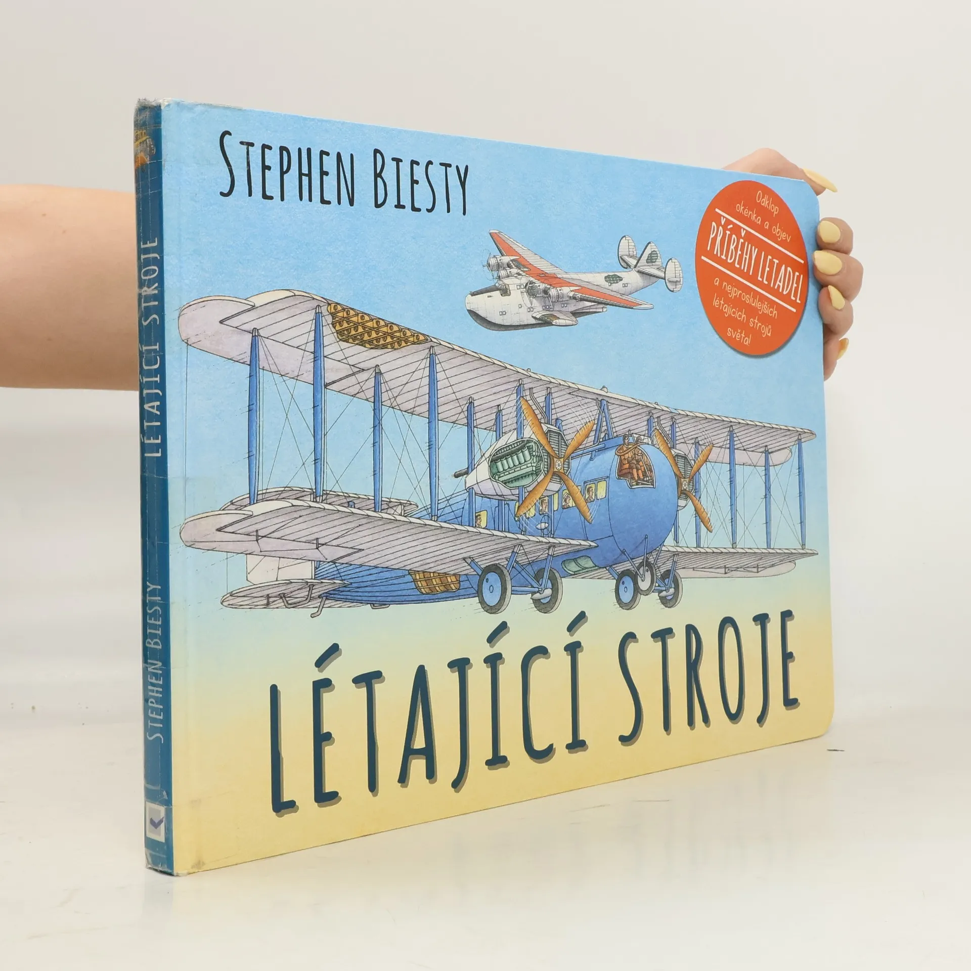 Máš rád letadla? Zajímá tě historie, současnost i budoucnost létání? Prostřednictvím této zajímavé a informativní knížky pro malé letecké nadšence se seznámíš s osmi různými stroji, které můžeš potkat ve vzduchu. Od nejstarších letuschopných strojů přes vrtulníky, trysková letadla až po současná letadla převážející na velké vzdálenosti stovky cestujících. Svět letadel ještě nikdy nebyl tak přehledný a zábavný. Nahlédni pod jedno z mnoha odklápěcích okének a zjistíš, co se skrývá uvnitř nadzvukového letadla či raketoplánu. Jaké povinnosti mají pilot, stevard a letecký mechanik? Podívej se pod okénko a staň se jedním z nich. Slyšíš? To se točí vrtule a tvůj let právě začíná!