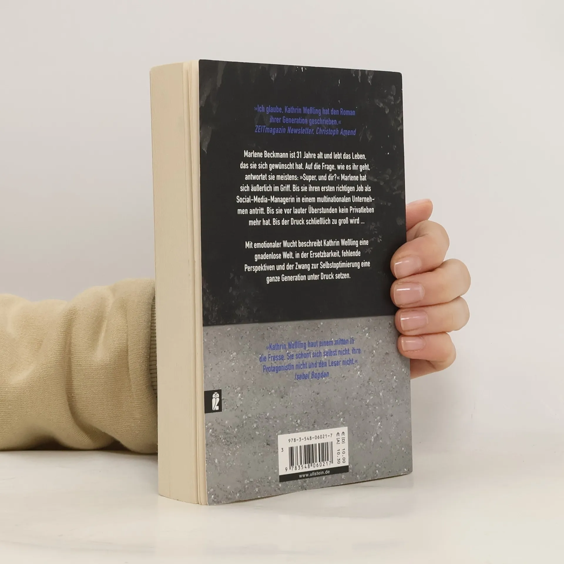 »Ich glaube, Kathrin Weßling hat den Roman ihrer Generation geschrieben.« ZEITmagazin Newsletter, Christoph Amend Marlene Beckmann ist 31 Jahre alt und lebt das Leben, das sie sich gewünscht hat. Auf die Frage, wie es ihr geht, antwortet sie meistens: »Super, und dir?« Marlene hat sich äußerlich im Griff. Bis sie ihren ersten richtigen Job als Social Media Managerin in einem multinationalen Unternehmen antritt. Bis sie vor lauter Überstunden kein Privatleben mehr hat. Bis der Druck schließlich zu groß wird ... Mit emotionaler Wucht beschreibt Kathrin Weßling eine gnadenlose Welt, in der Ersetzbarkeit, fehlende Perspektiven und der Zwang zur Selbstoptimierung eine ganze Generation unter Druck setzen.