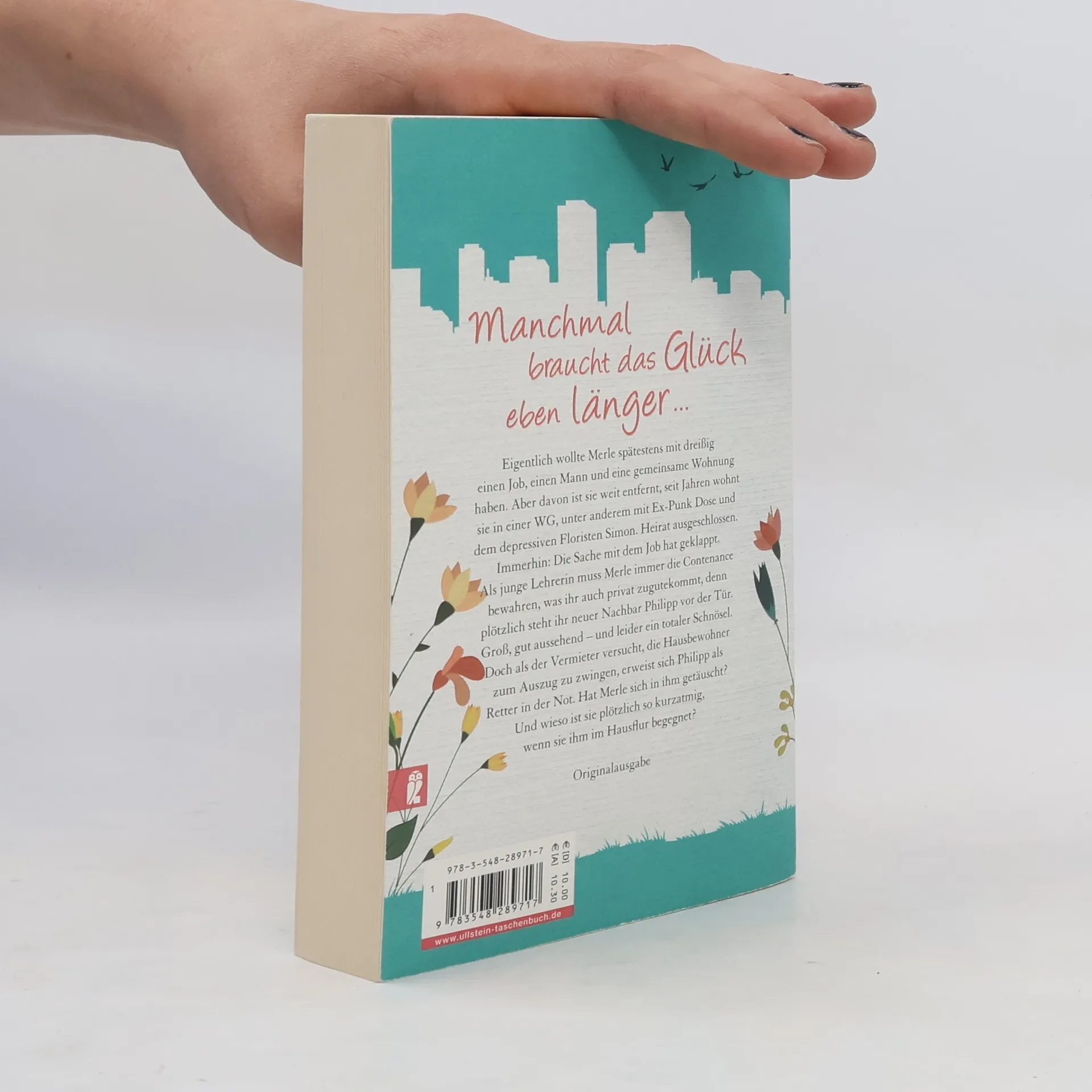 Manchmal braucht das Glück eben länger ... Eigentlich wollte Merle spätestens mit dreißig einen festen Job, einen Mann und eine gemeinsame Wohnung haben. Aber davon ist sie weit entfernt, seit Jahren wohnt sie in einer WG, unter anderem mit Ex-Punk Dose und dem depressiven Floristen Simon. Heirat ausgeschlossen. Immerhin: Die Sache mit dem Job hat geklappt. Als junge Lehrerin braucht Merle Nerven wie Drahtseile, was ihr auch privat zugute kommt, denn plötzlich steht ihr neuer Nachbar Philipp vor der Tür. Groß, gutaussehend – und leider ein totaler Schnösel. Er beschwert sich über den Lärm in der WG. Geht's noch spießiger? Doch als der Vermieter versucht, die Hausbewohner zum Auszug zu zwingen, erweist sich Philipp als Retter in der Not. Hat Merle sich in ihm getäuscht? Und wieso ist sie plötzlich so kurzatmig, wenn sie ihm im Hausflur begegnet?