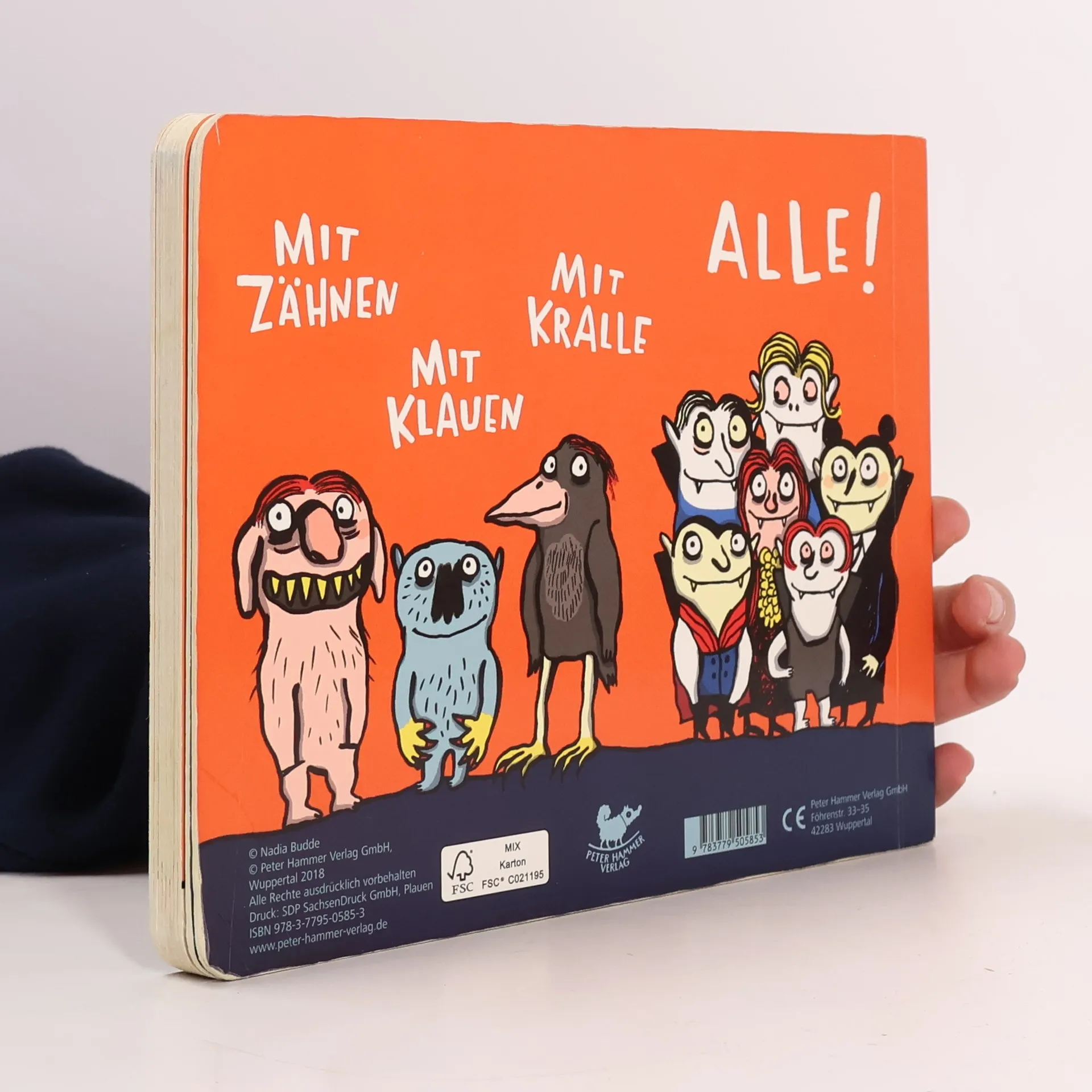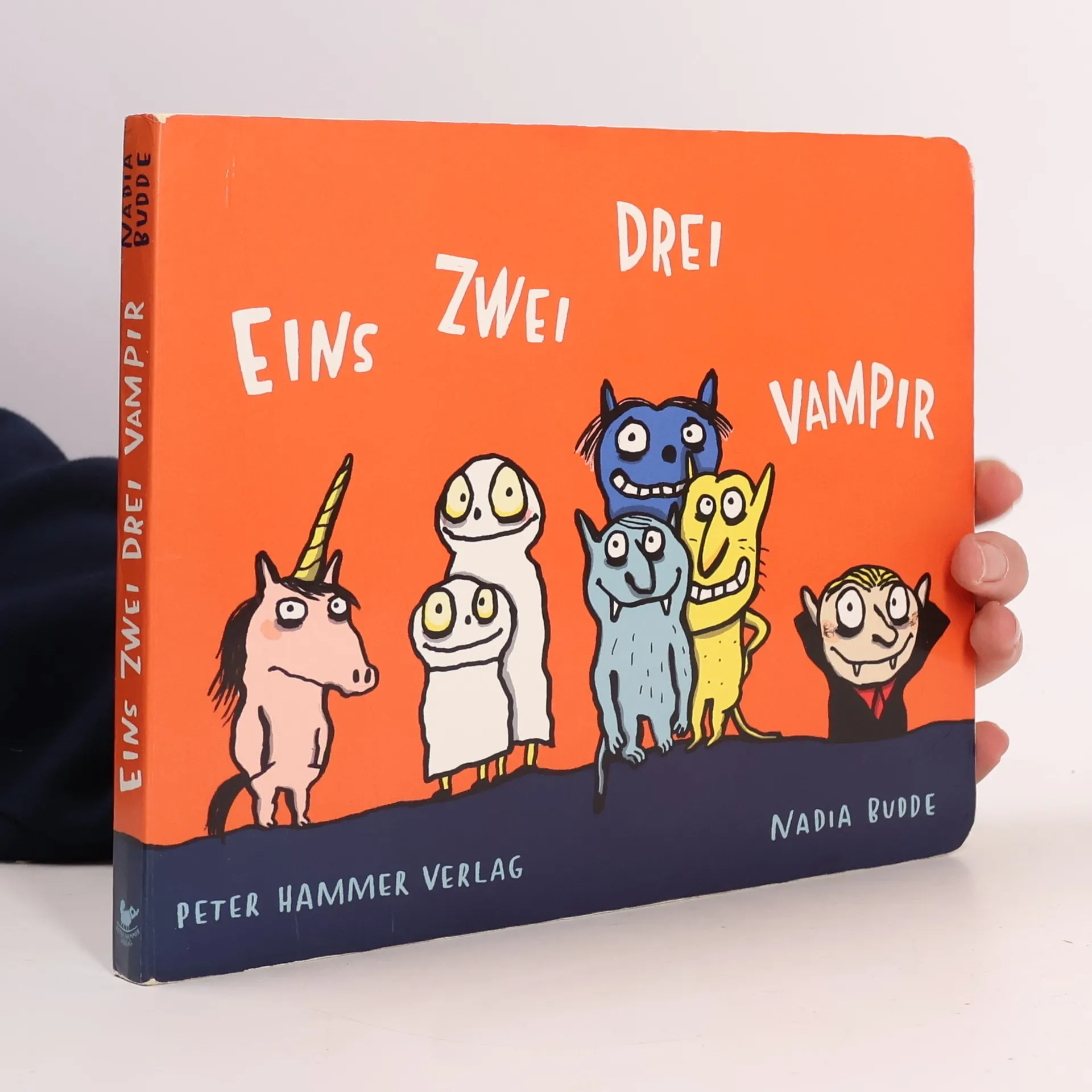 1999 erschien Nadia Buddes erstes Bilderbuch: „Eins zwei drei Tier„ - als Geniestreich bejubelt, mit feinsten Preisen dekoriert und längst zum Klassiker avanciert. Autorin und Verlag waren sich einig: Jetzt ist höchste Zeit für einen Nachfolger, am besten einen mit Biss! „Eins zwei drei Vampir“ lässt lauter gefährliche Gestalten aufmarschieren, immer drei von einer Sorte und dann als Überraschung eine vierte, die für den Reim zuständig ist - und für den Start einer neuen Dreierreihe. Niemand muss sich übrigens um die kindliche Seele sorgen: Die Skelette, Taranteln, Haifische und Hornissen in diesem Pappbilderbuch sind ungefähr so erschreckend wie die dreijährigen Gespenster, die zu Halloween zaghaft an unsere Haustür klopfen.