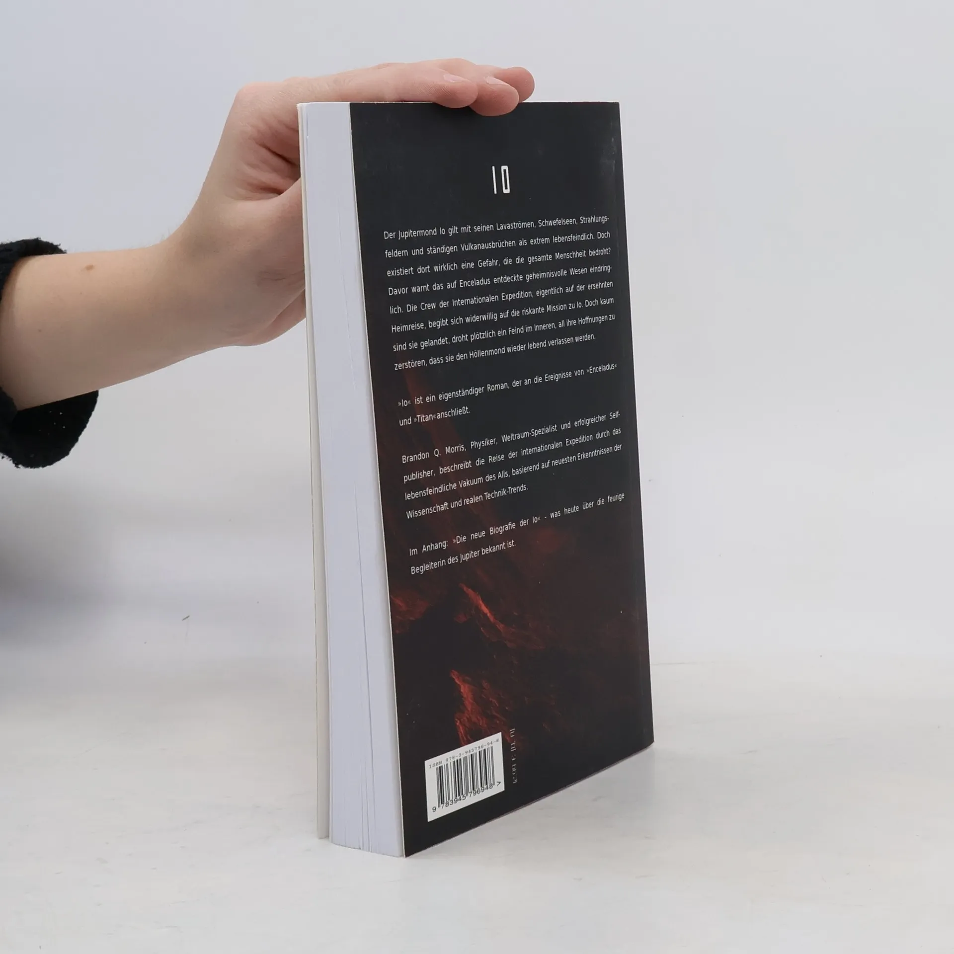Der Jupitermond Io gilt mit seinen Lavaströmen, Schwefelseen, Strahlungsfeldern und ständigen Vulkanausbrüchen als extrem lebensfeindlich. Doch existiert dort wirklich eine Gefahr, die die gesamte Menschheit bedroht? Davor warnt das auf Enceladus entdeckte geheimnisvolle Wesen eindringlich. Die Crew der Internationalen Expedition, eigentlich auf der ersehnten Heimreise, begibt sich widerwillig auf die riskante Mission zu Io. Doch plötzlich droht ein Feind im Inneren, all ihre Hoffnungen zu zerstören, dass sie den Höllenmond lebend verlassen werden. Nach den Hard-SF-Bestsellern „Enceladus“ und „Titan“ ist dies der dritte Teil der Eismond-Reihe, der auch eigenständig gelesen werden kann. Brandon Q. Morris, Physiker und Weltraum-Spezialist, beschreibt die Reise der Internationalen Expedition basierend auf neuesten Erkenntnissen der Wissenschaft und realen Technik-Trends. Es handelt sich um Hard Science Fiction – was hier passiert, könnte auch in der Realität genau so geschehen. Bonus: Die neue Biografie des Mondes Io.
